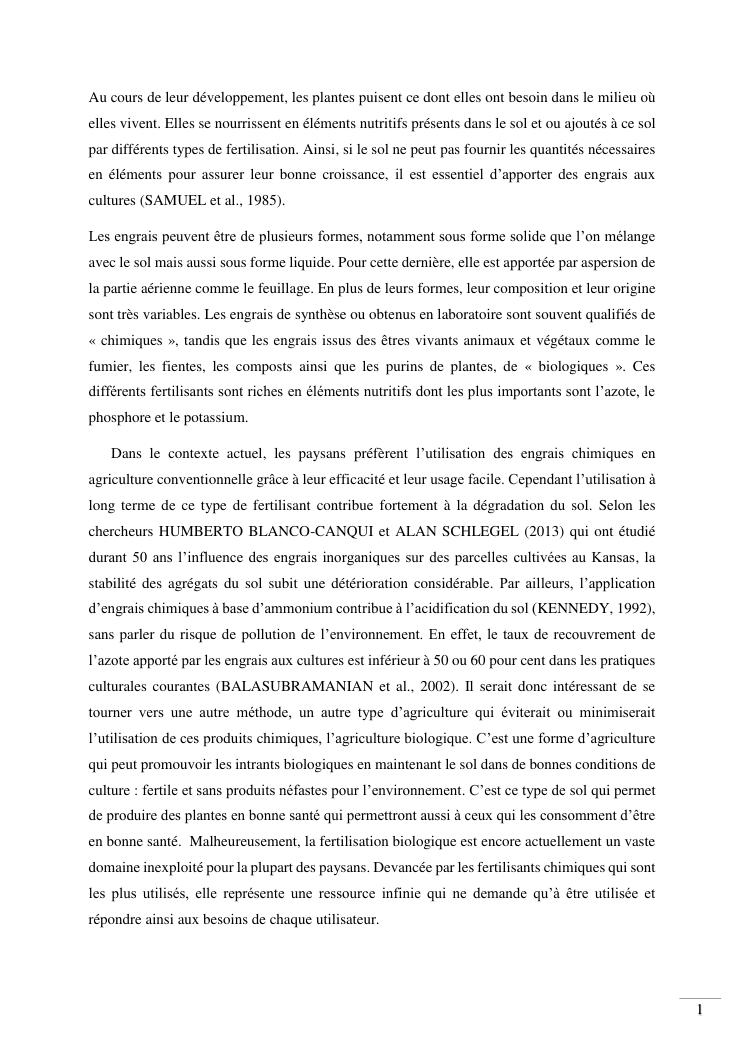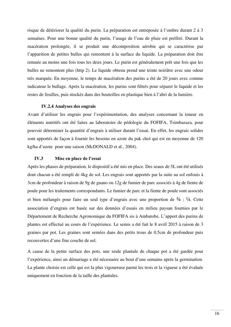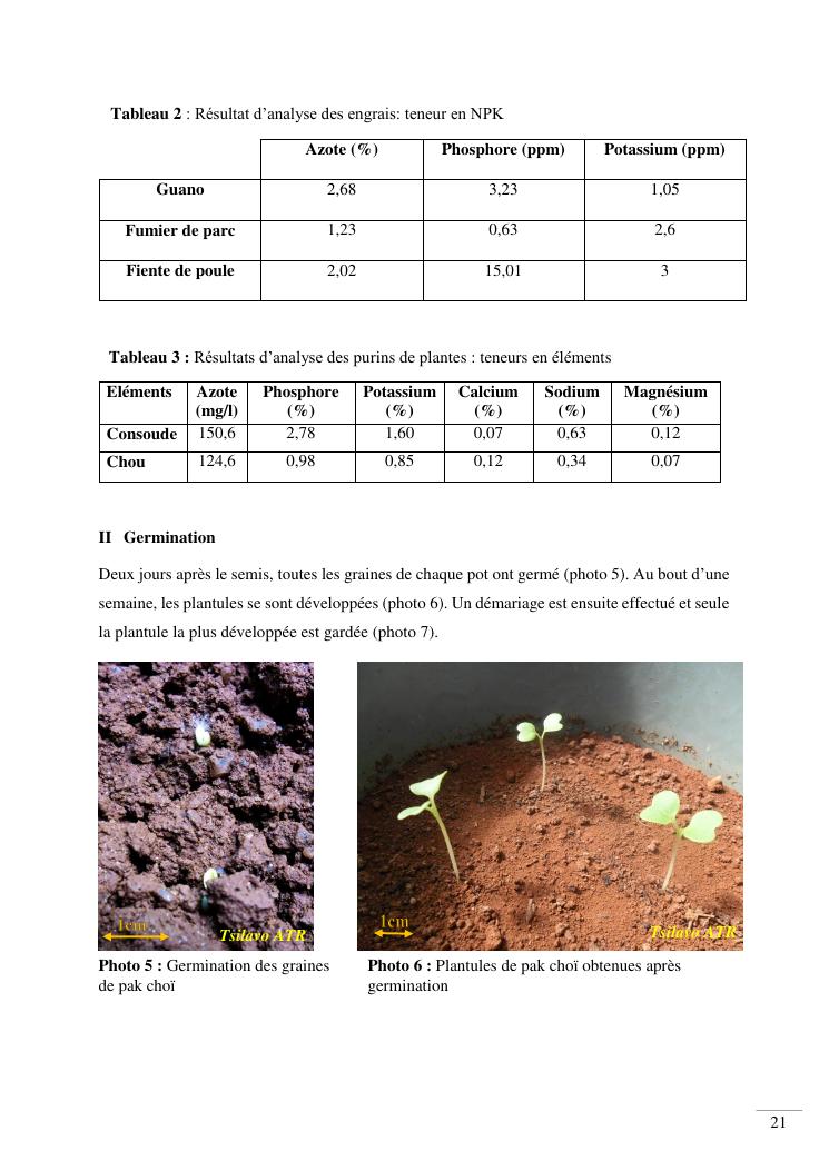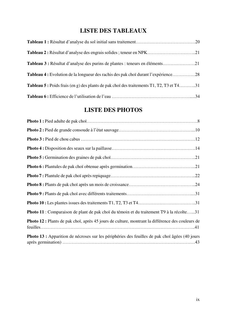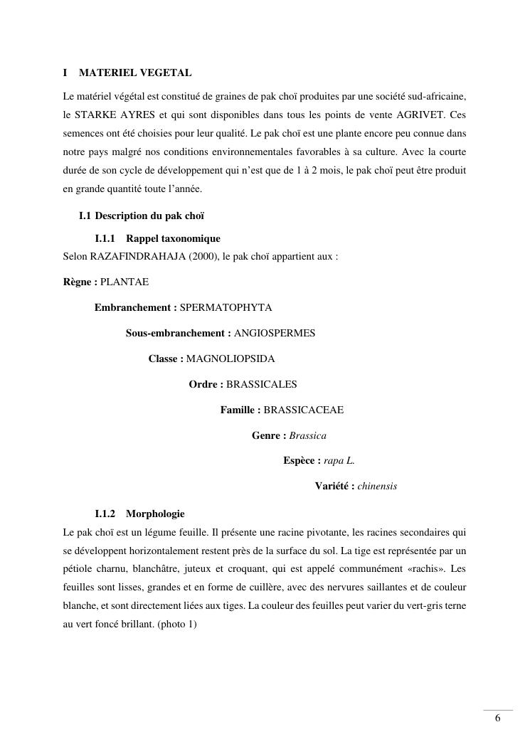 effets de l'utilisation des purins de consoude et de chou associes a deux types d'engrais biologiques sur la culture du pak choï (brassica rapa l. var. chinensis)