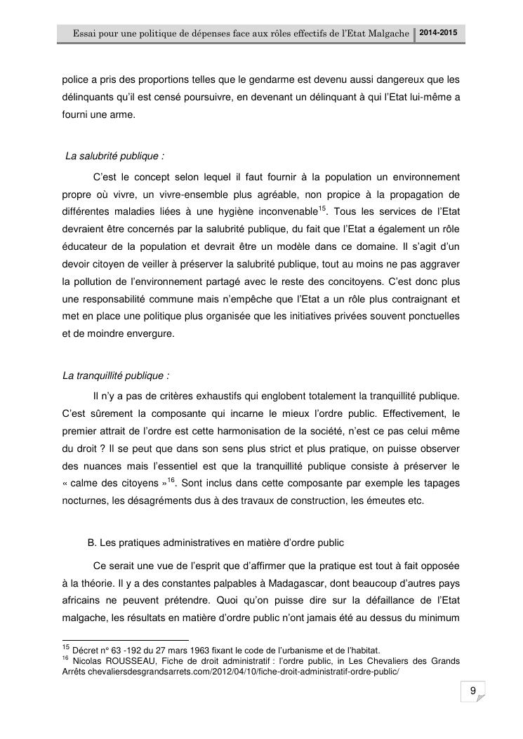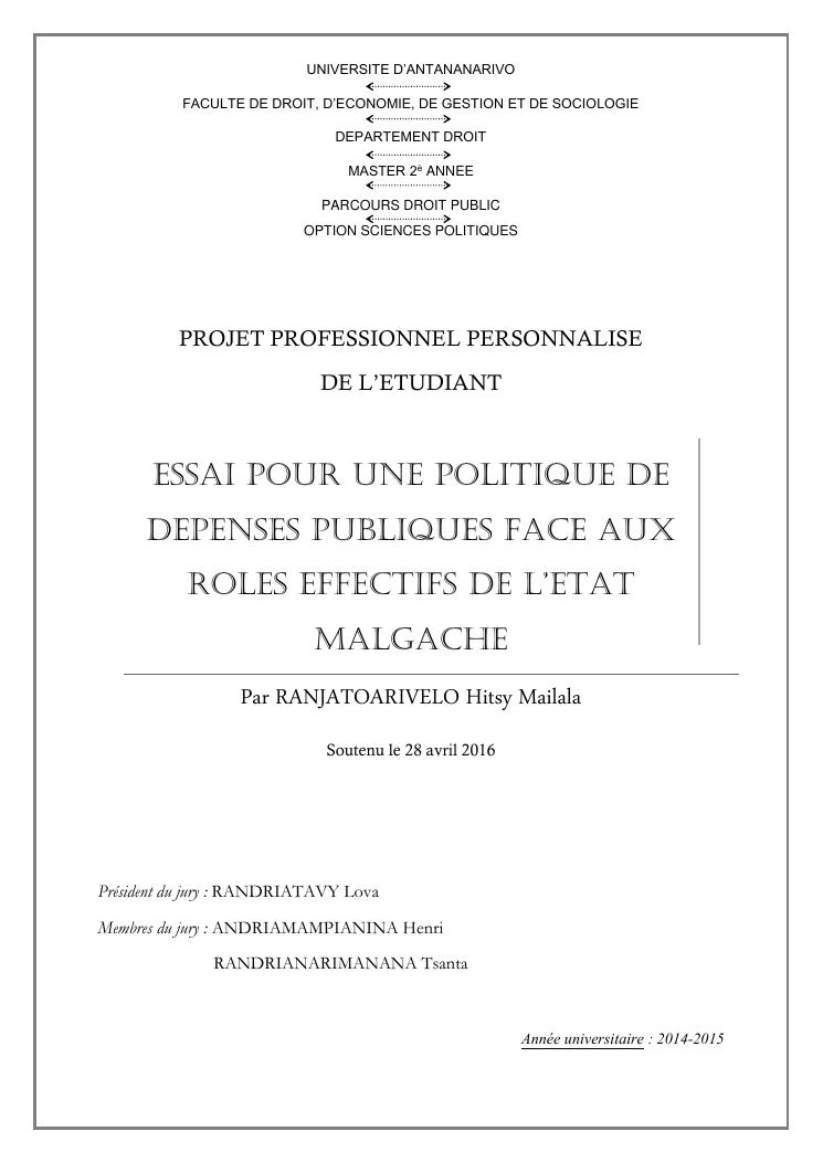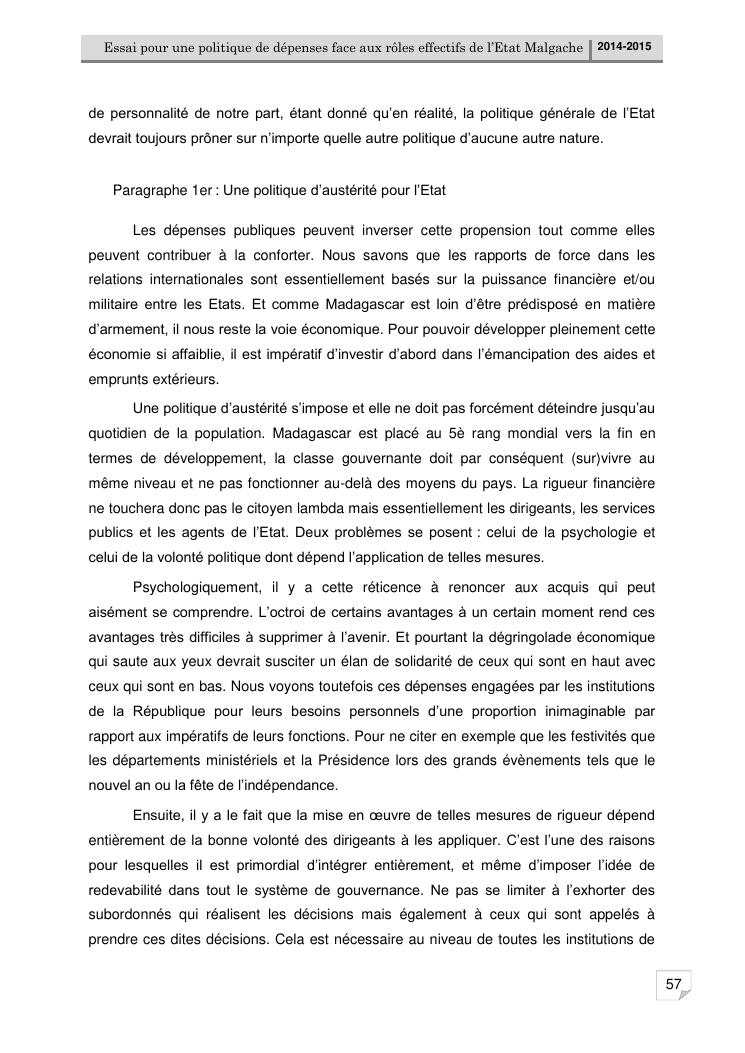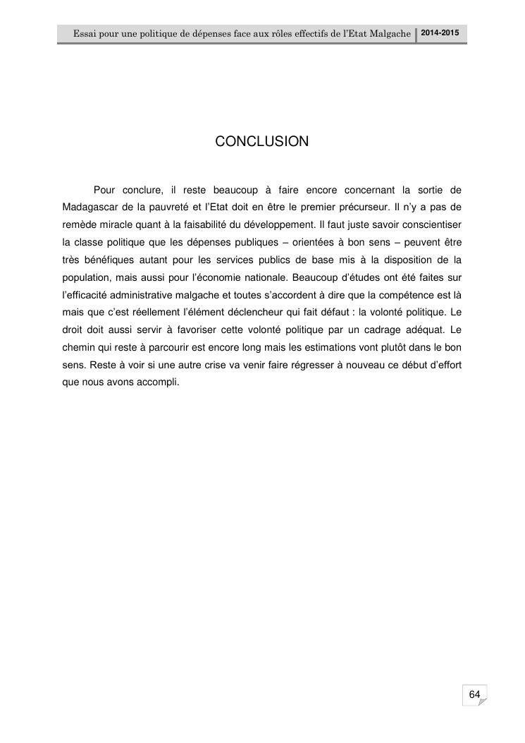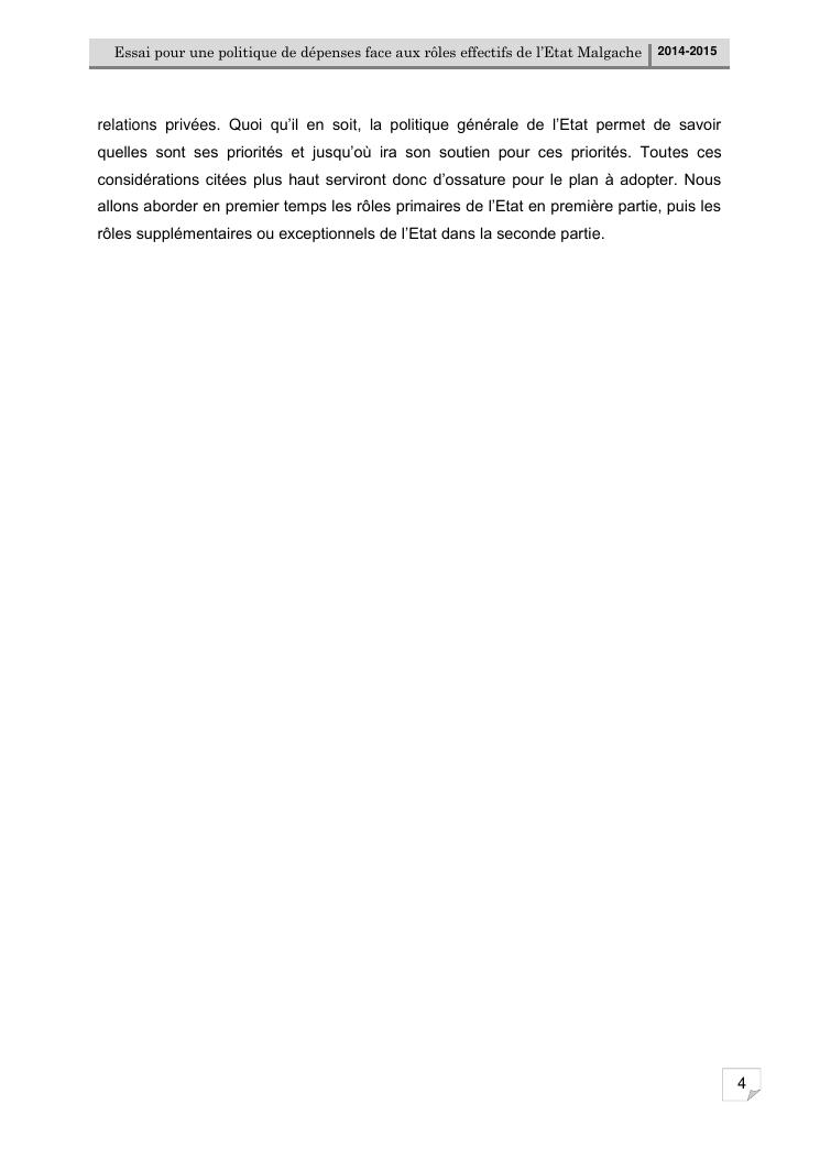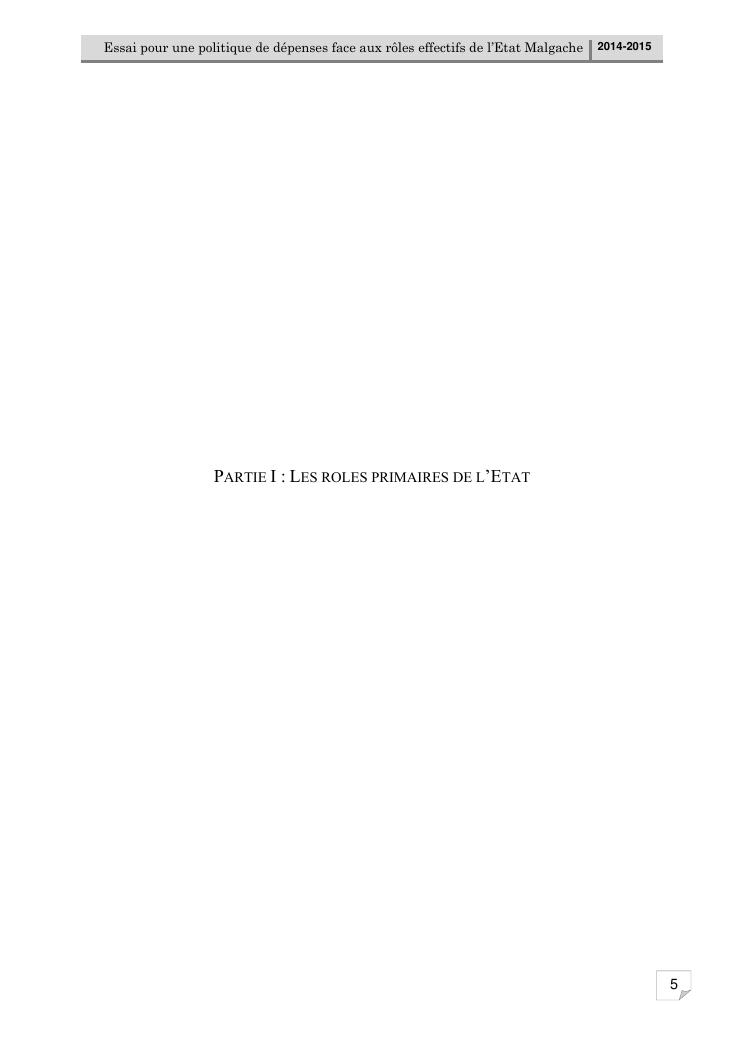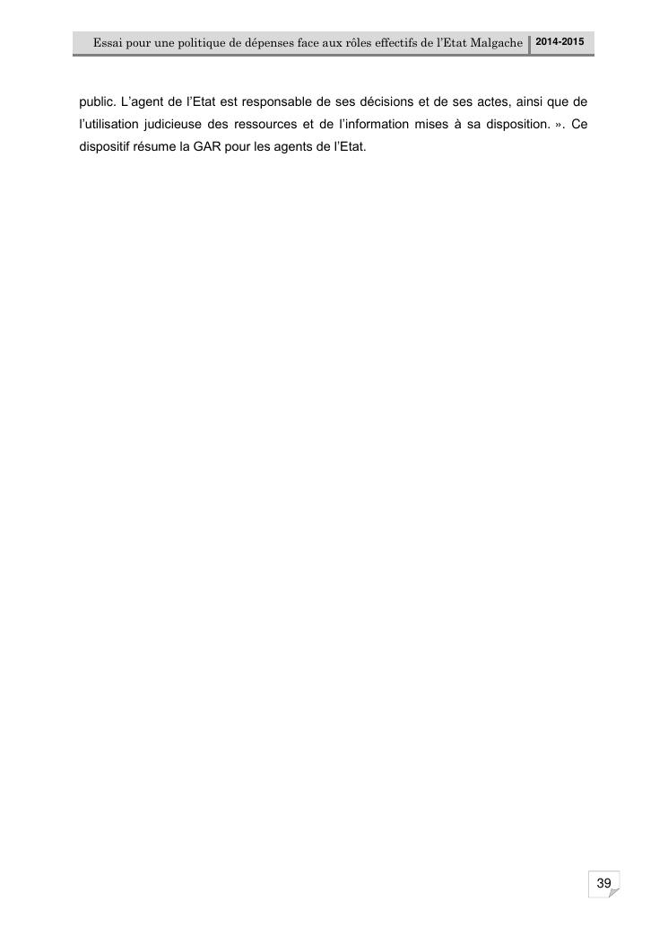 essai pour une politique de depenses publiques face aux roles effectifs de l'etat malgache