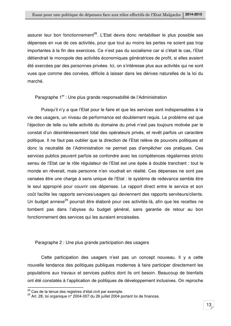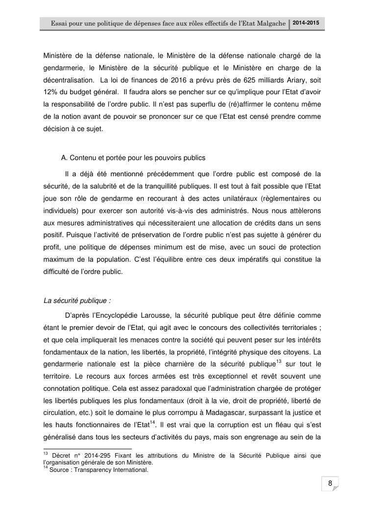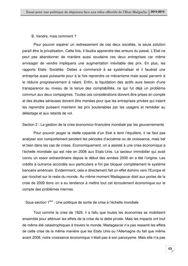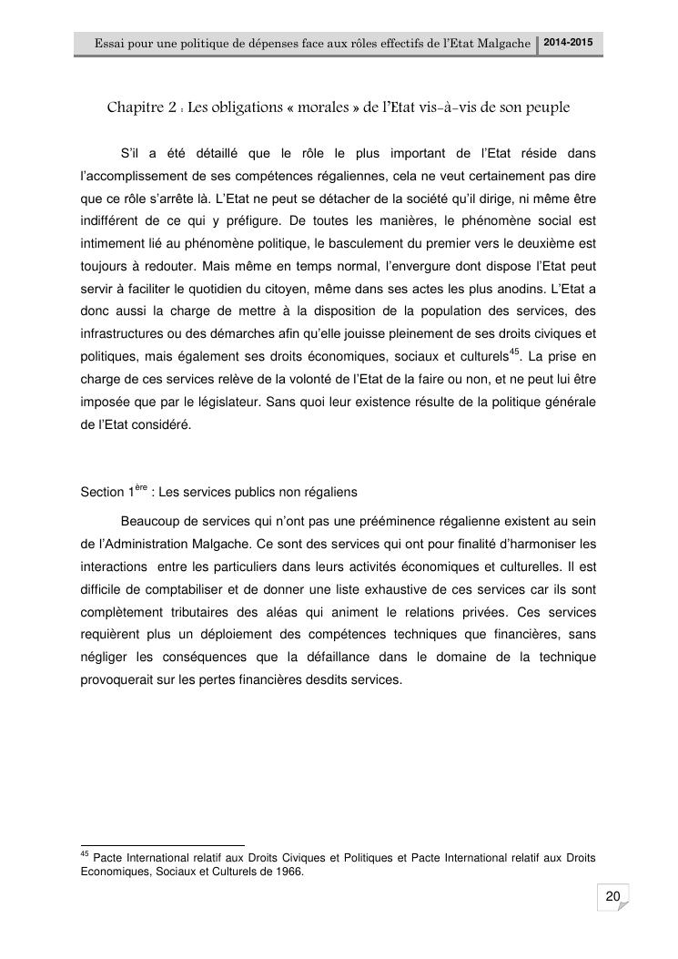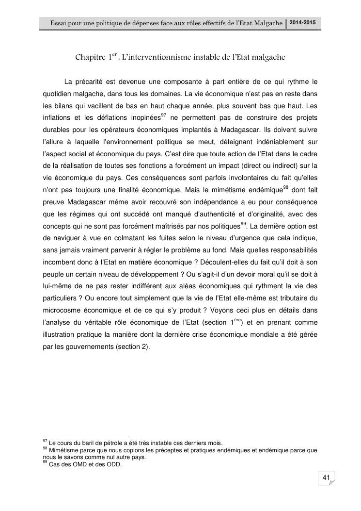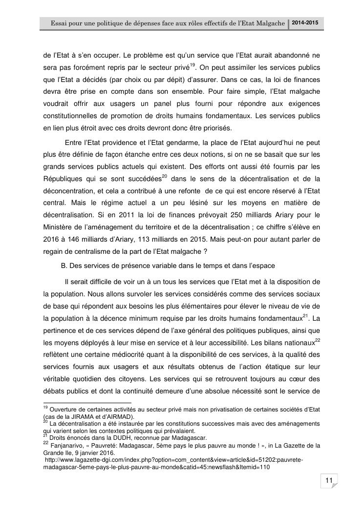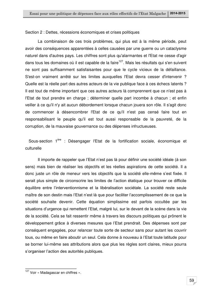 essai pour une politique de depenses publiques face aux roles effectifs de l'etat malgache