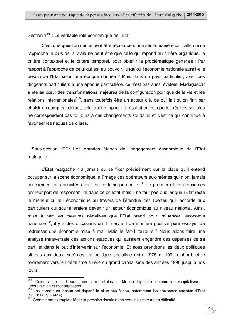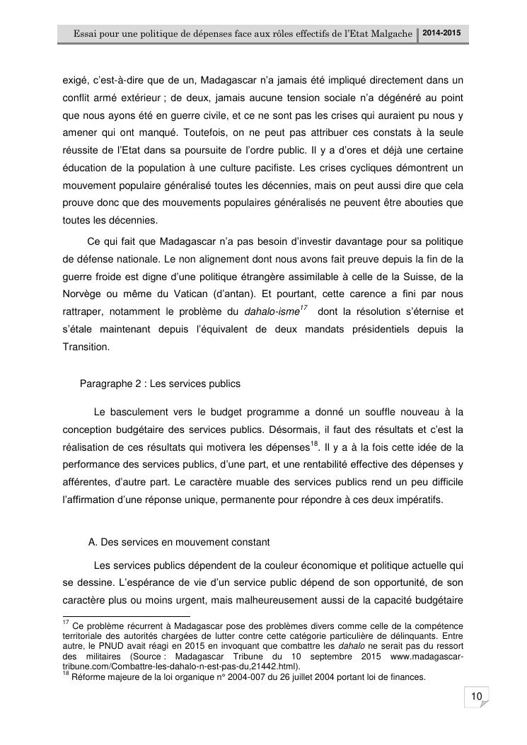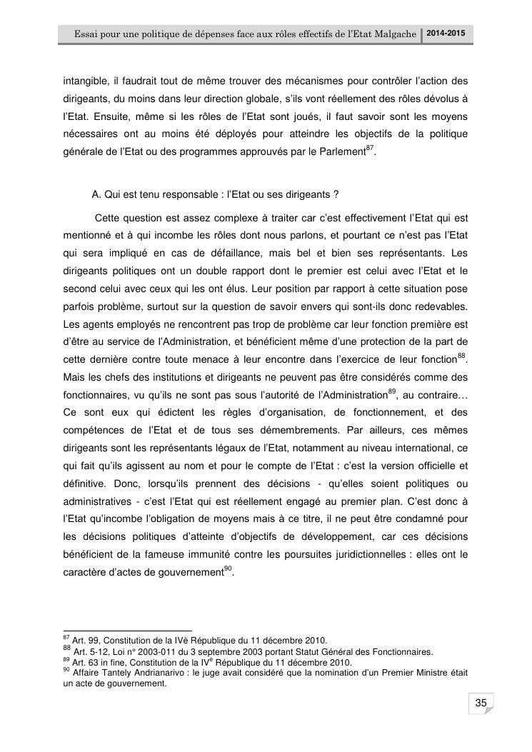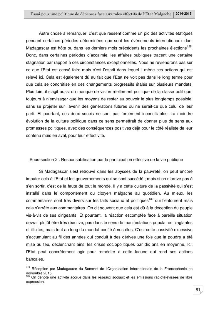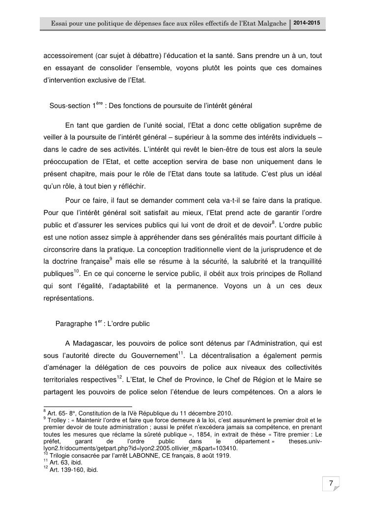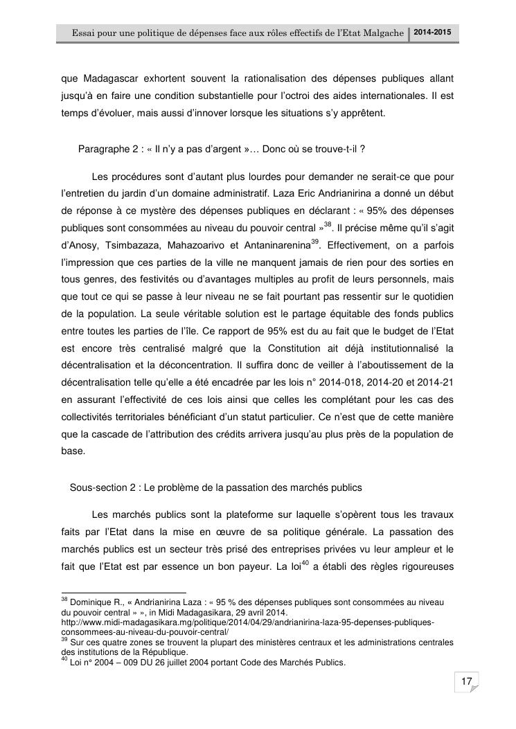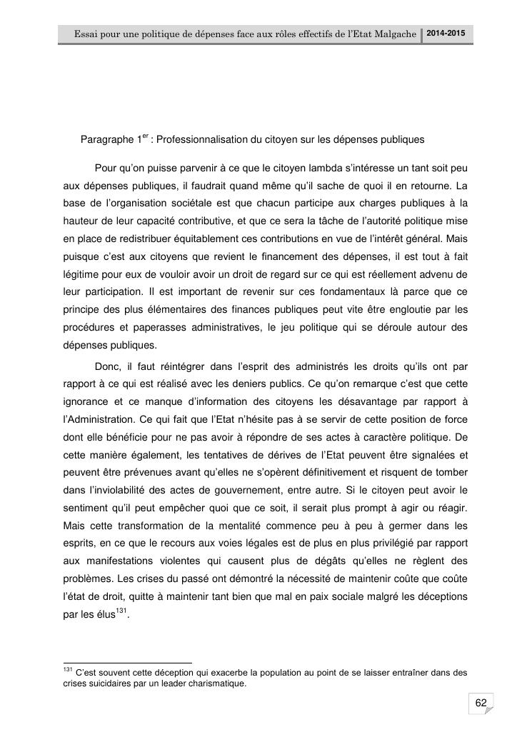 essai pour une politique de depenses publiques face aux roles effectifs de l'etat malgache