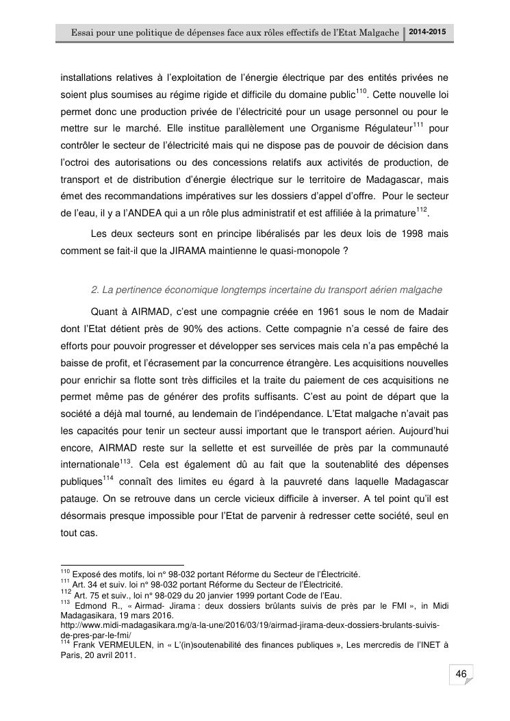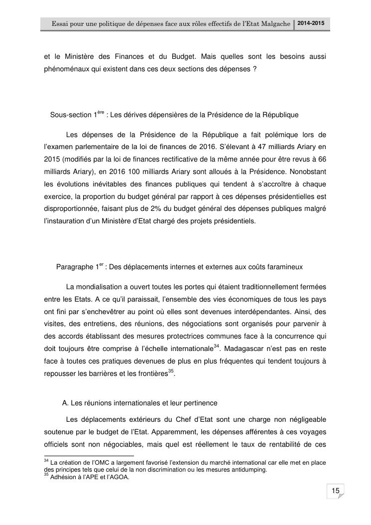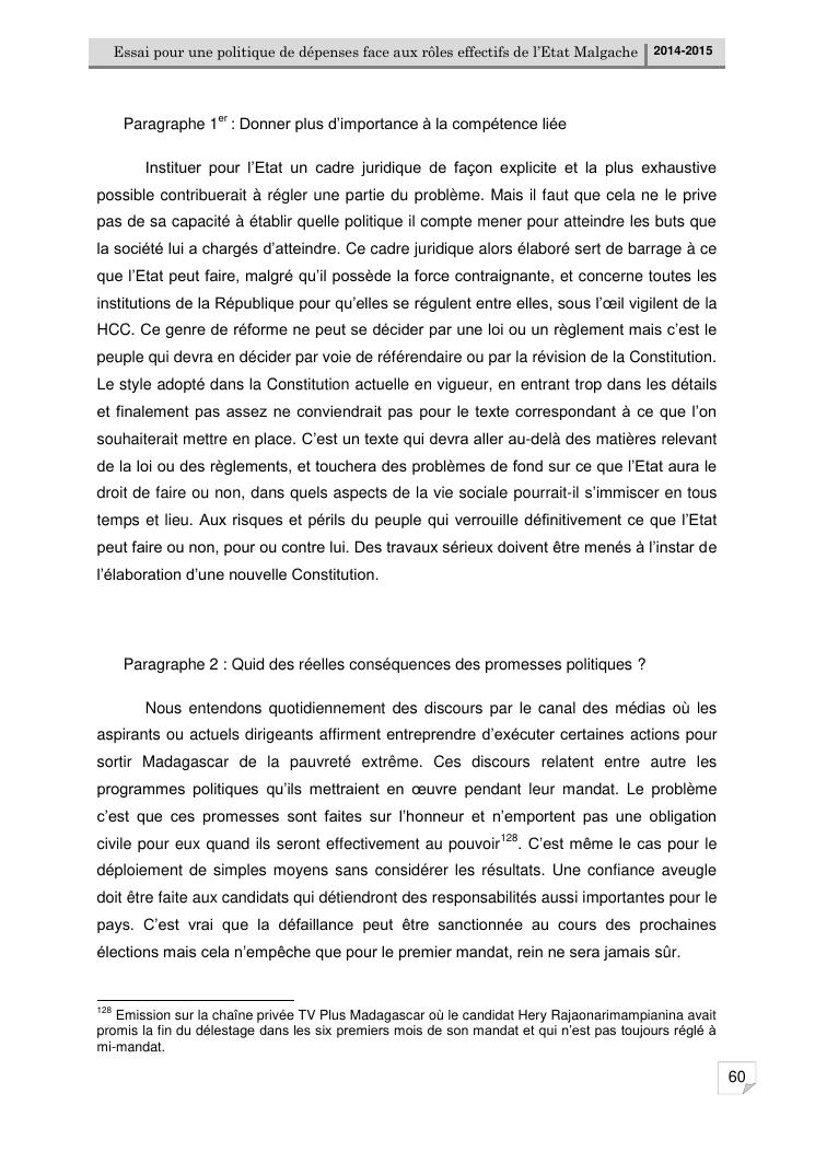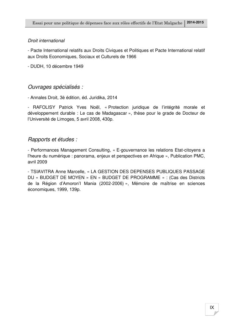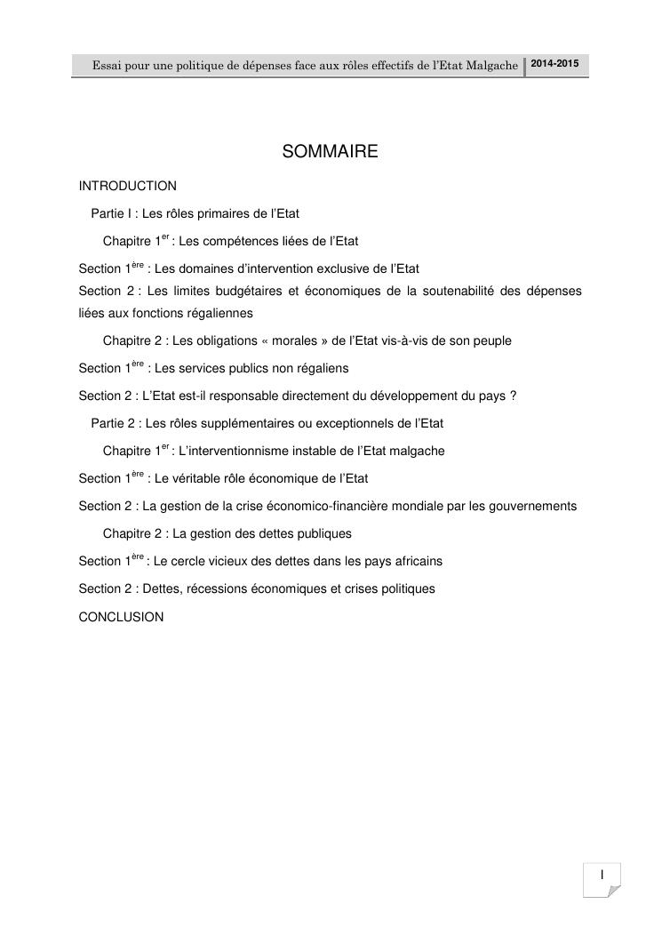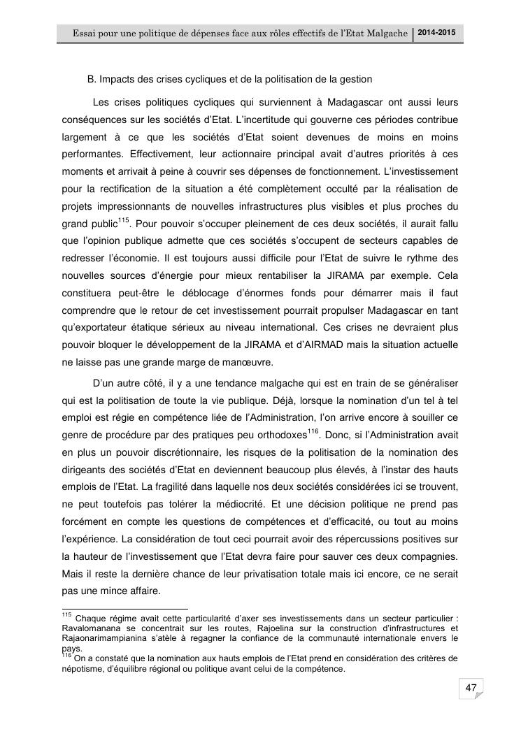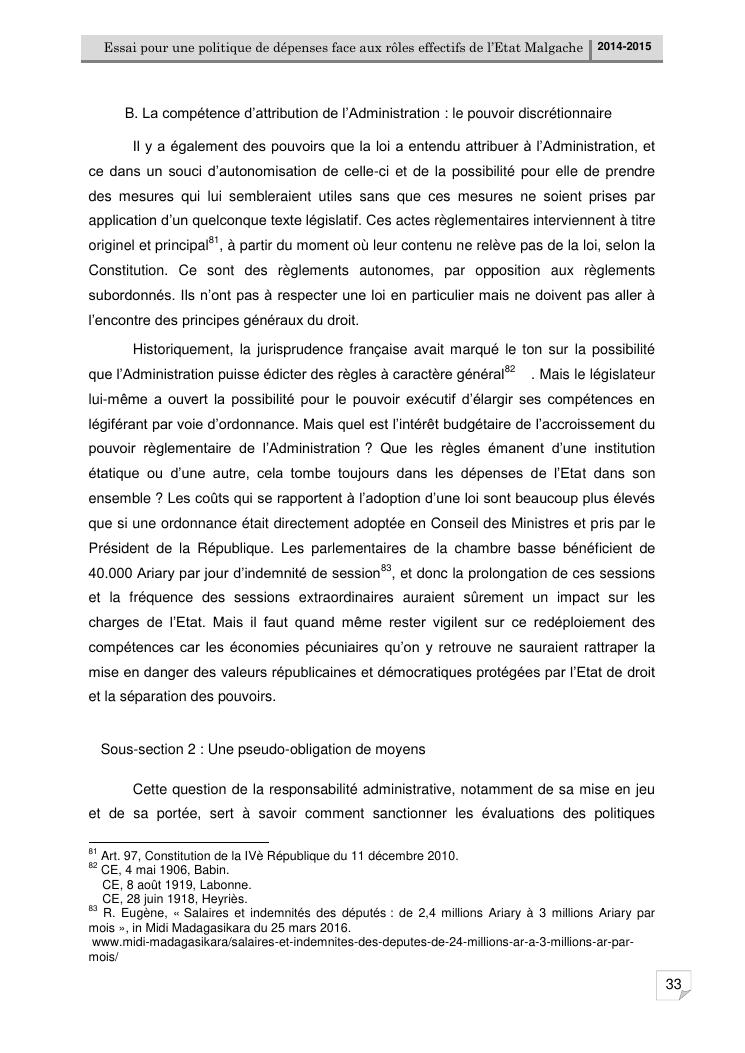 essai pour une politique de depenses publiques face aux roles effectifs de l'etat malgache