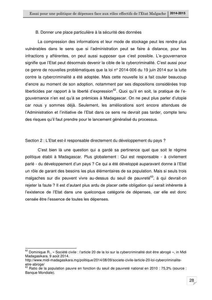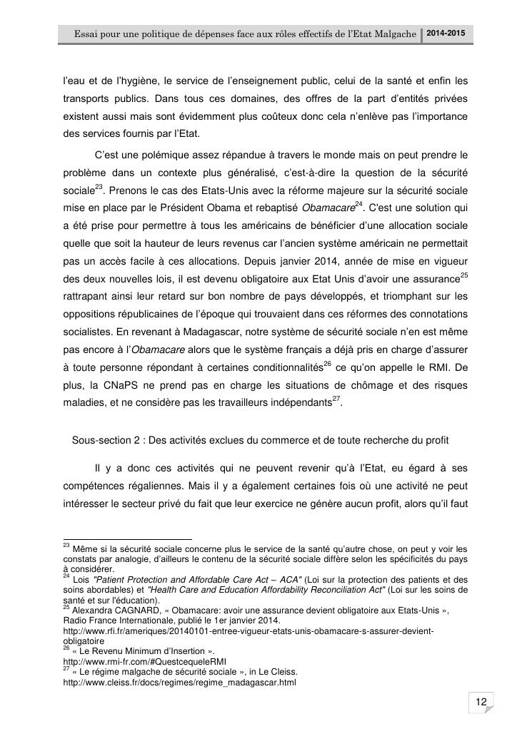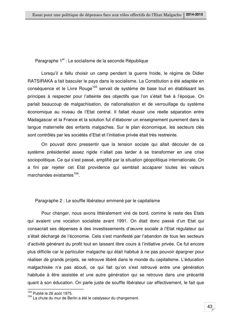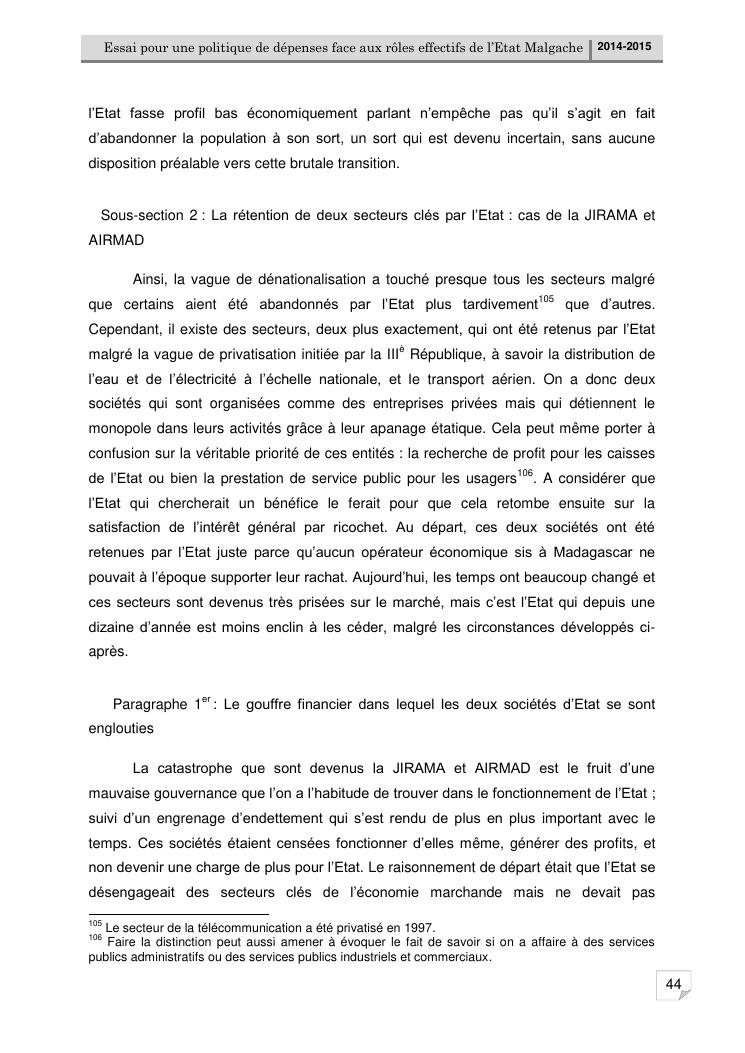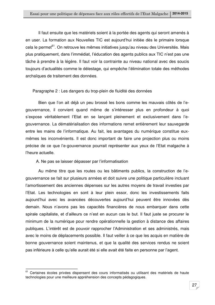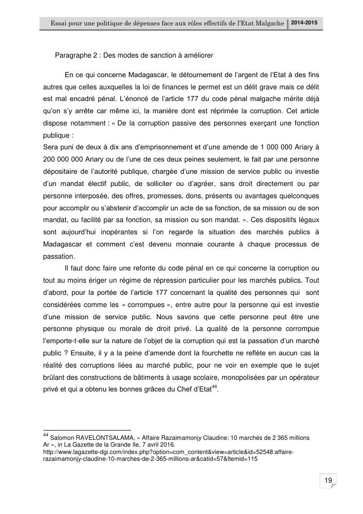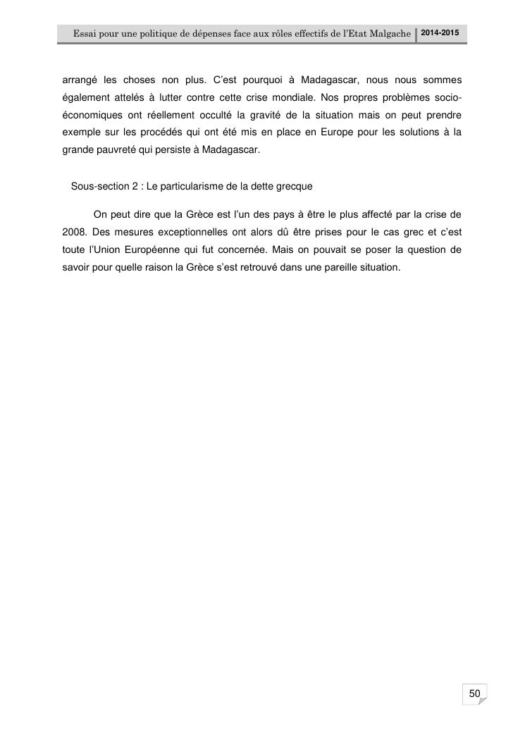 essai pour une politique de depenses publiques face aux roles effectifs de l'etat malgache