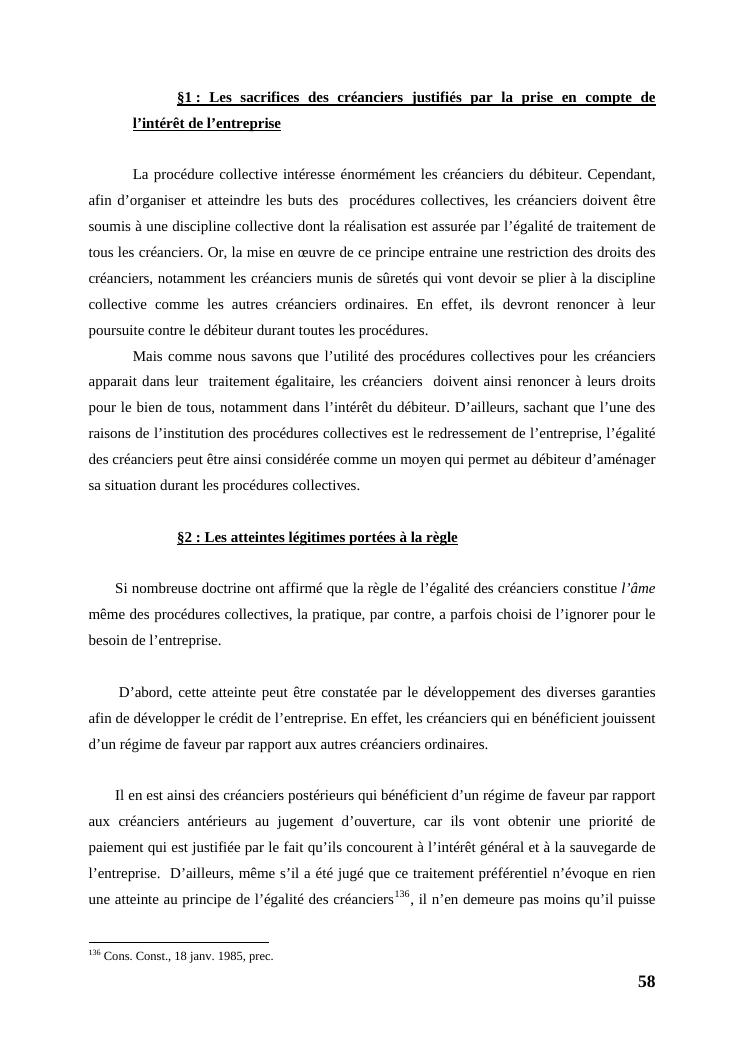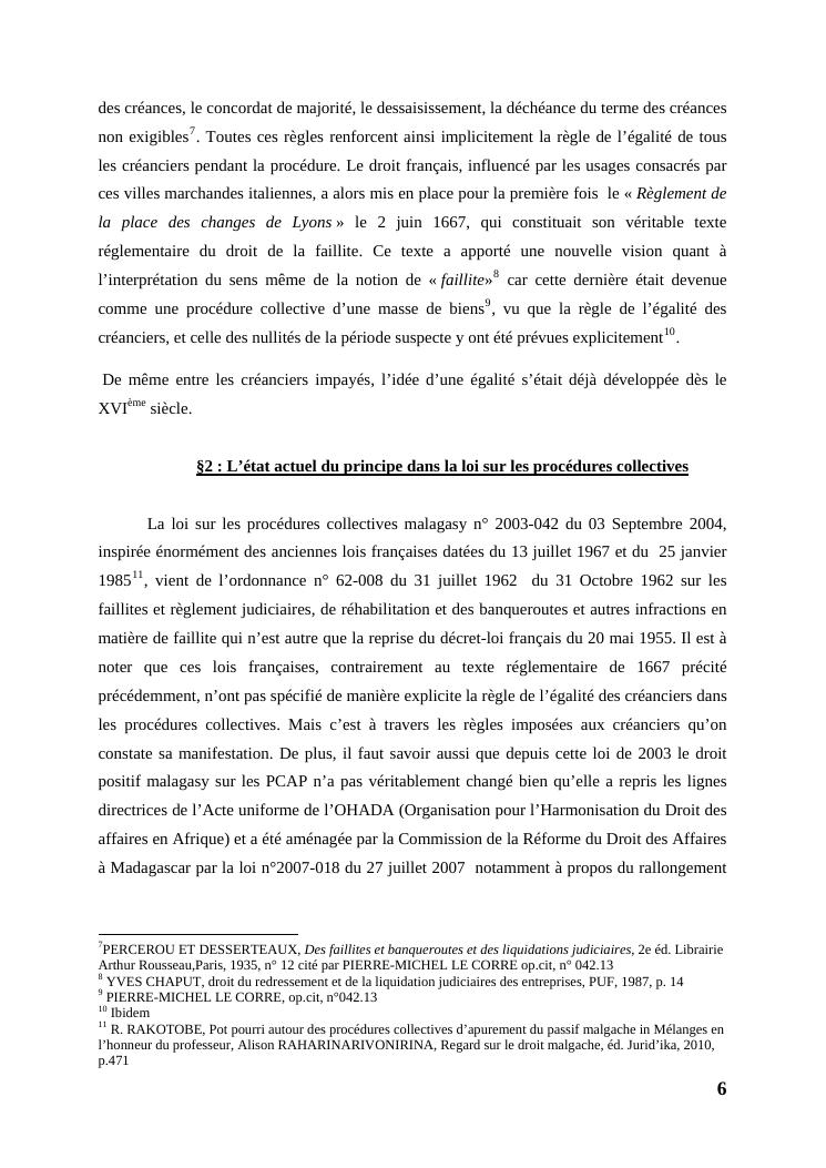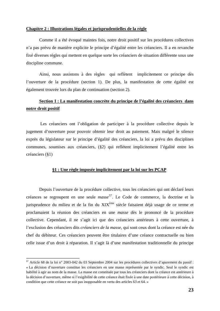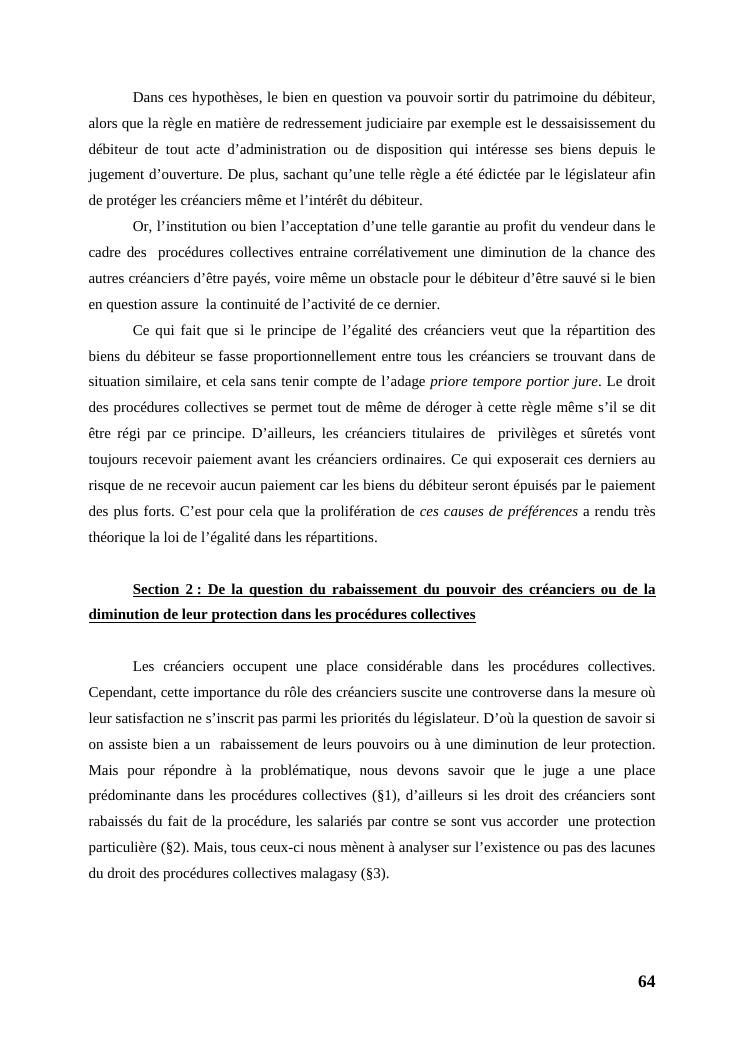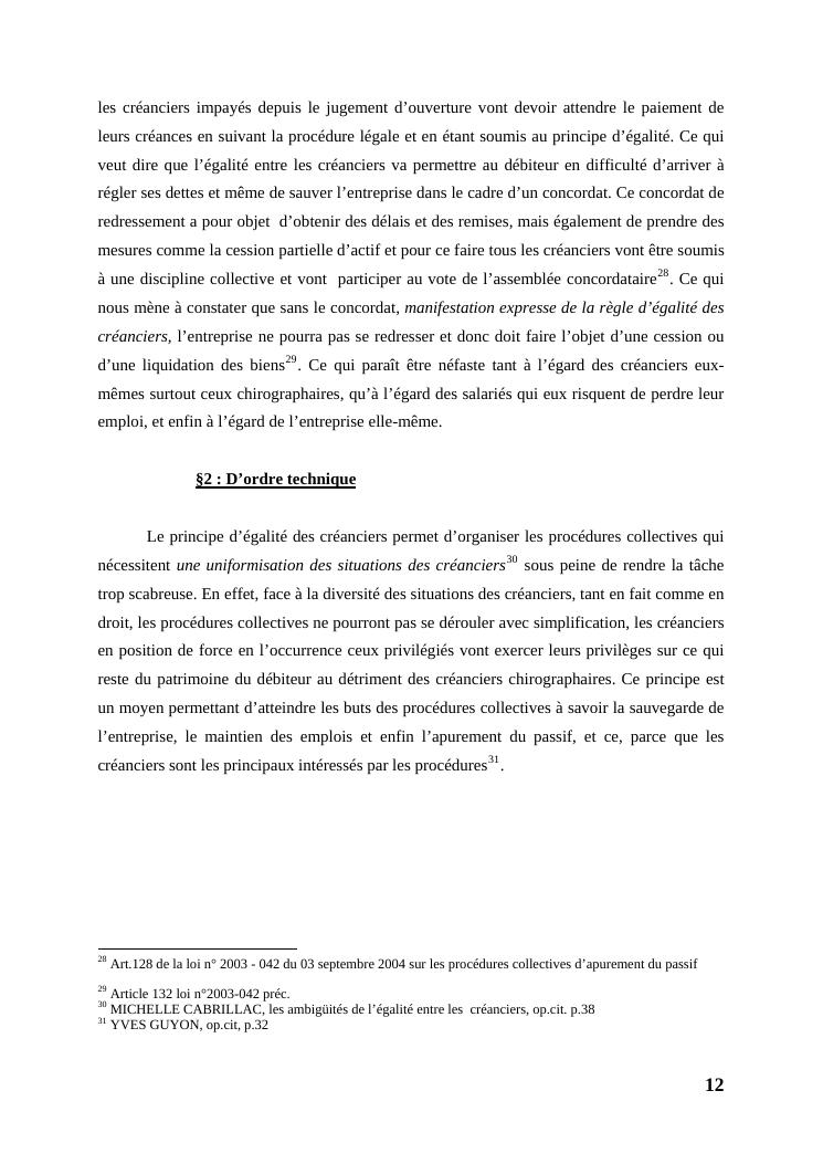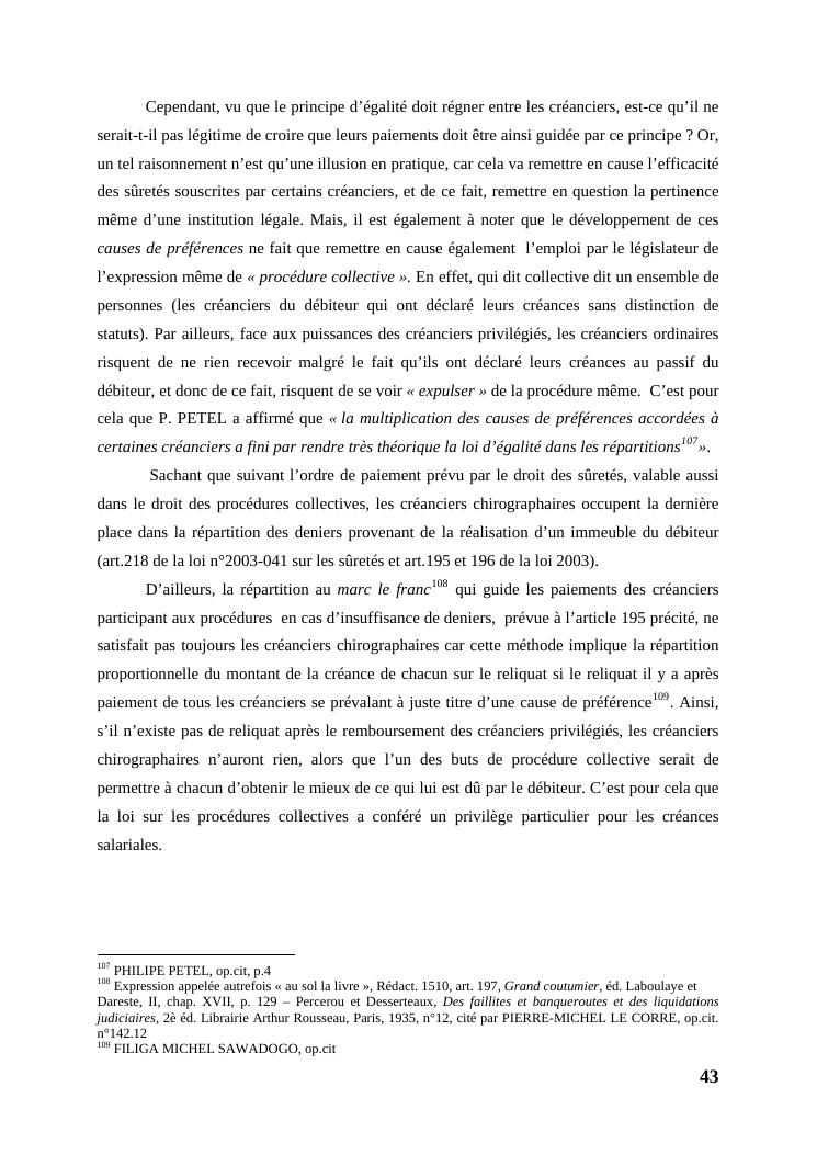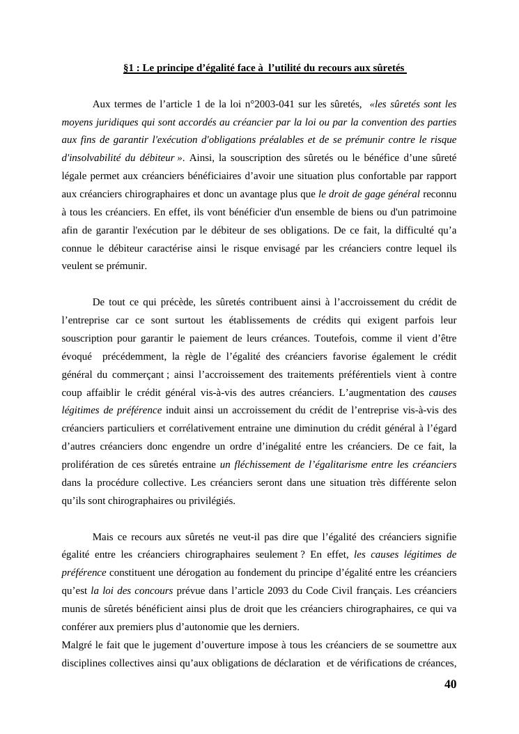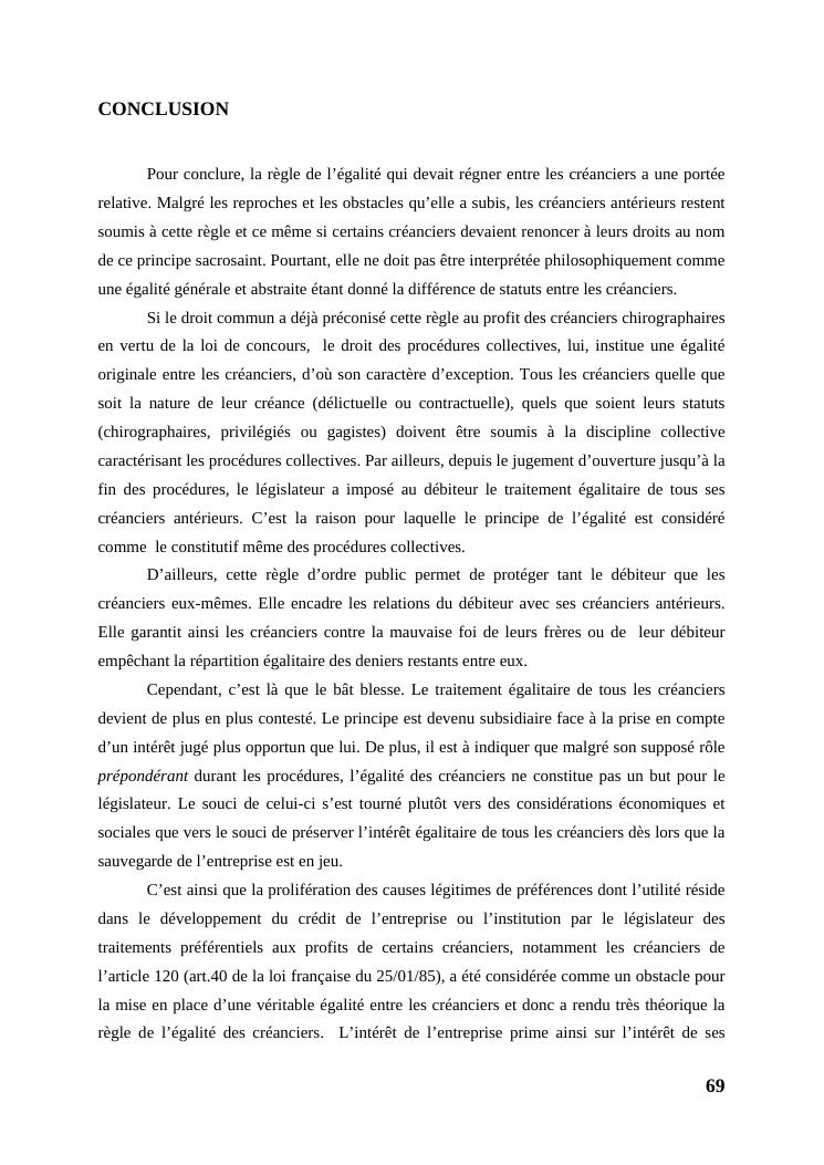 l'égalité des créanciers dans les procédures collectives d'apurement du passif