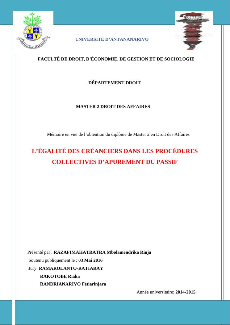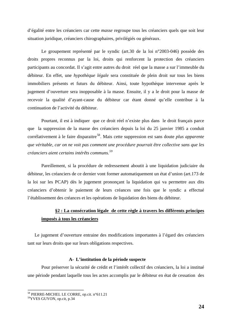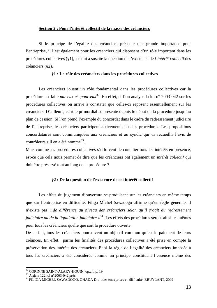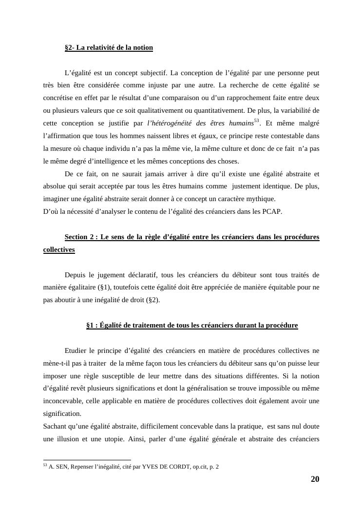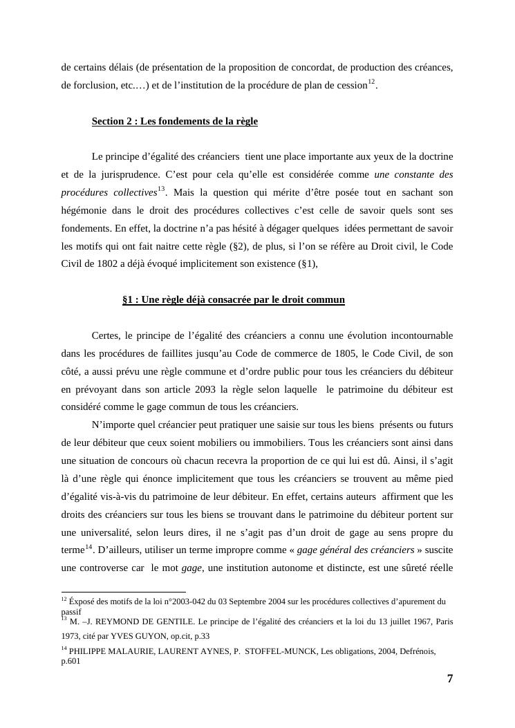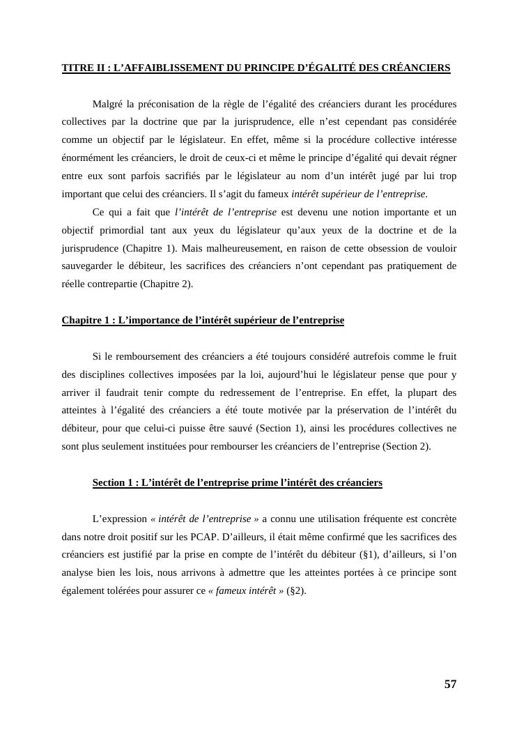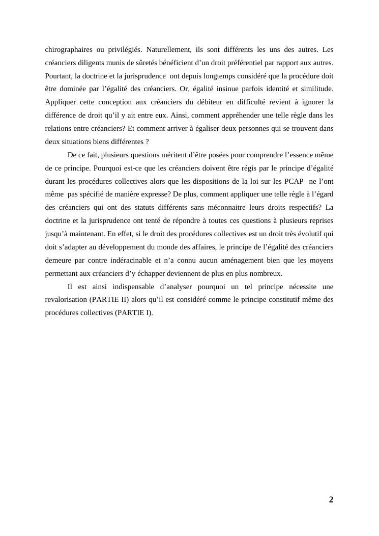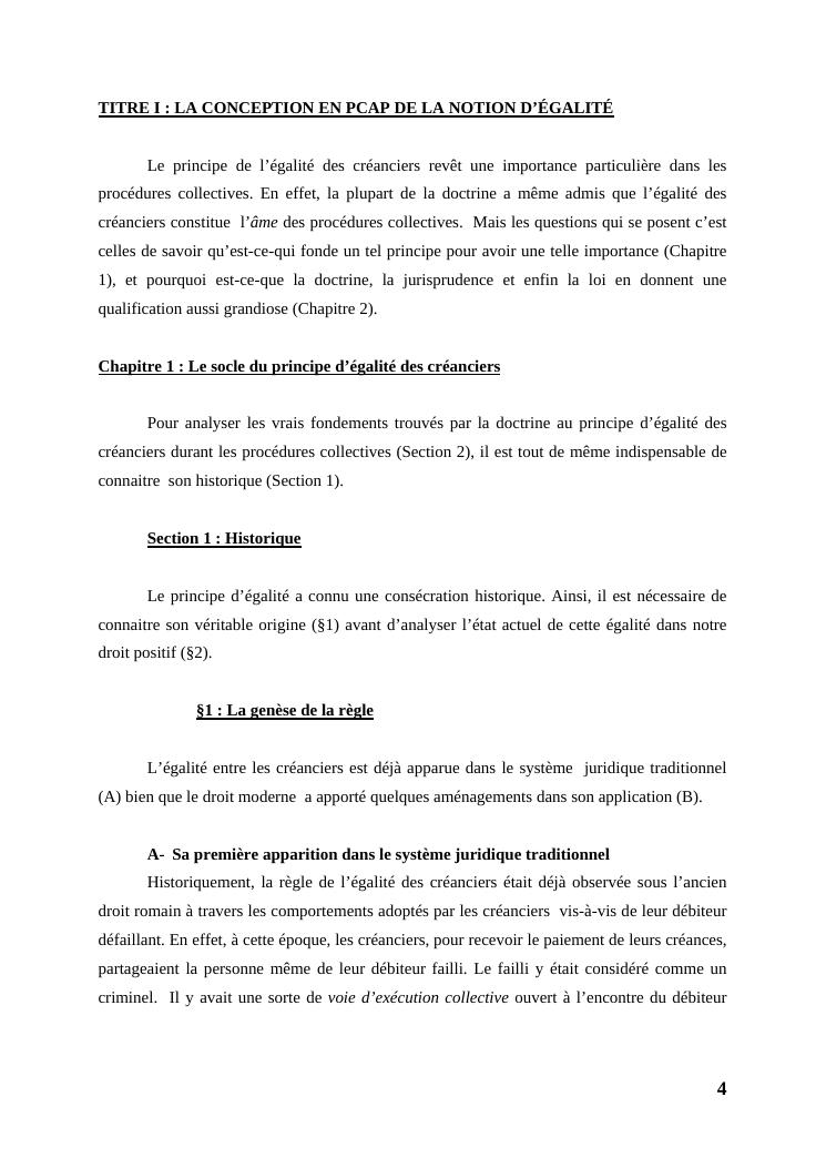 l'égalité des créanciers dans les procédures collectives d'apurement du passif