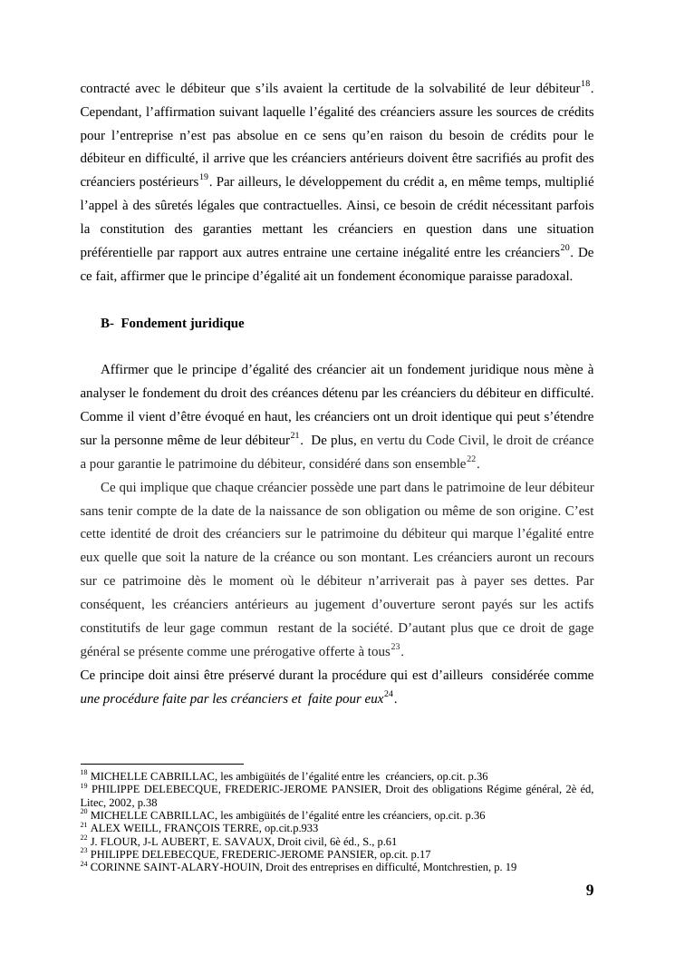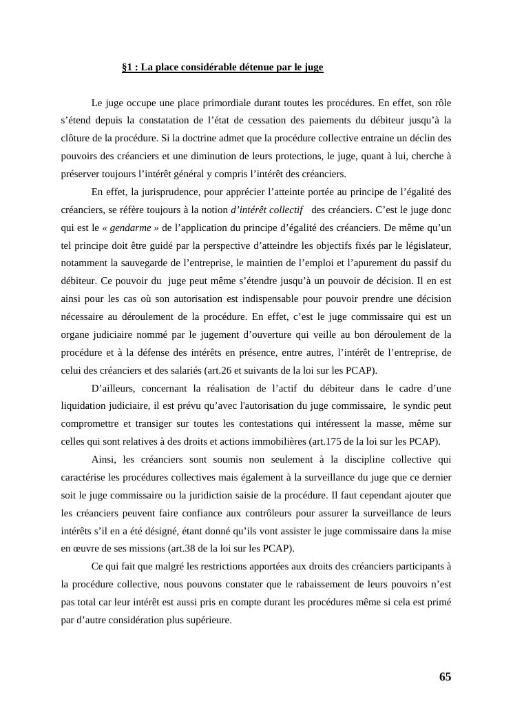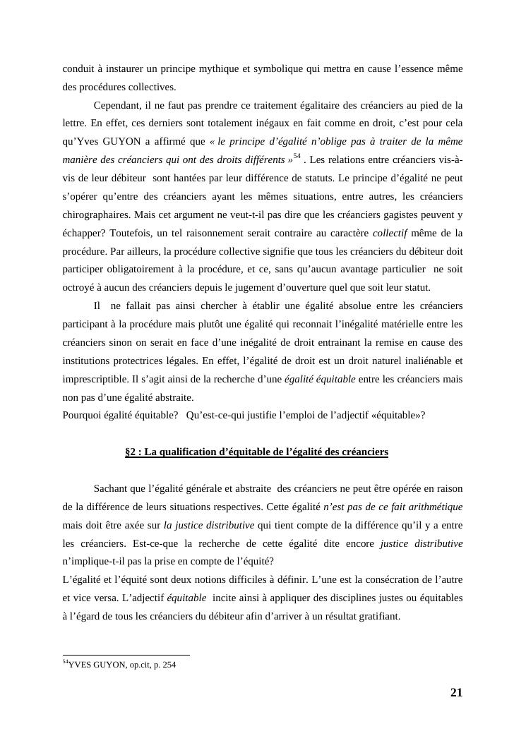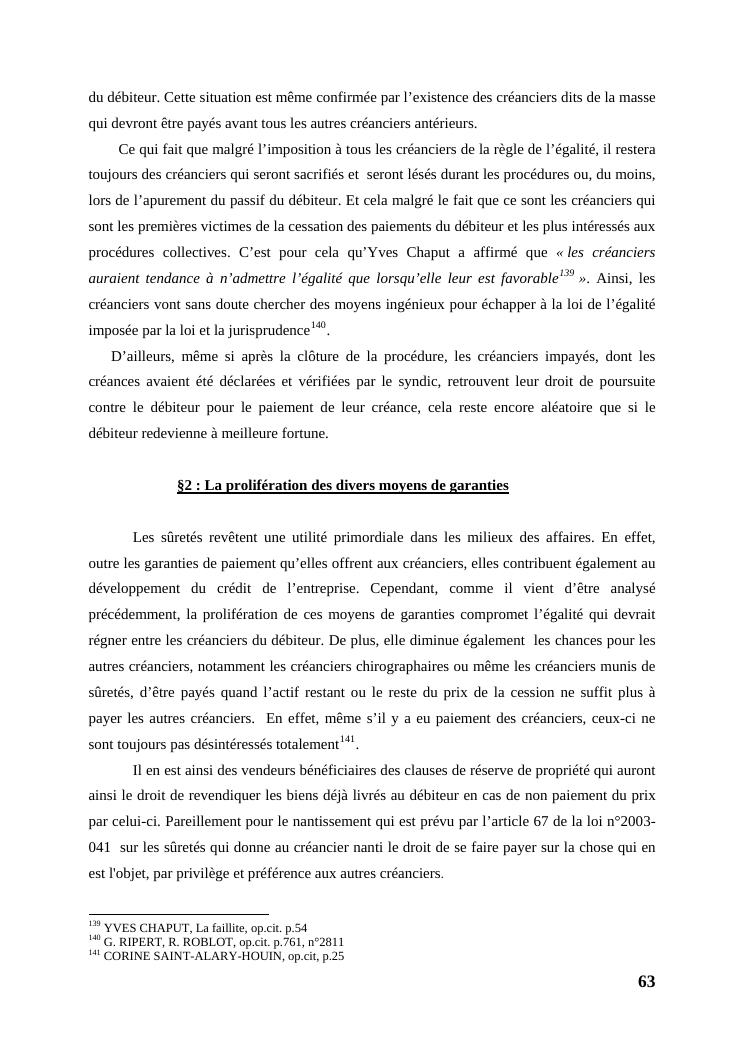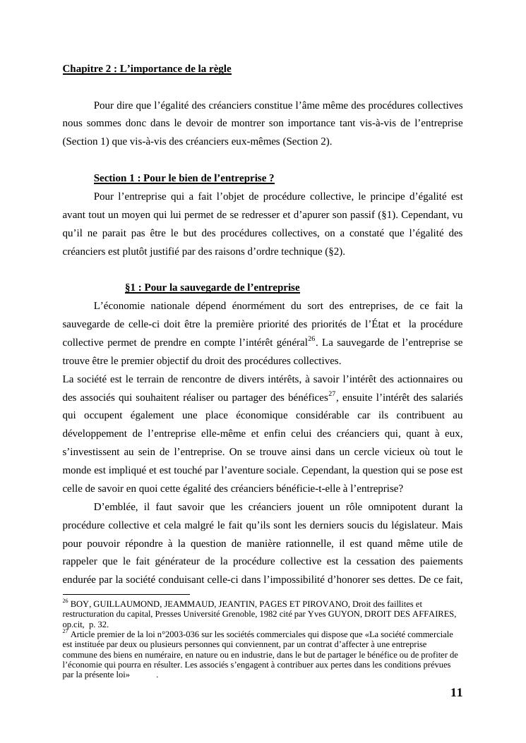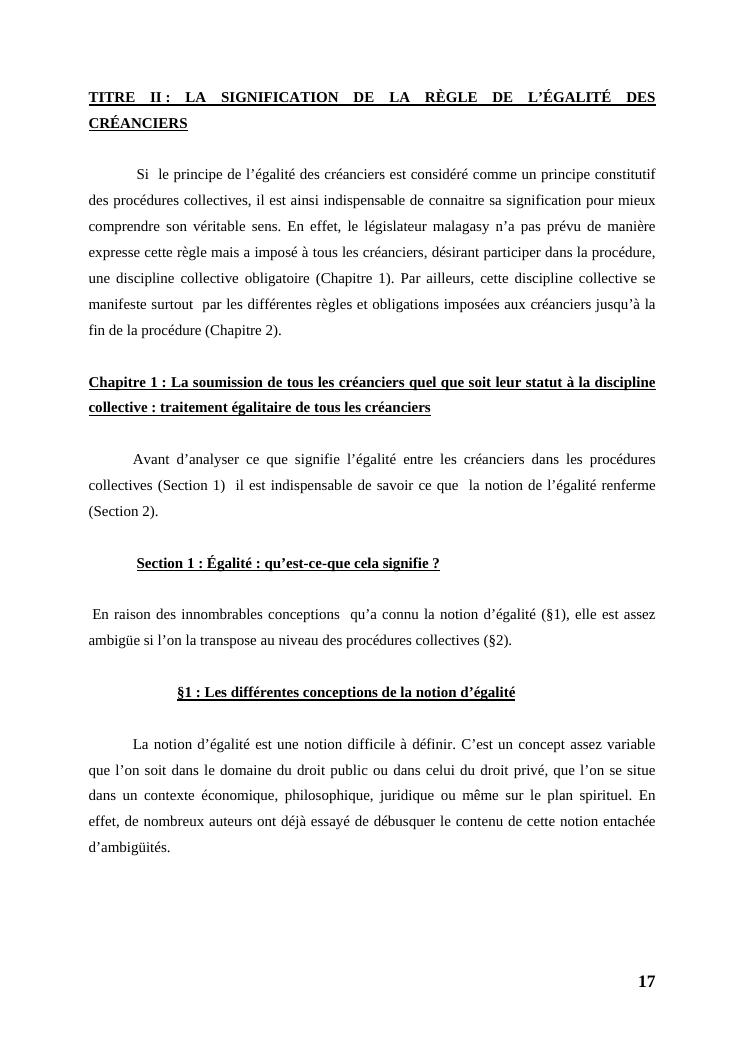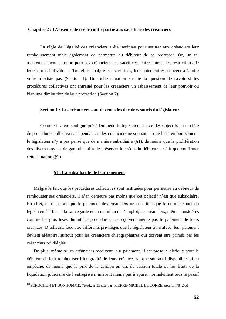 l'égalité des créanciers dans les procédures collectives d'apurement du passif