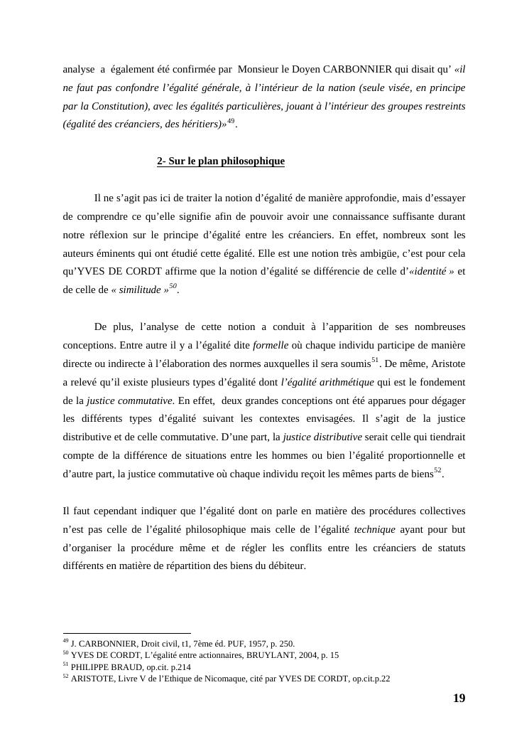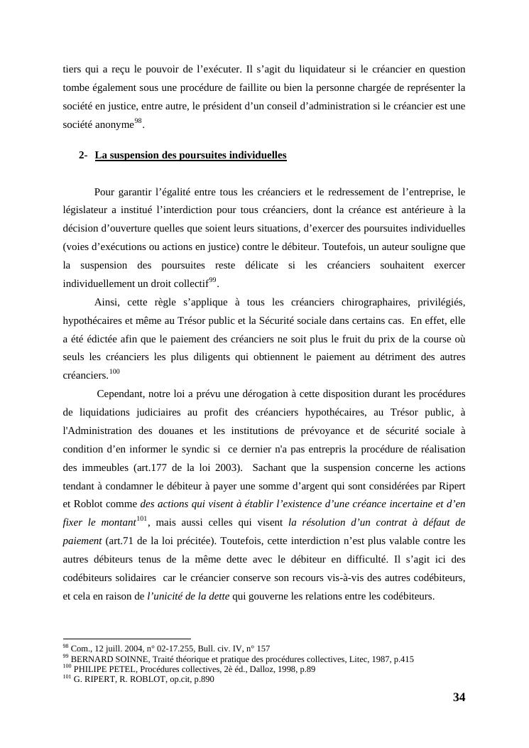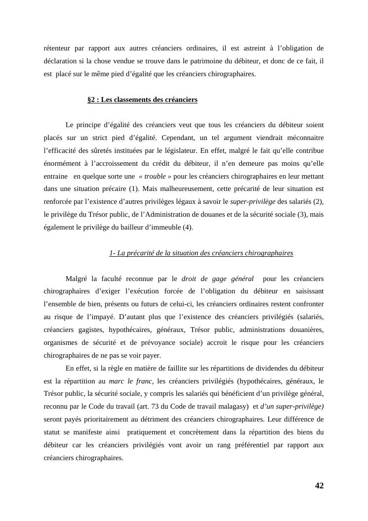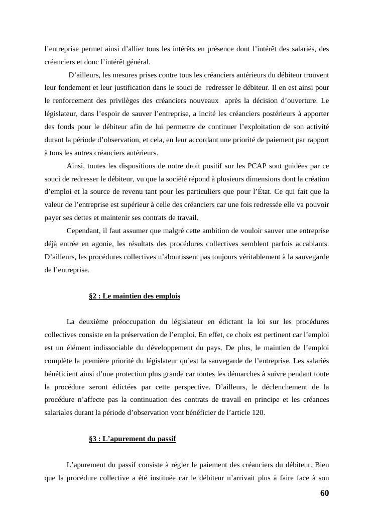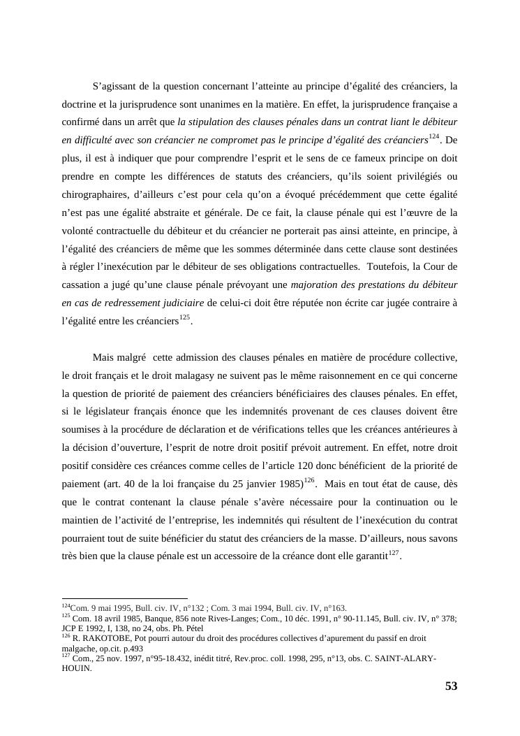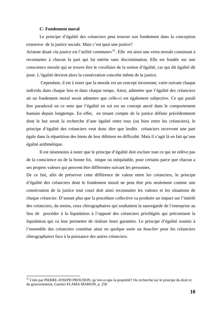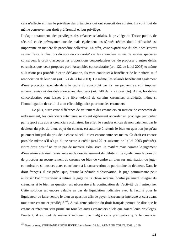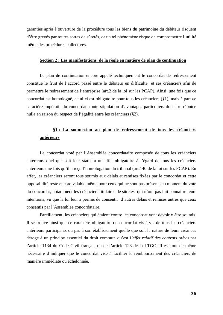 l'égalité des créanciers dans les procédures collectives d'apurement du passif