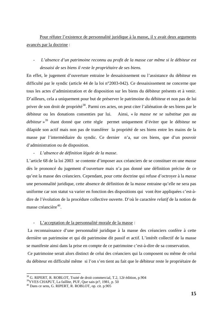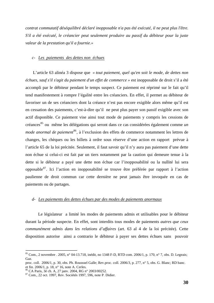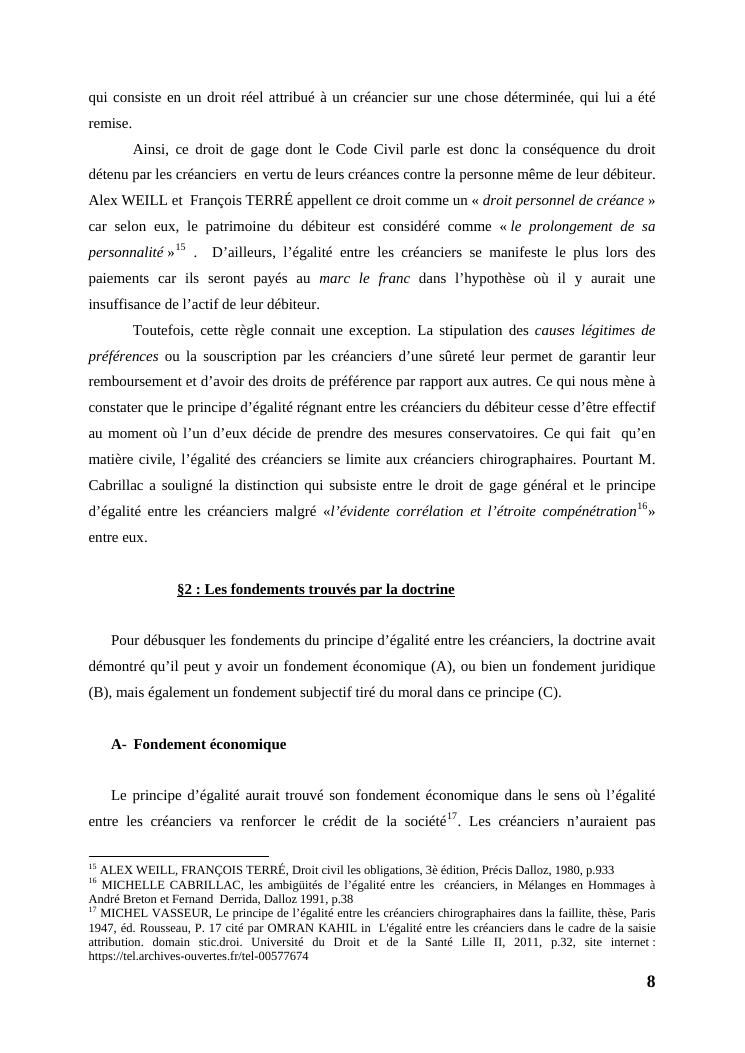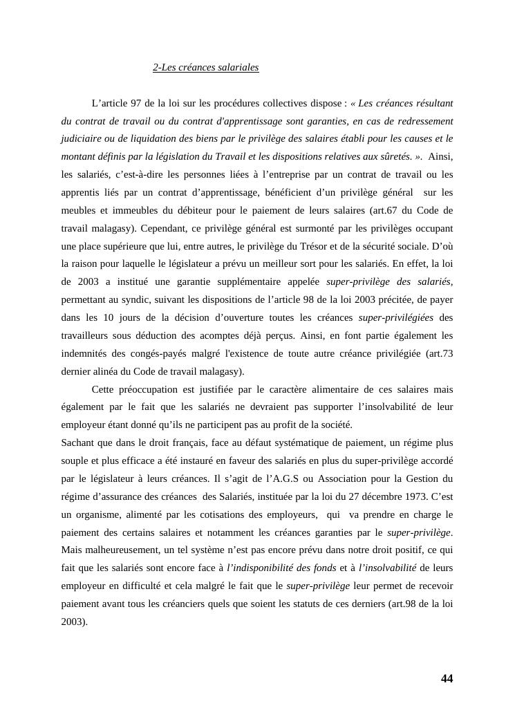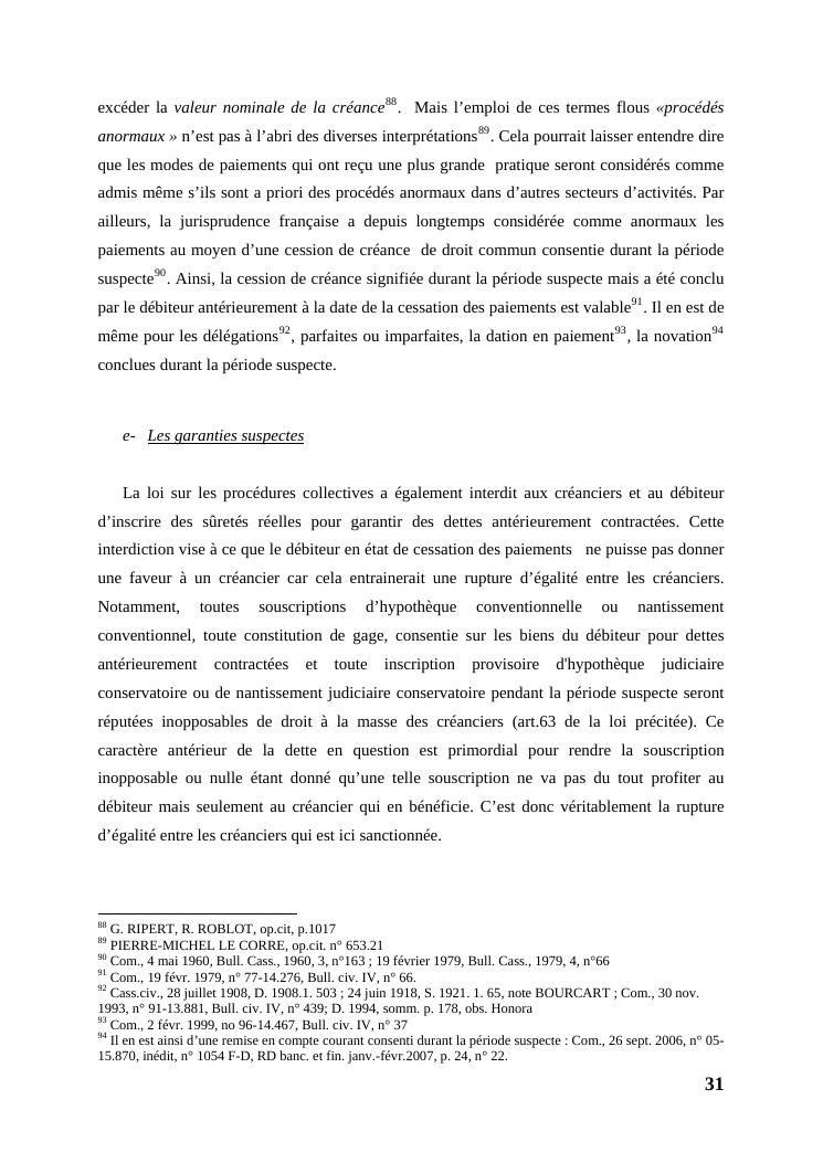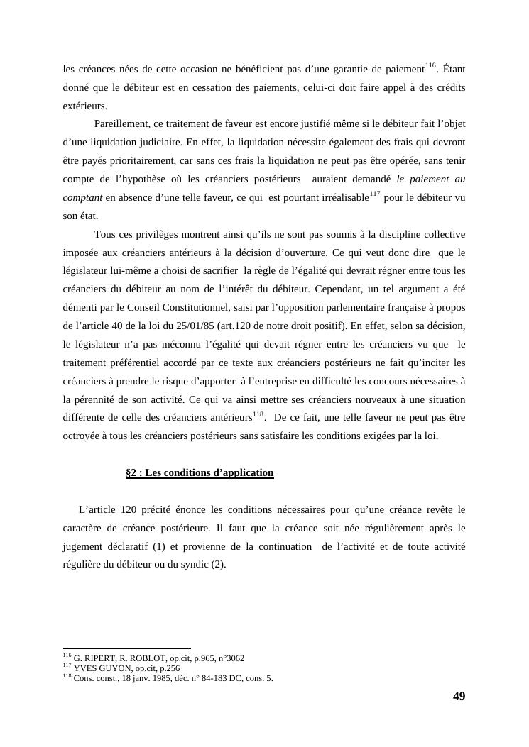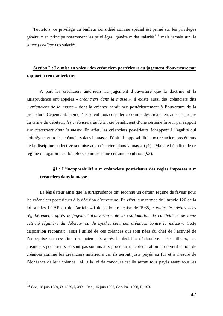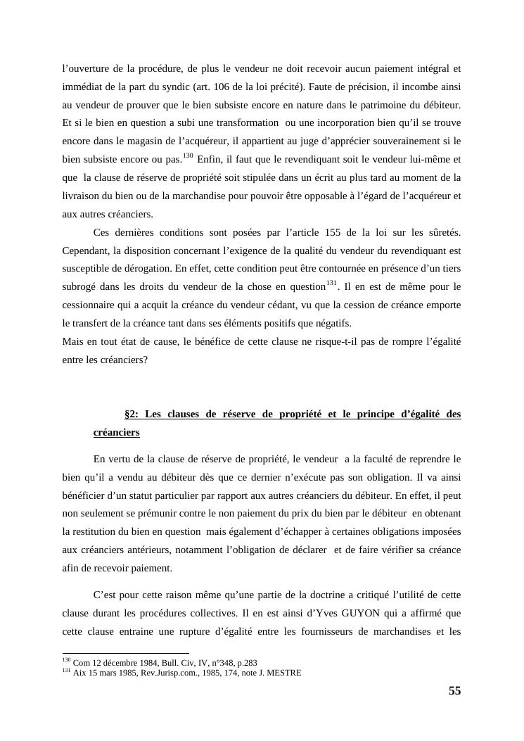l'égalité des créanciers dans les procédures collectives d'apurement du passif