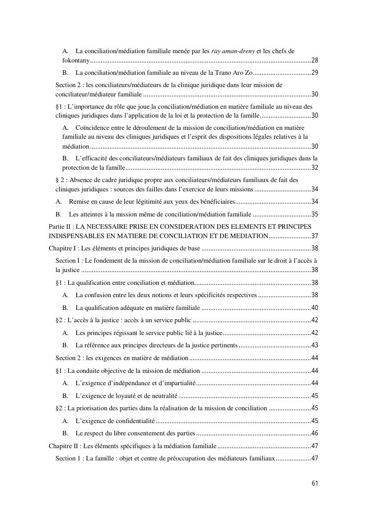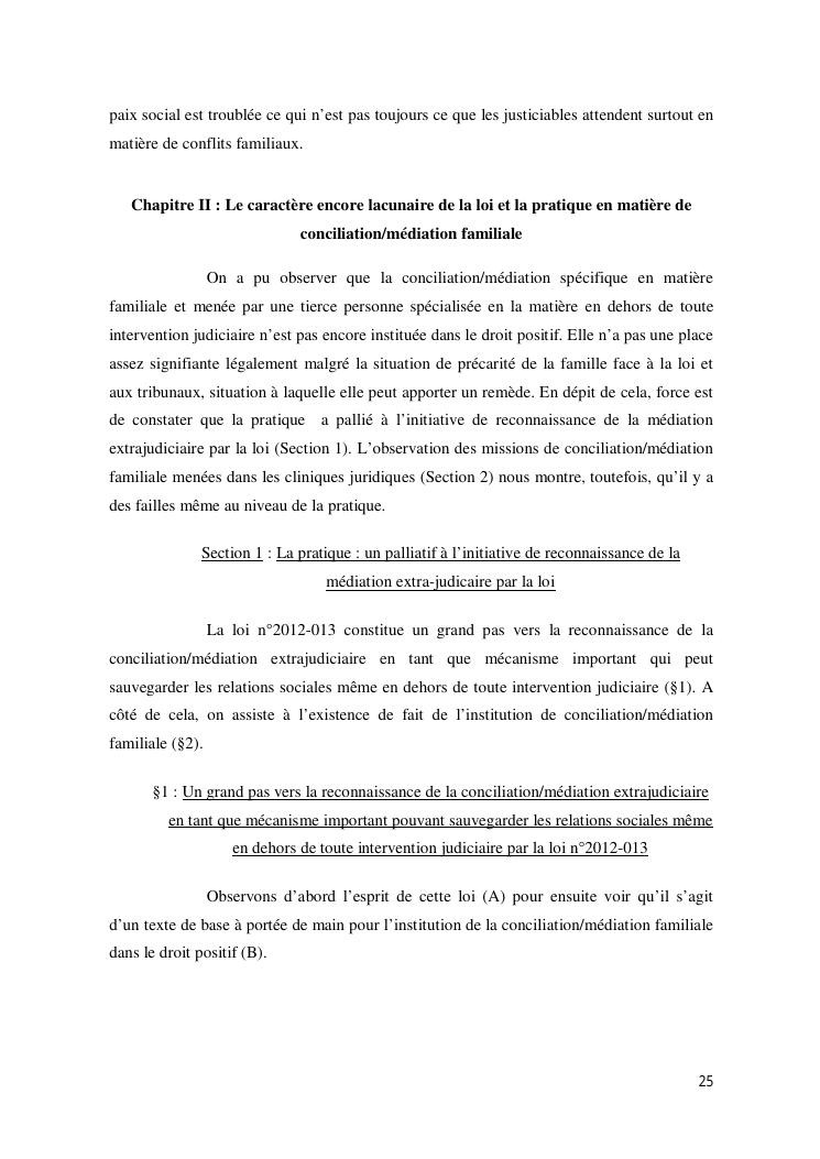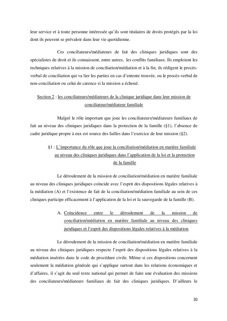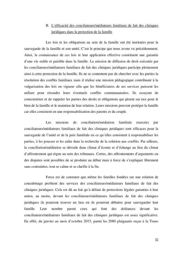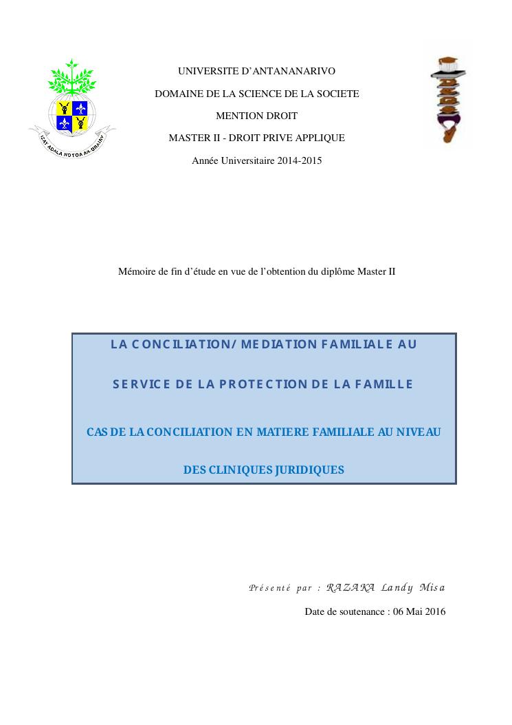 la conciliation/mediation familiale au service de la protection de la famille cas de la conciliation en matiere familiale au niveau des cliniques juridiques