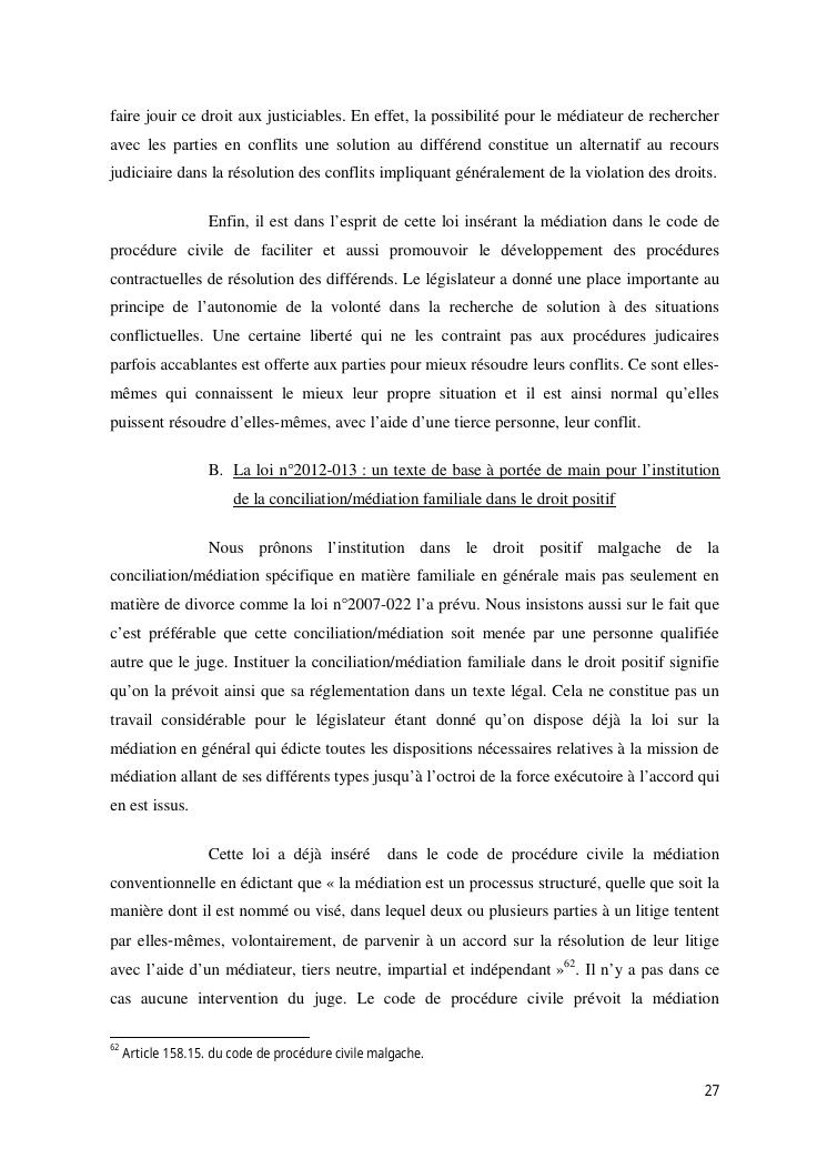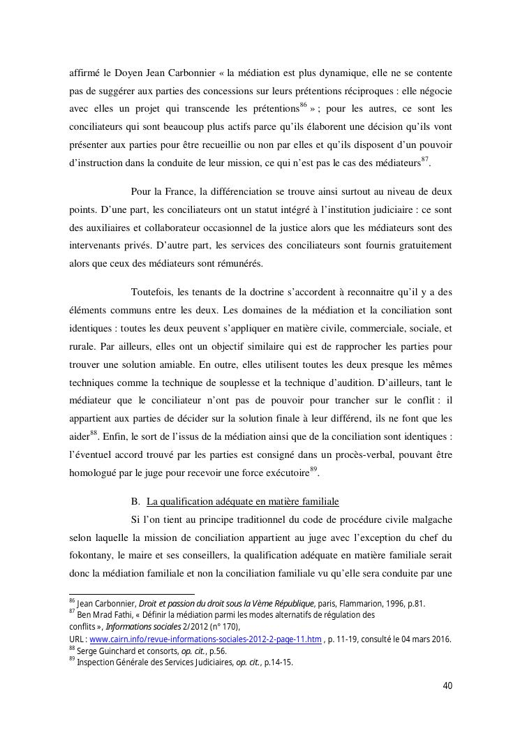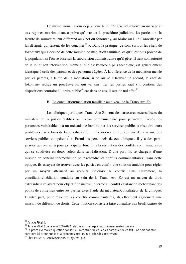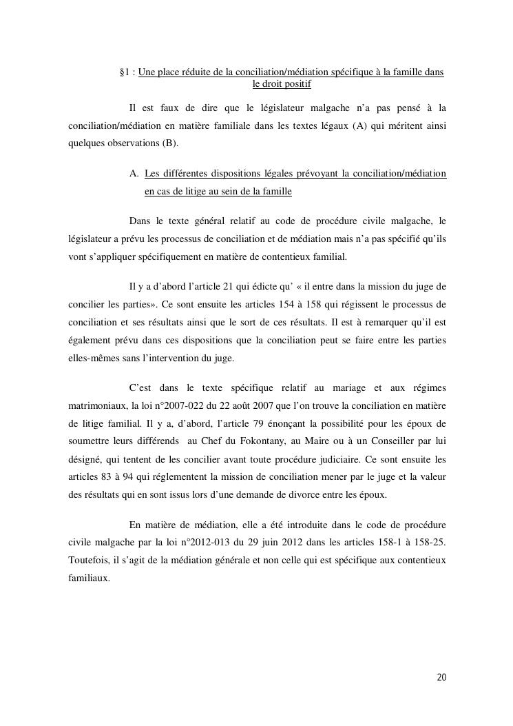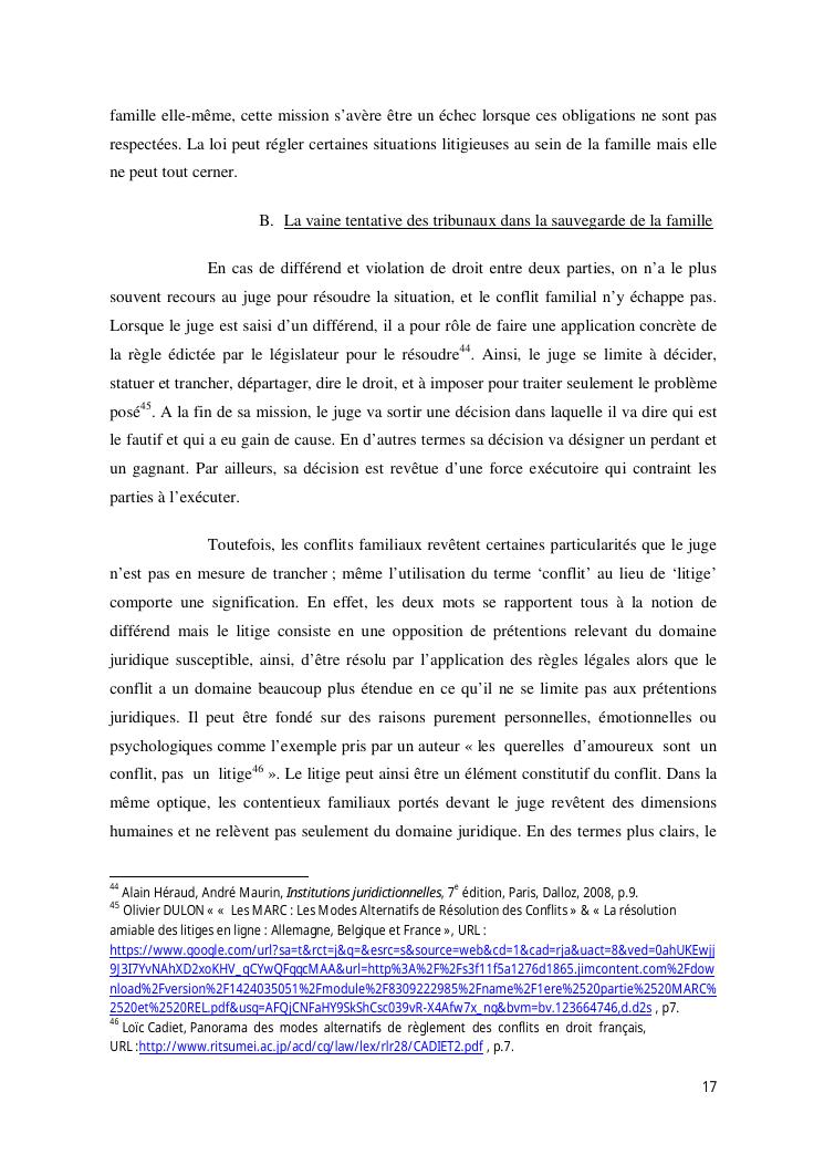 la conciliation/mediation familiale au service de la protection de la famille cas de la conciliation en matiere familiale au niveau des cliniques juridiques