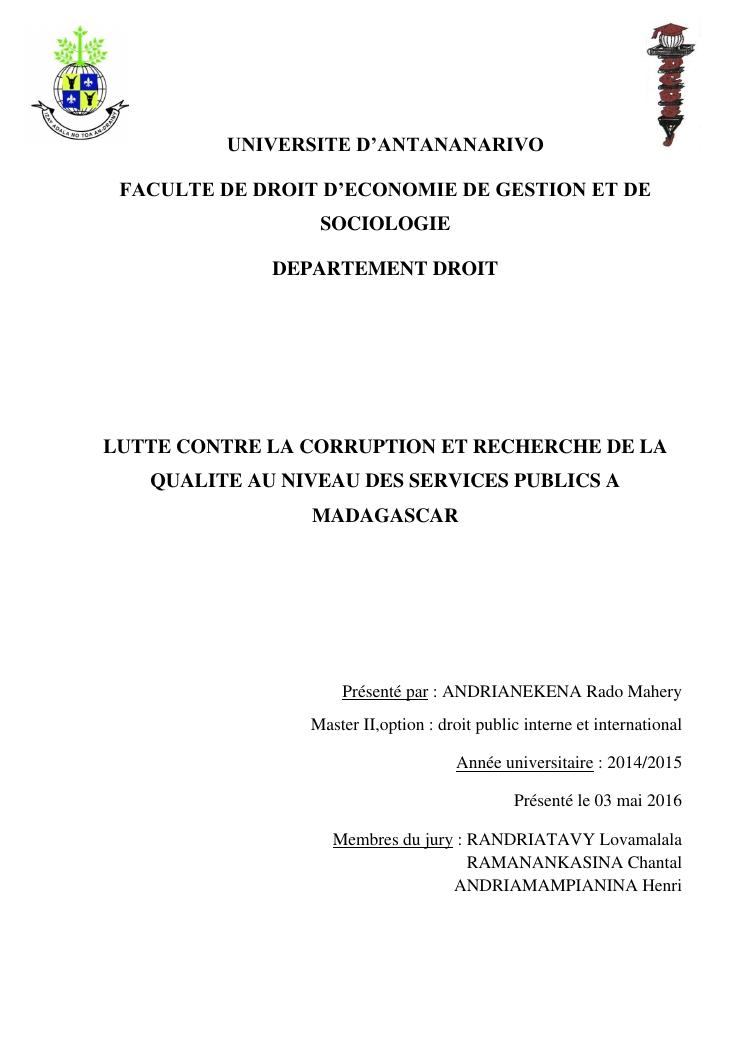 lutte contre la corruption et recherche de la qualite au niveau des services publics a madagascar