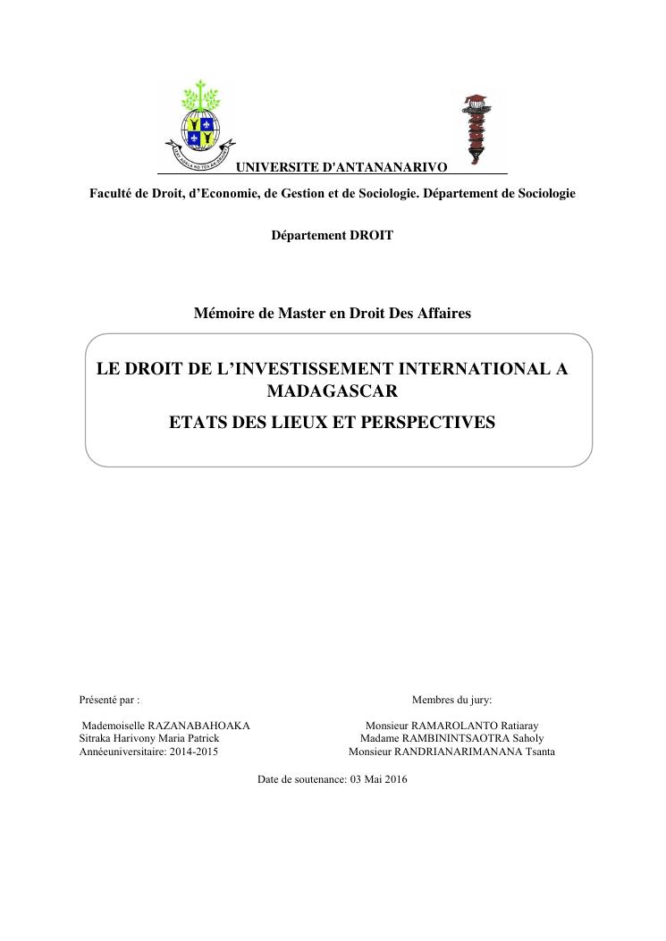 le droit de l'investissement international a madagascar etats des lieux et perspectives