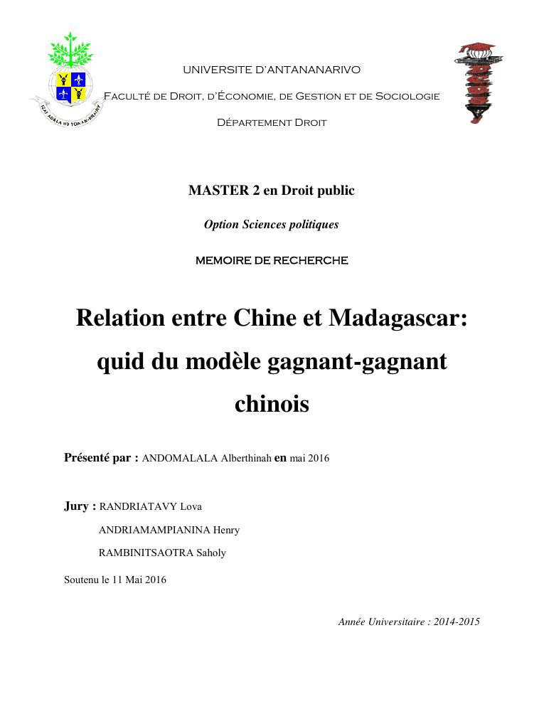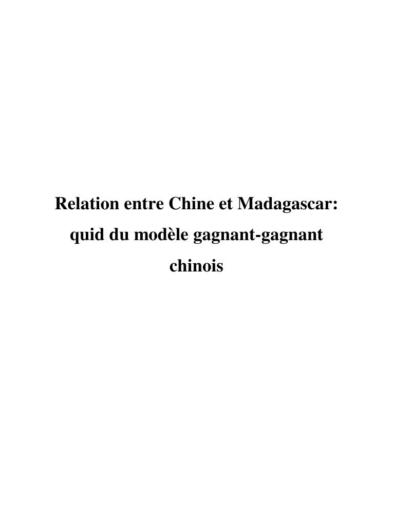 relation entre chine et madagascar : quid du modèle gagnant-gagnant chinois