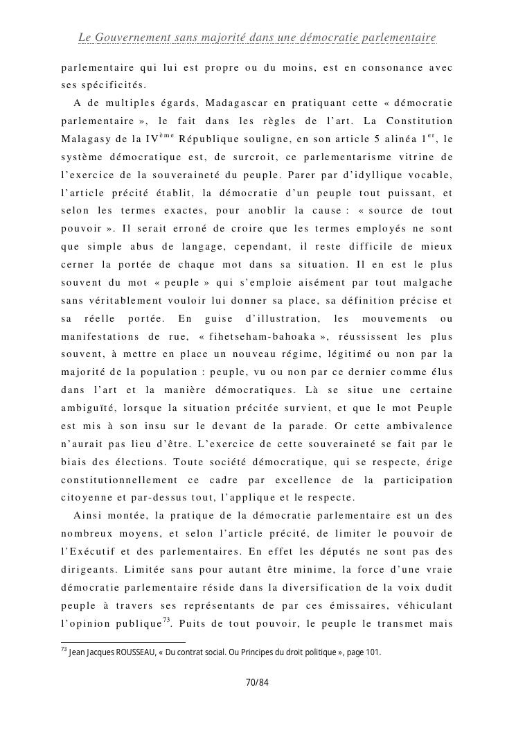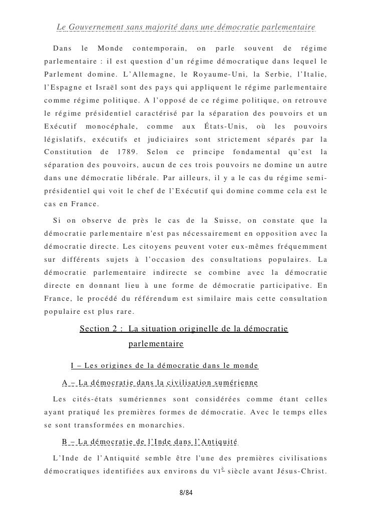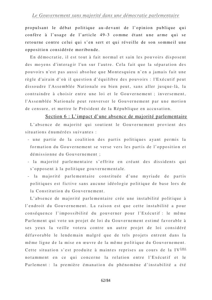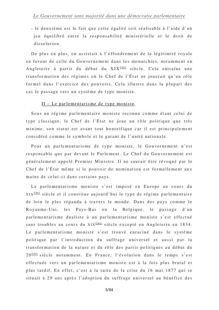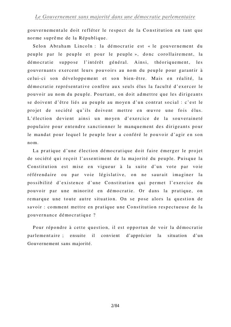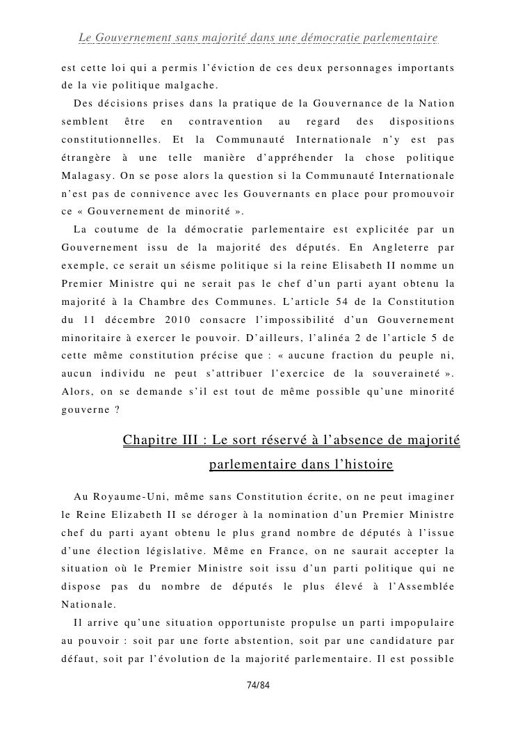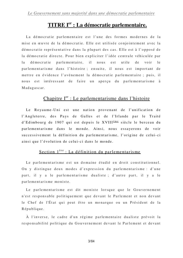le gouvernement sans majorité dans une démocratie parlementaire