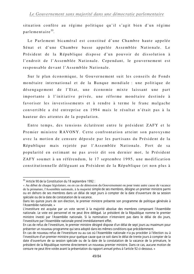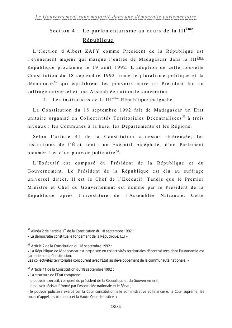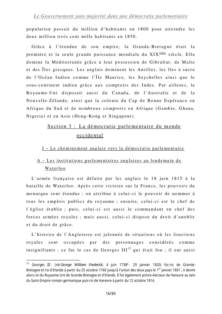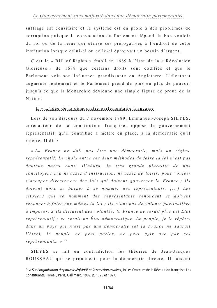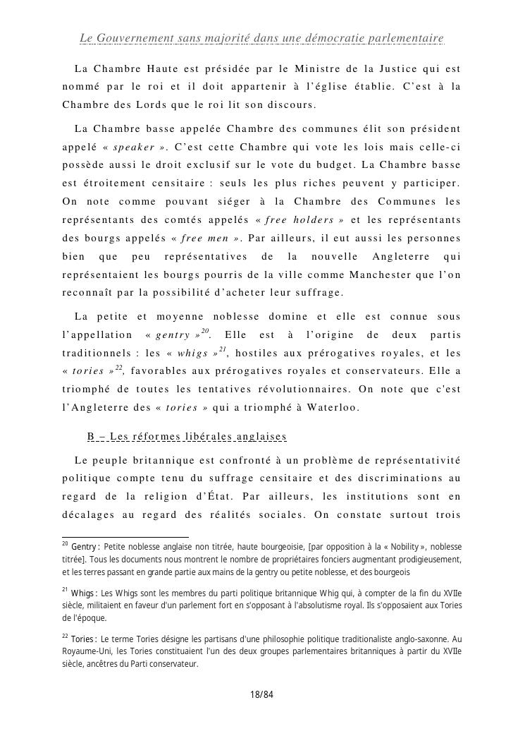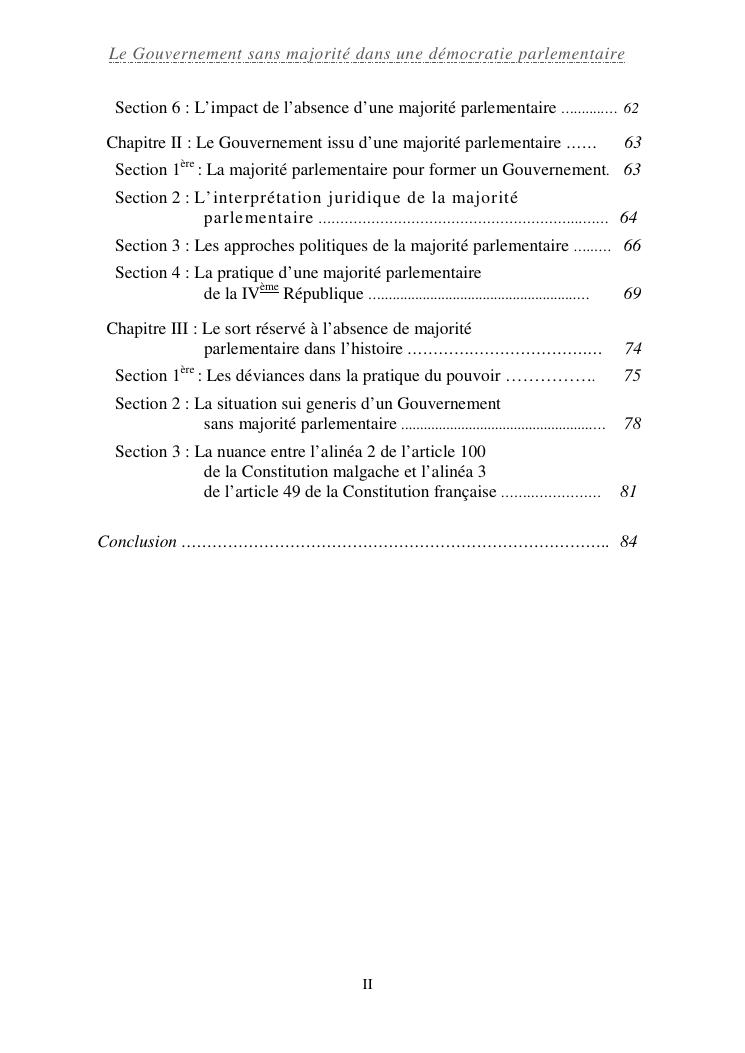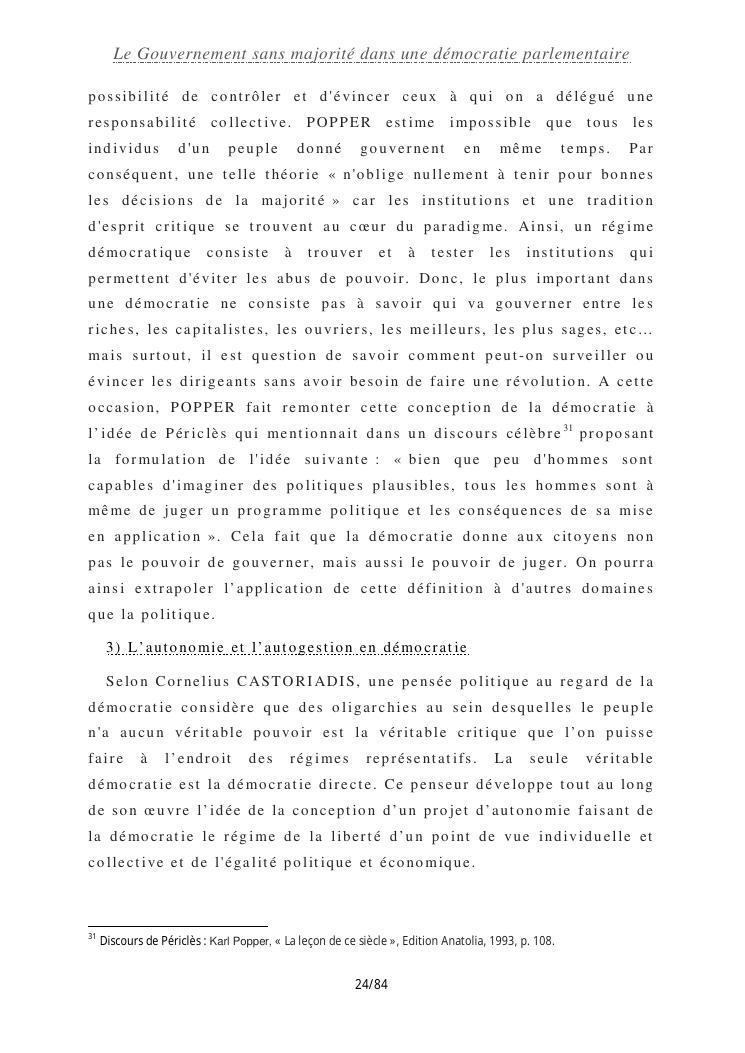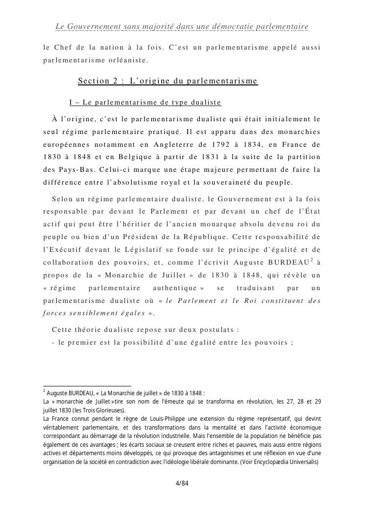 le gouvernement sans majorité dans une démocratie parlementaire