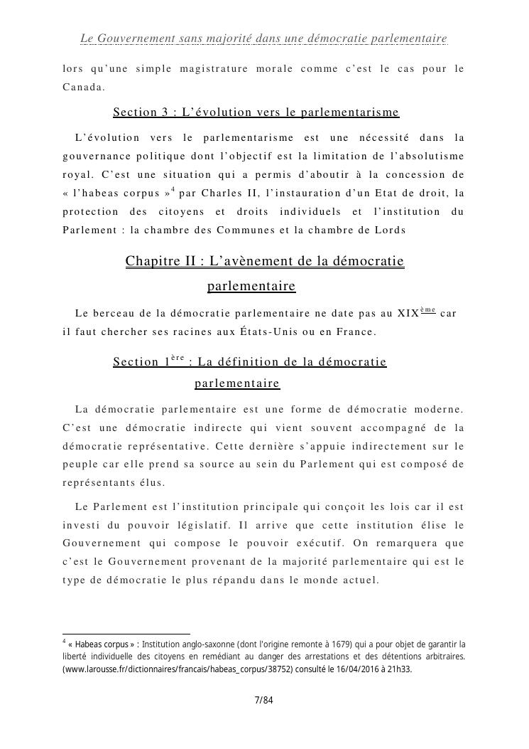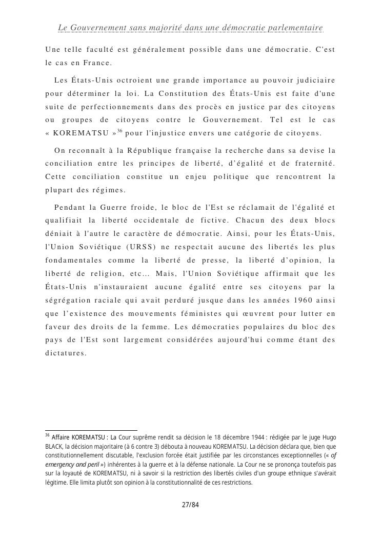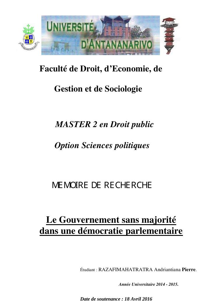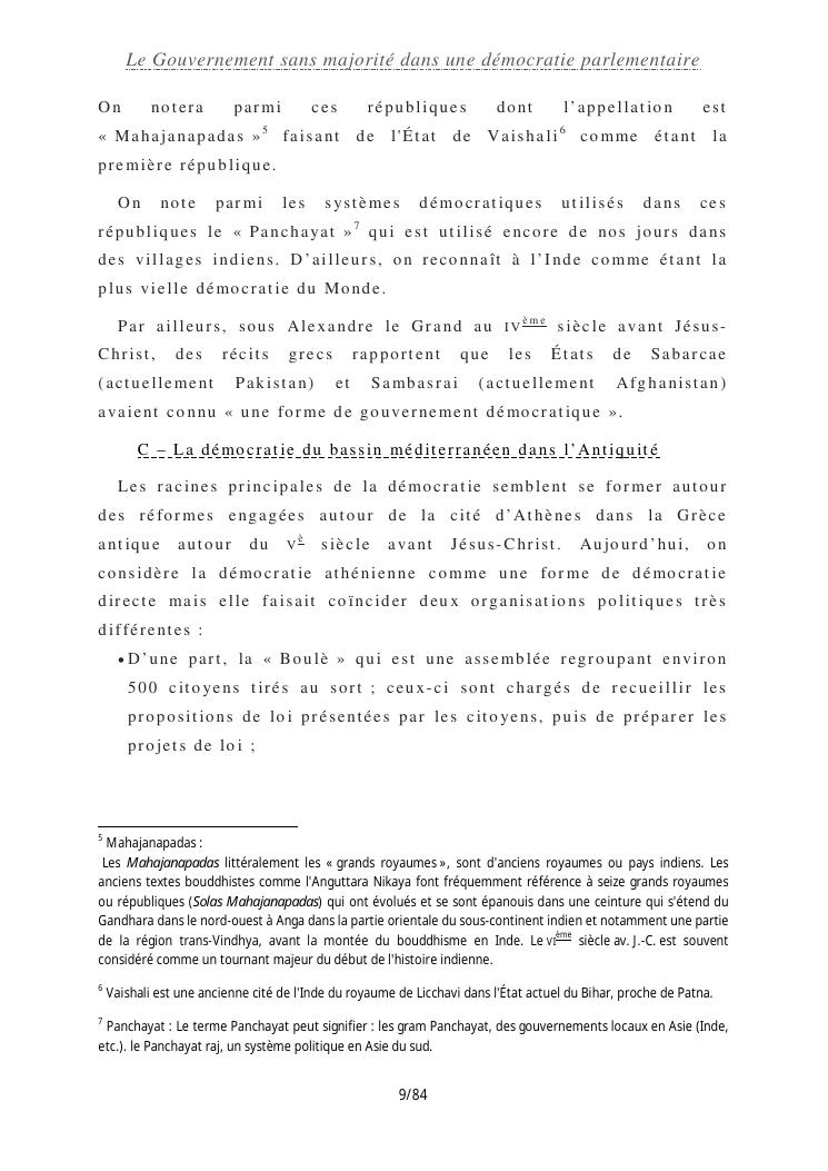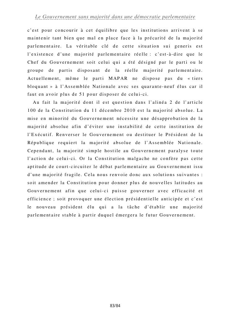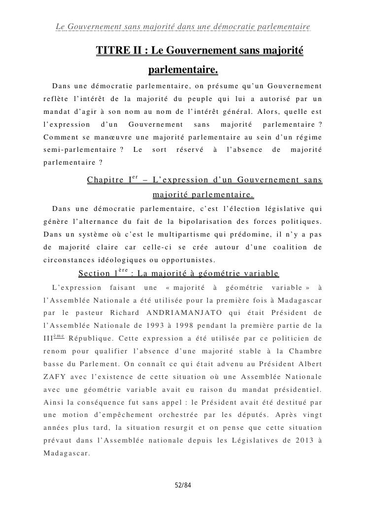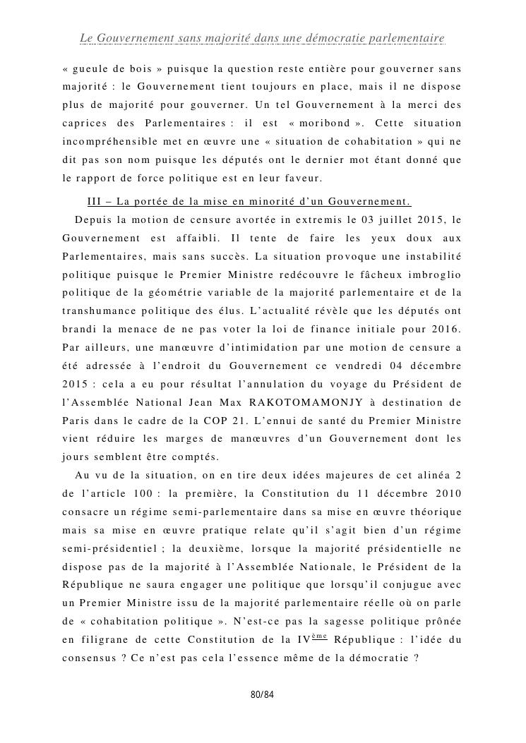 le gouvernement sans majorité dans une démocratie parlementaire