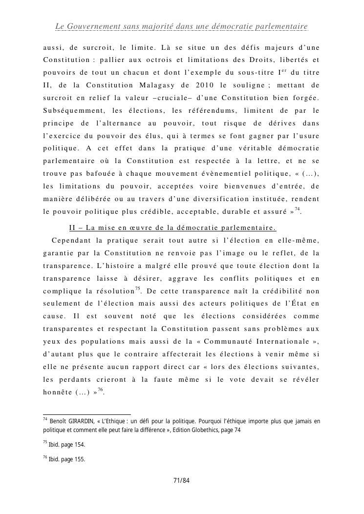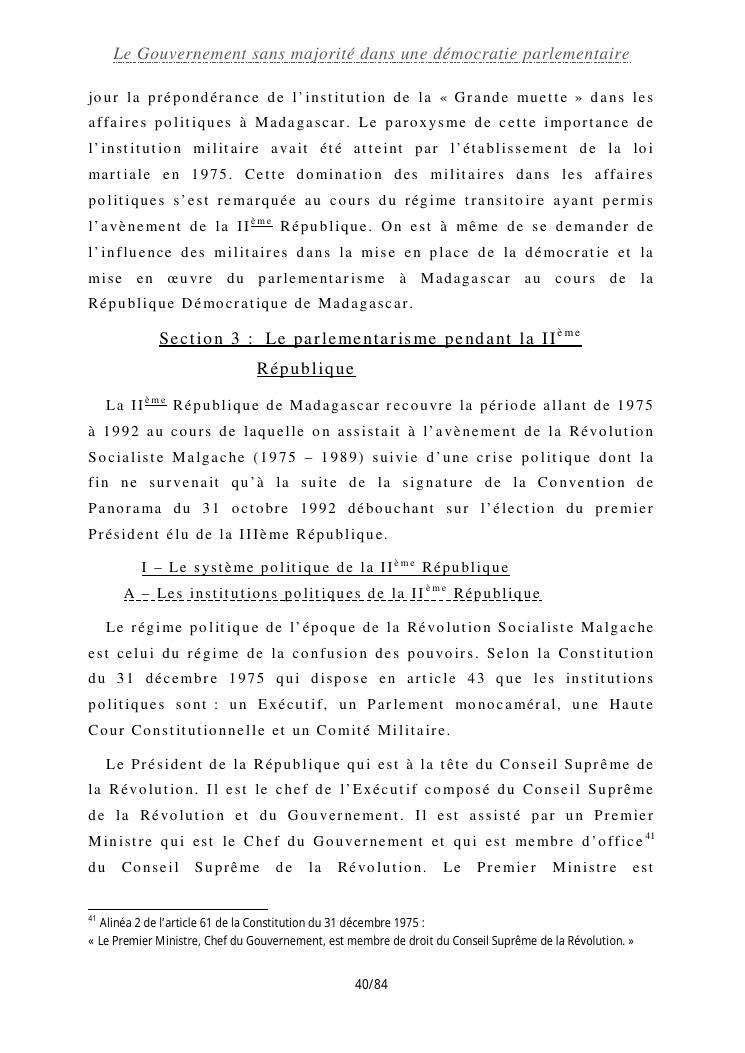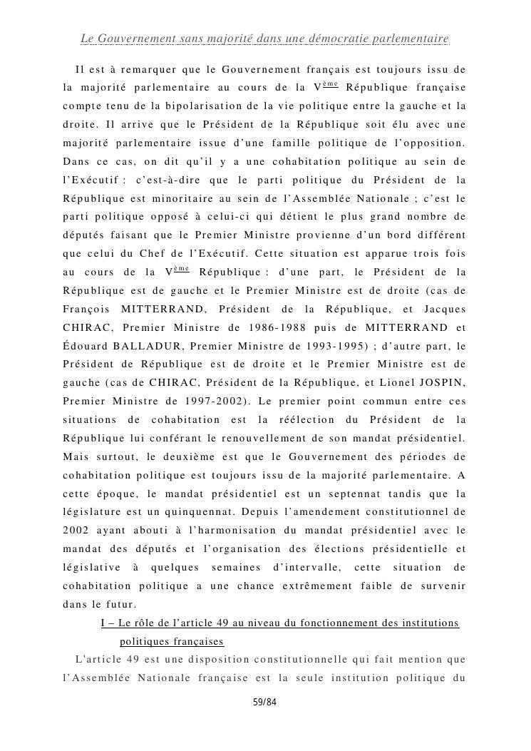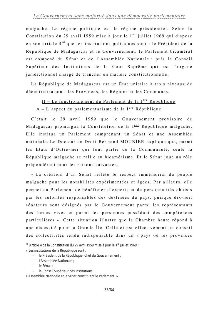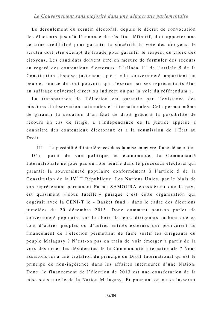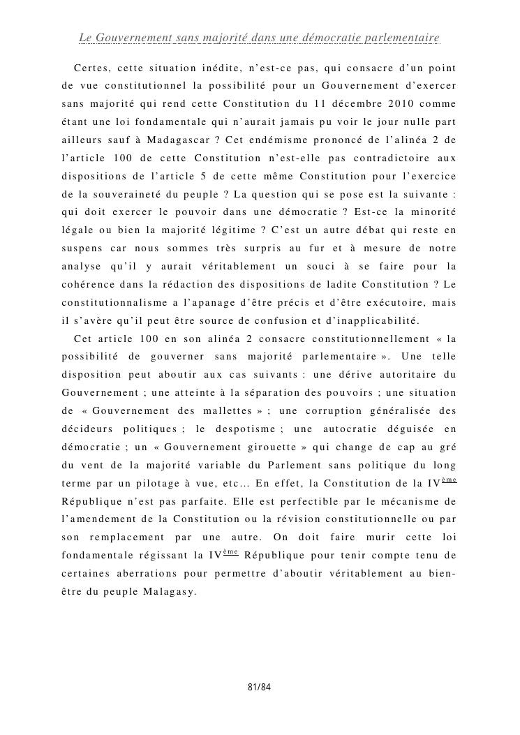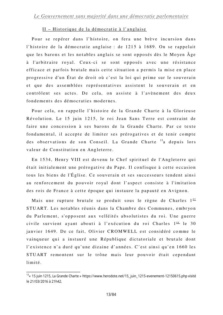 le gouvernement sans majorité dans une démocratie parlementaire