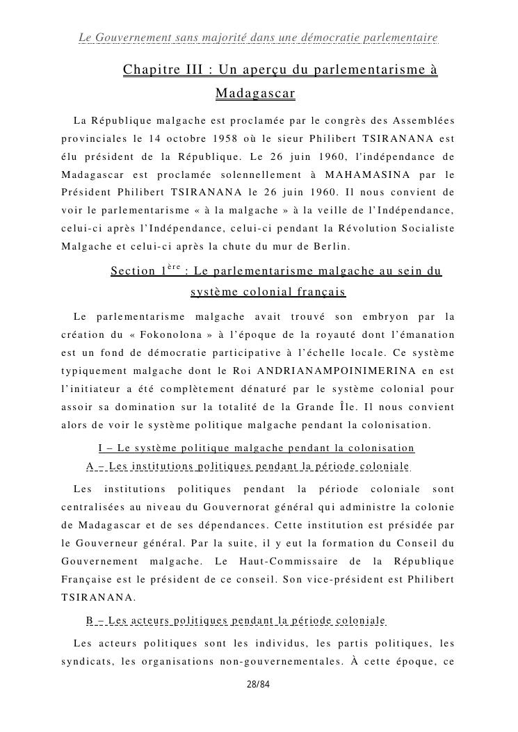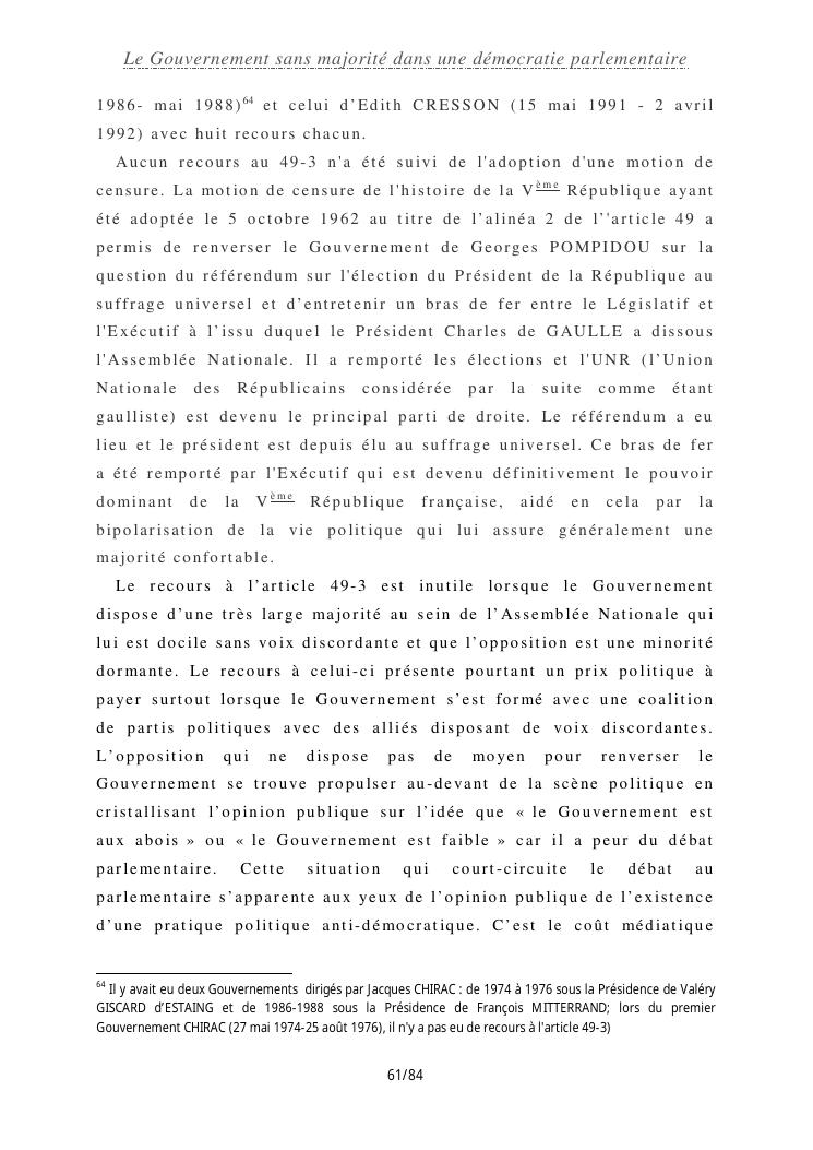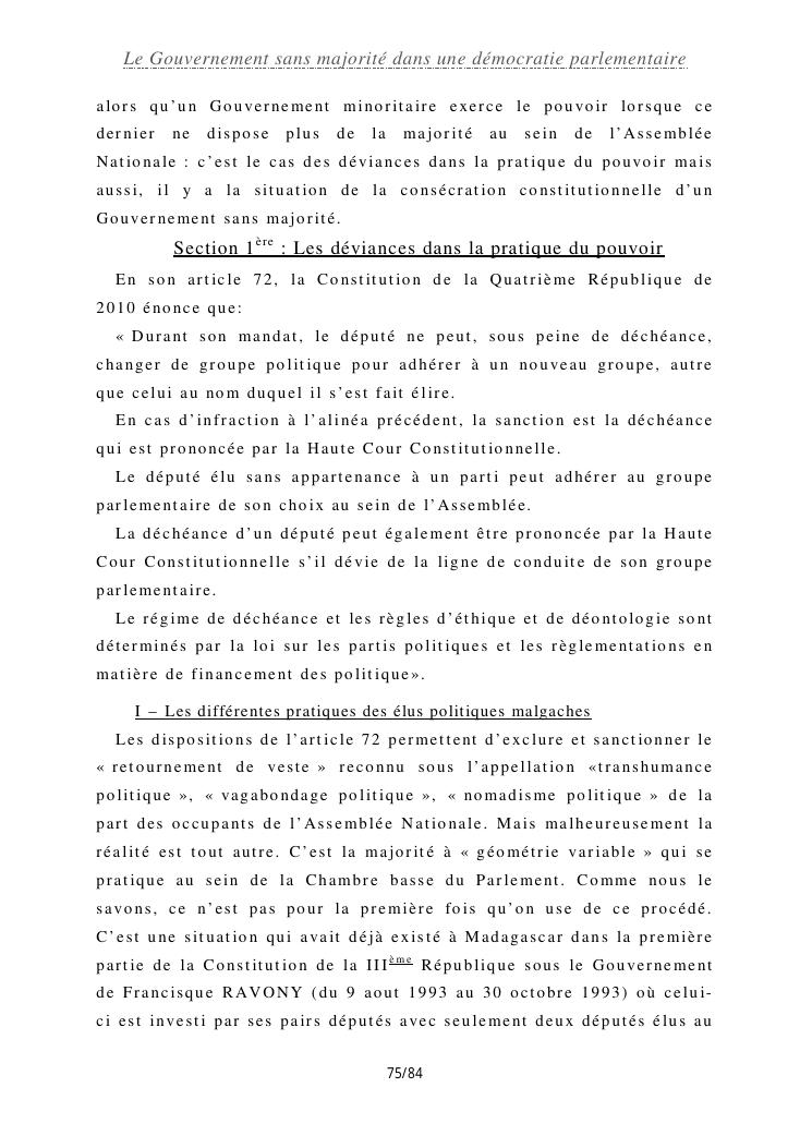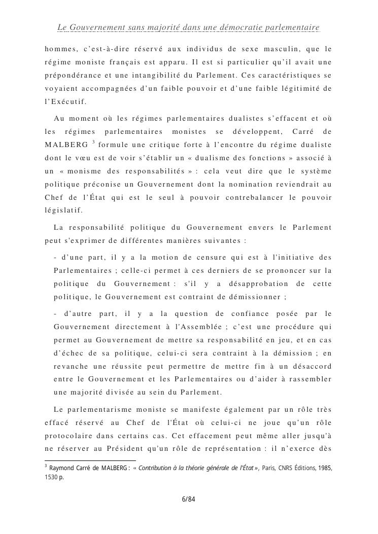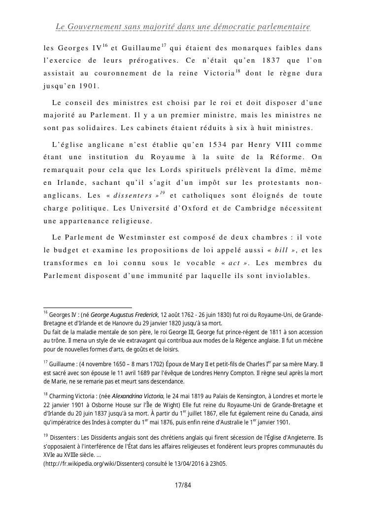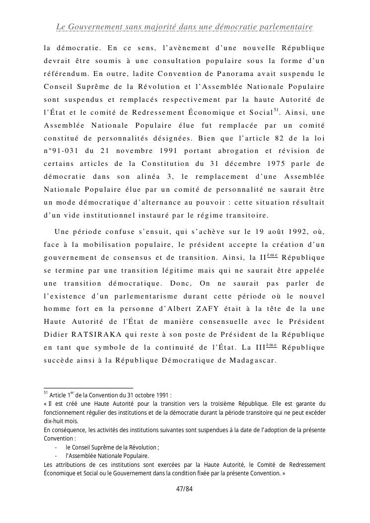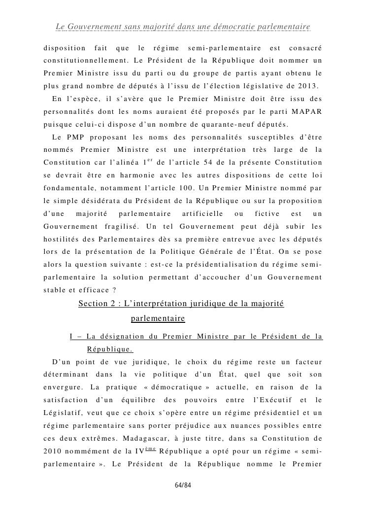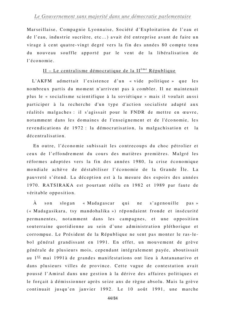 le gouvernement sans majorité dans une démocratie parlementaire