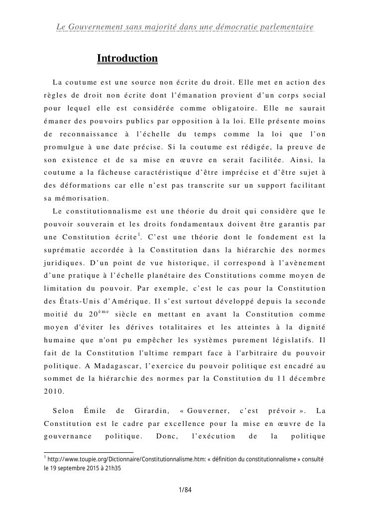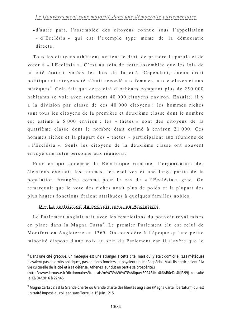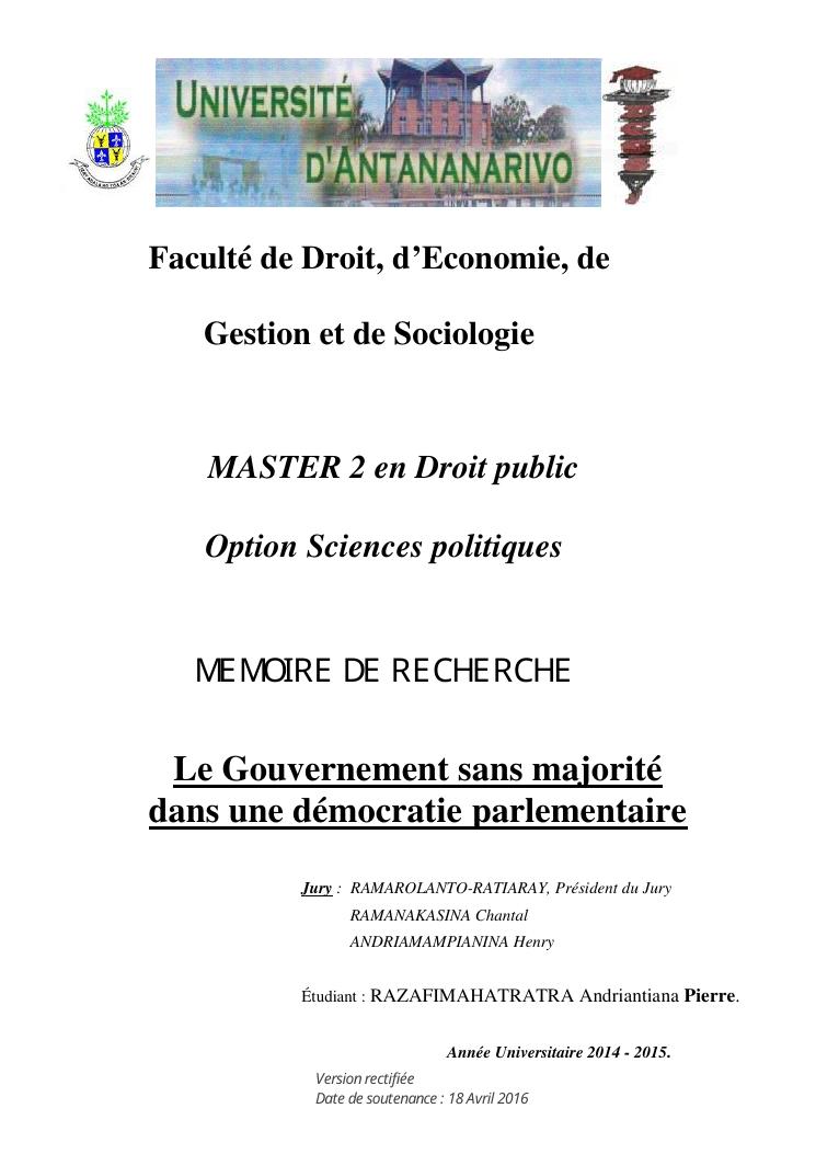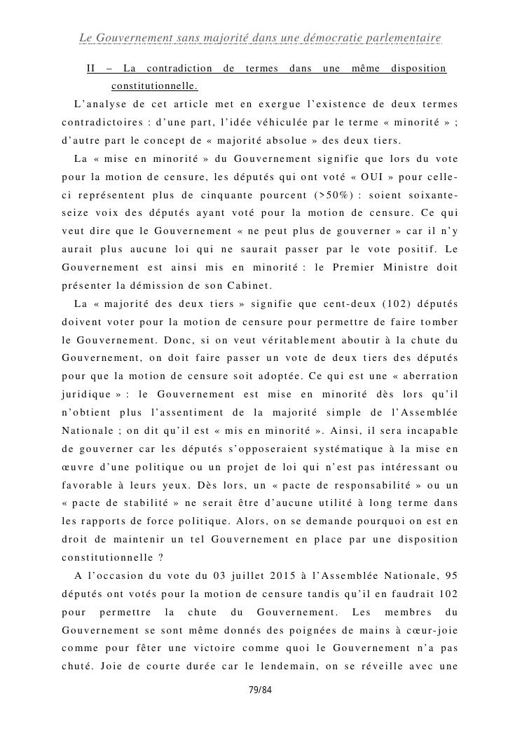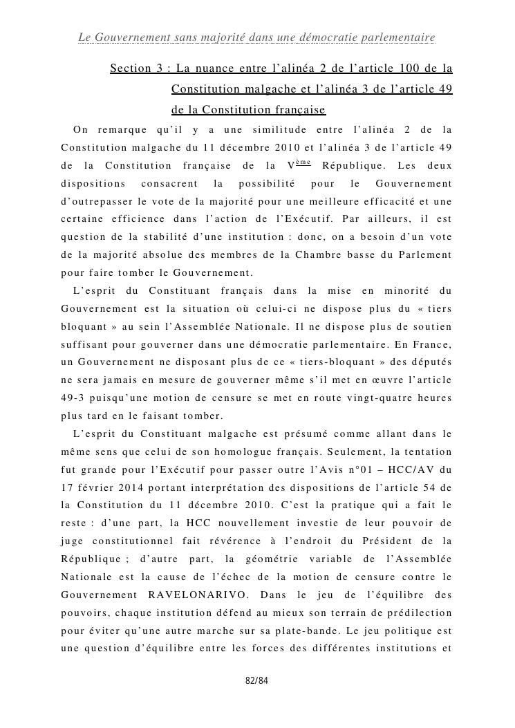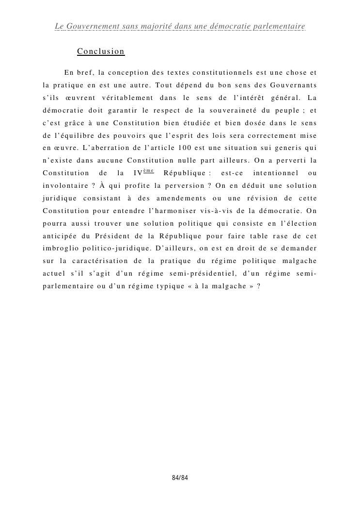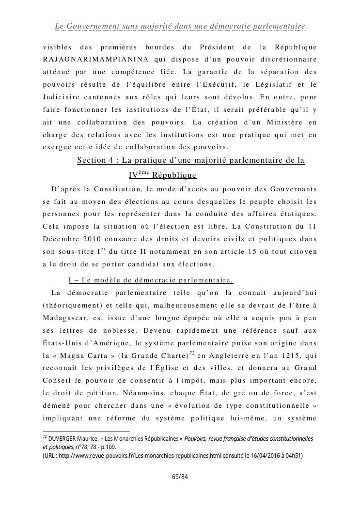 le gouvernement sans majorité dans une démocratie parlementaire