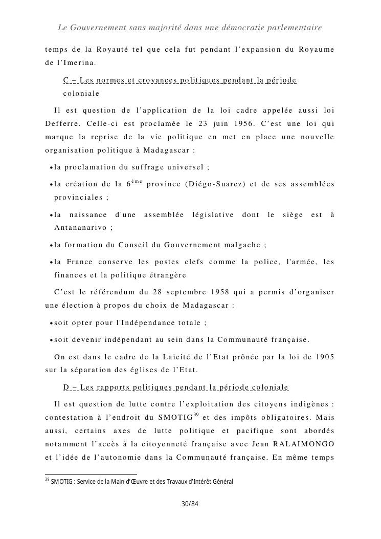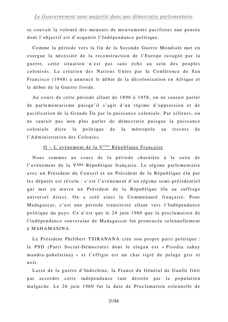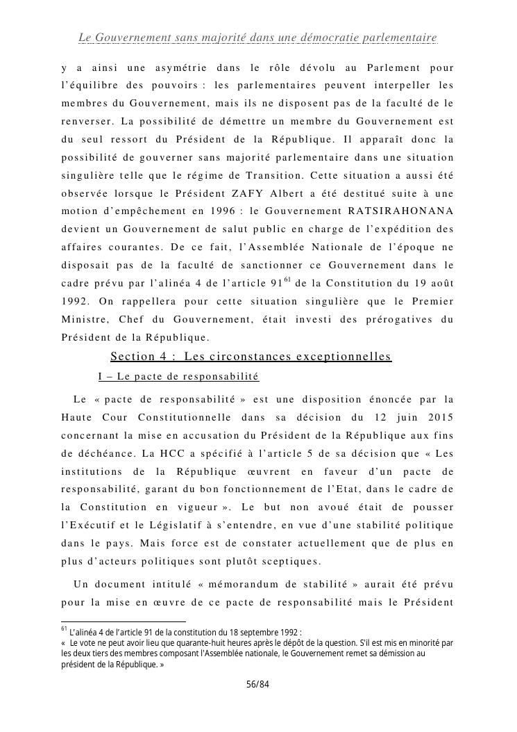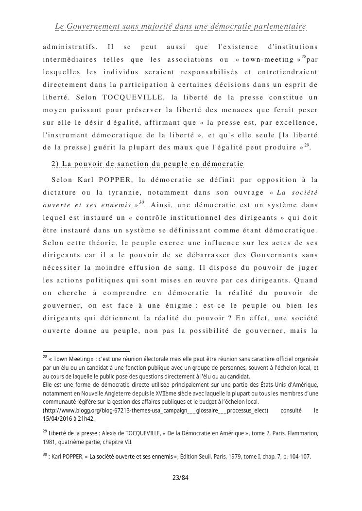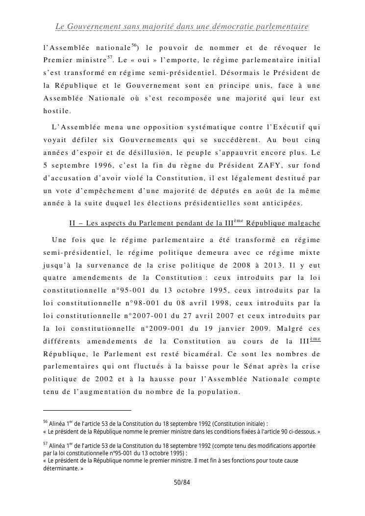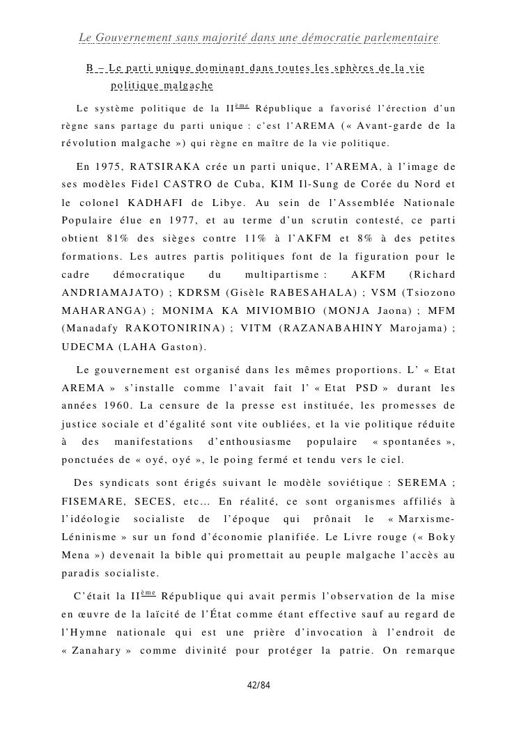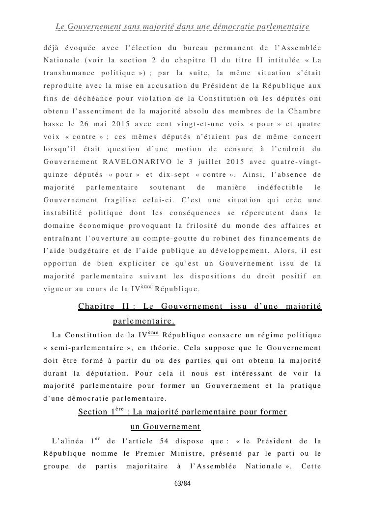 le gouvernement sans majorité dans une démocratie parlementaire