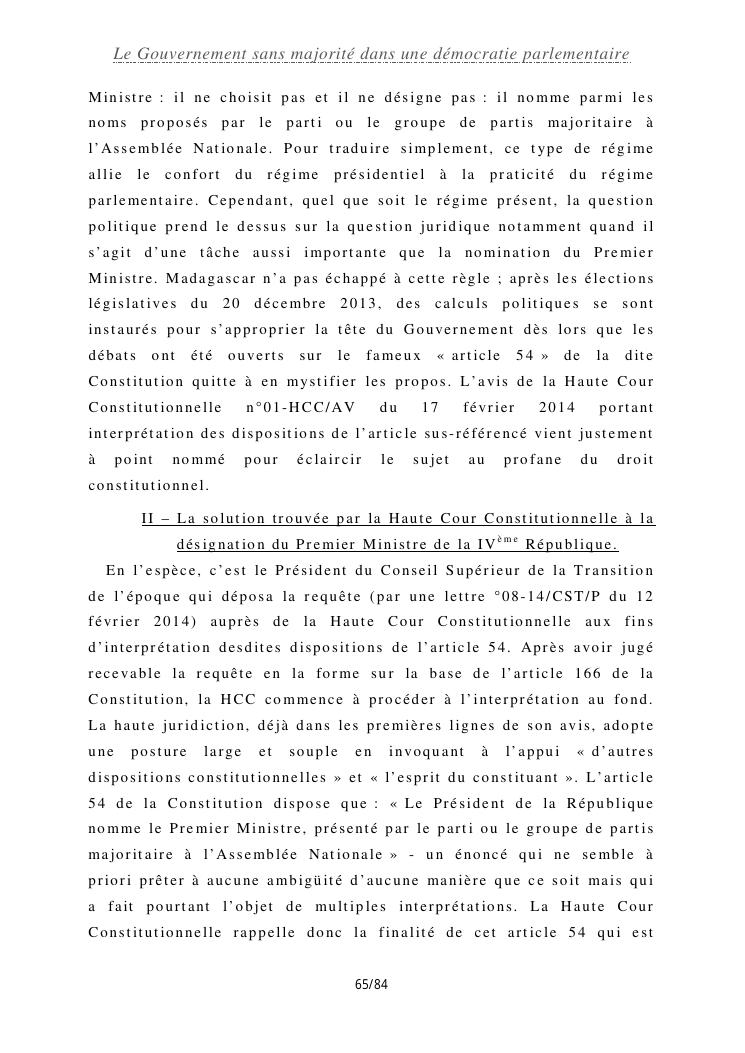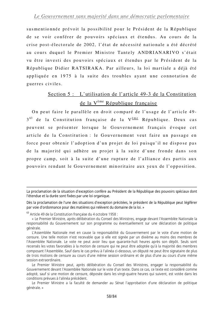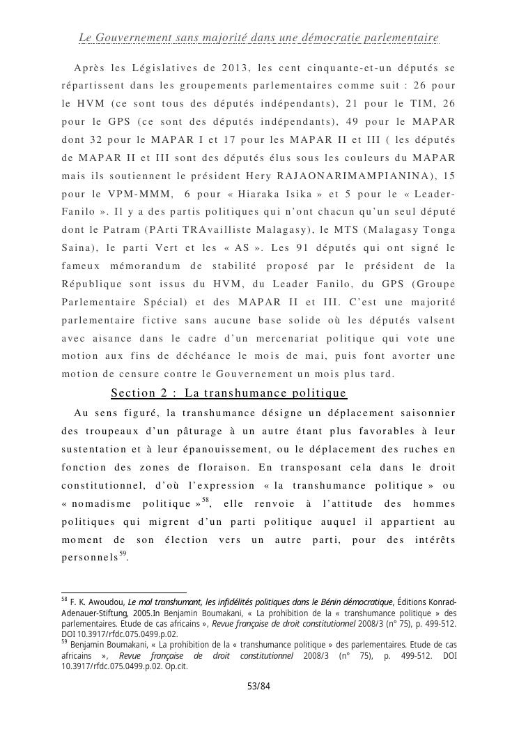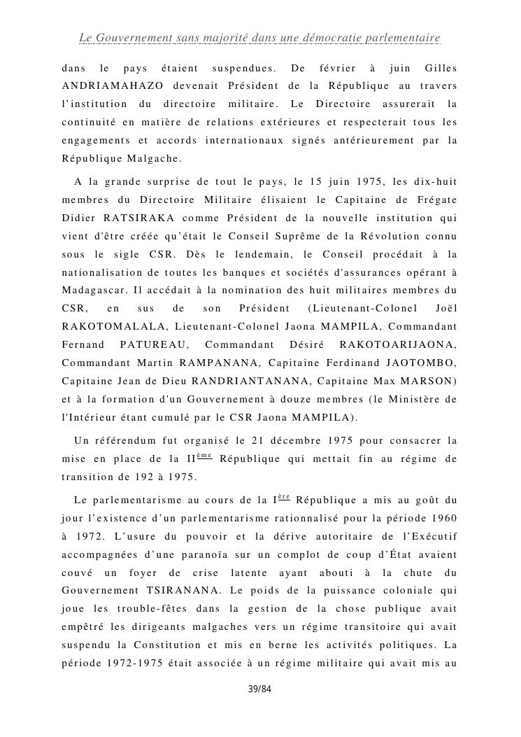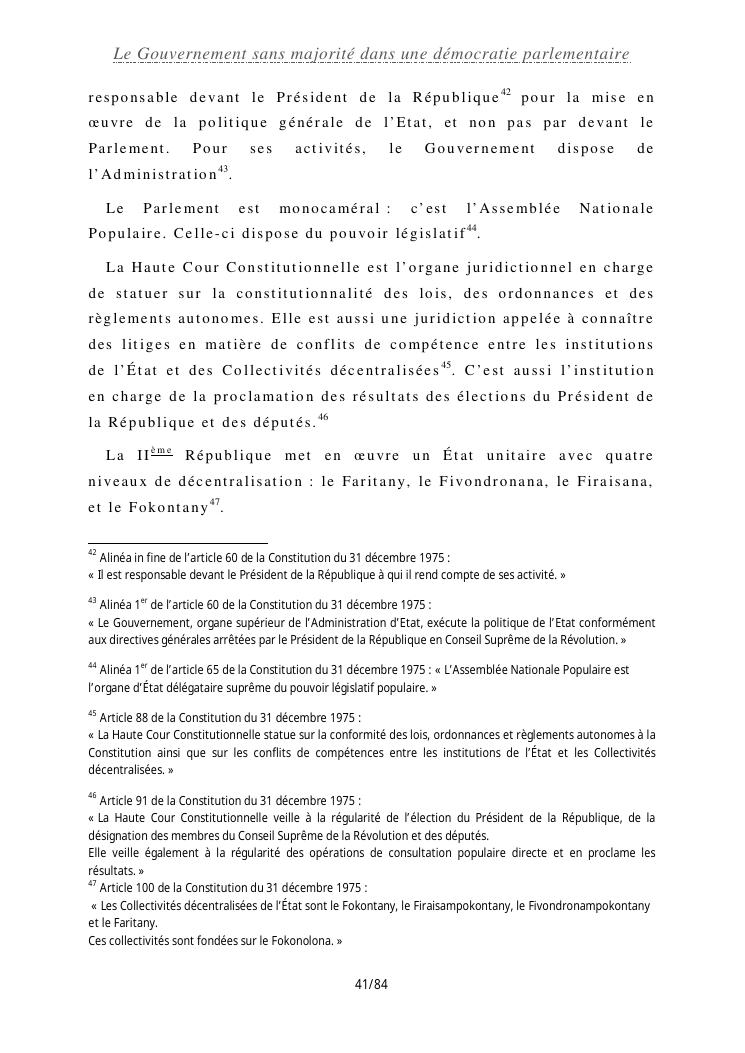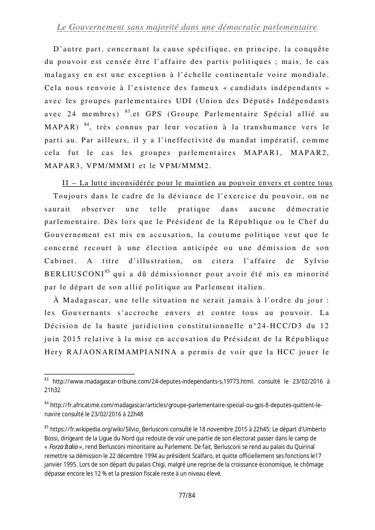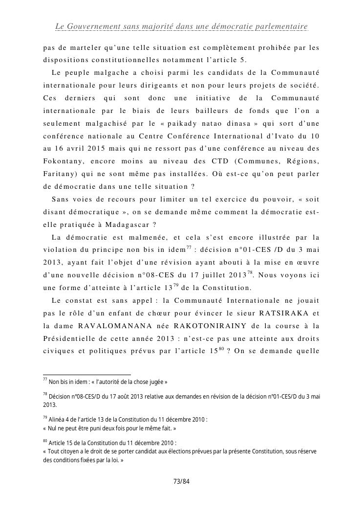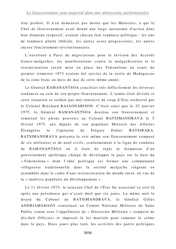 le gouvernement sans majorité dans une démocratie parlementaire