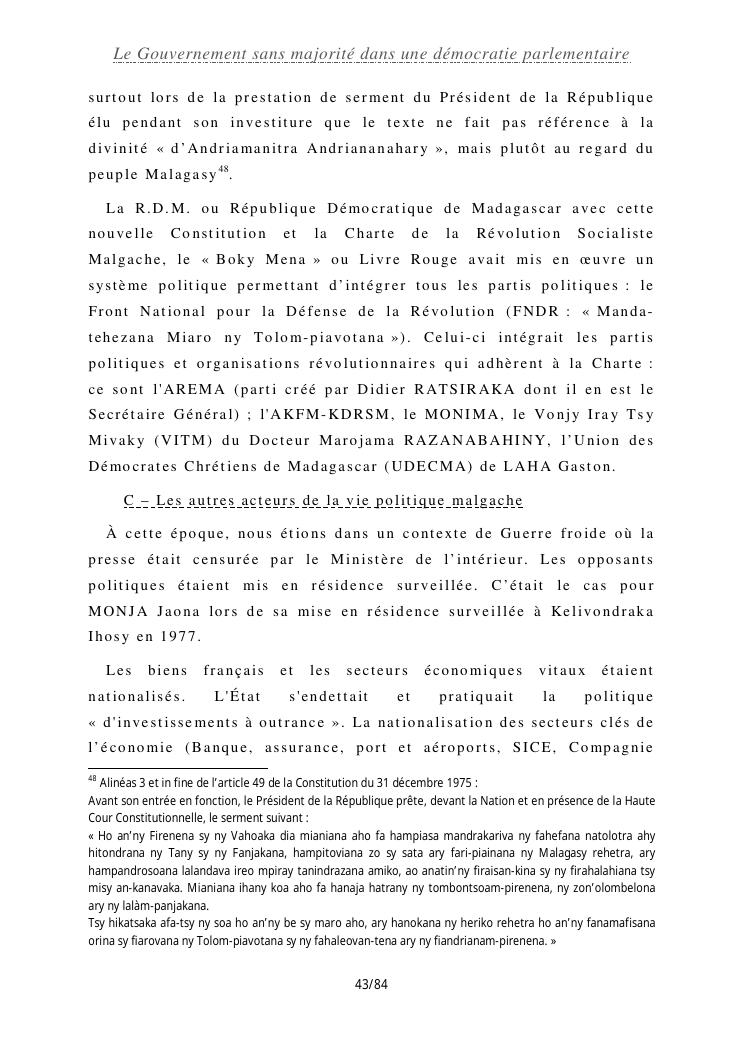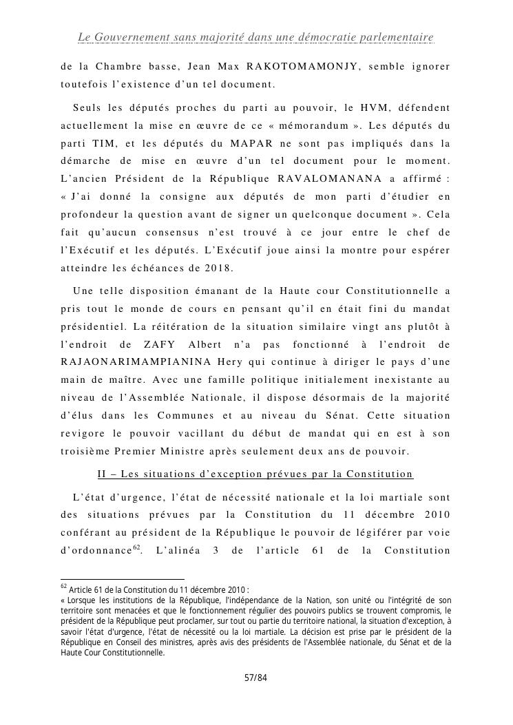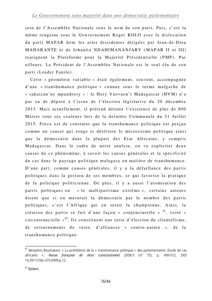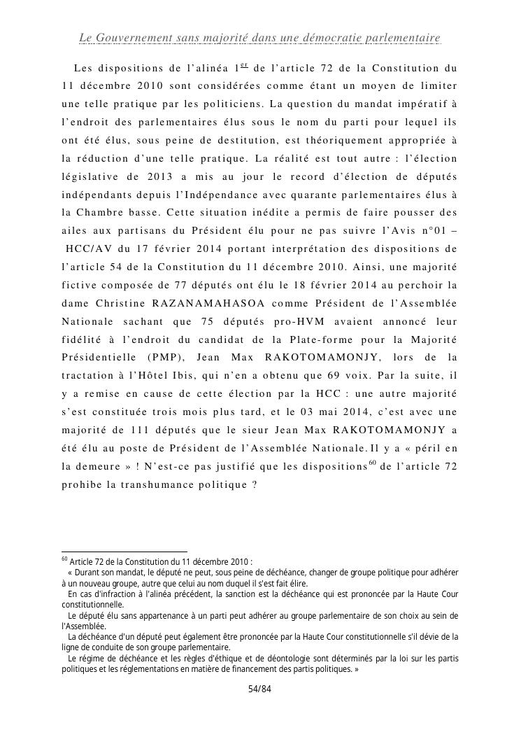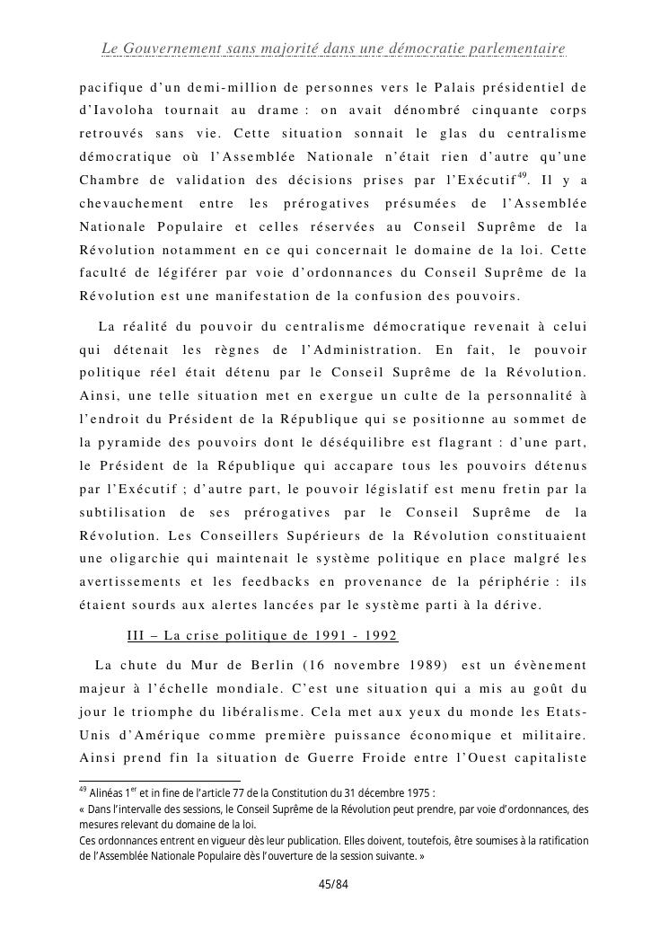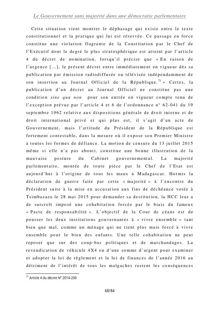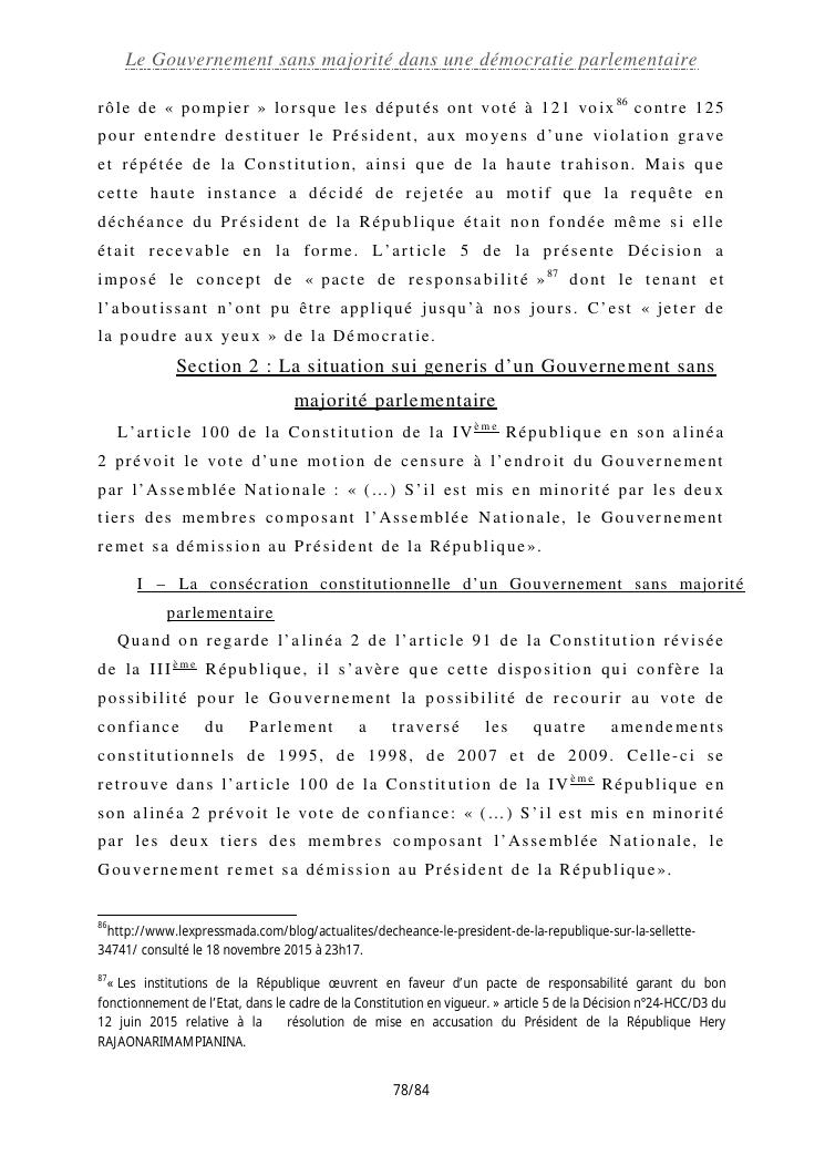 le gouvernement sans majorité dans une démocratie parlementaire