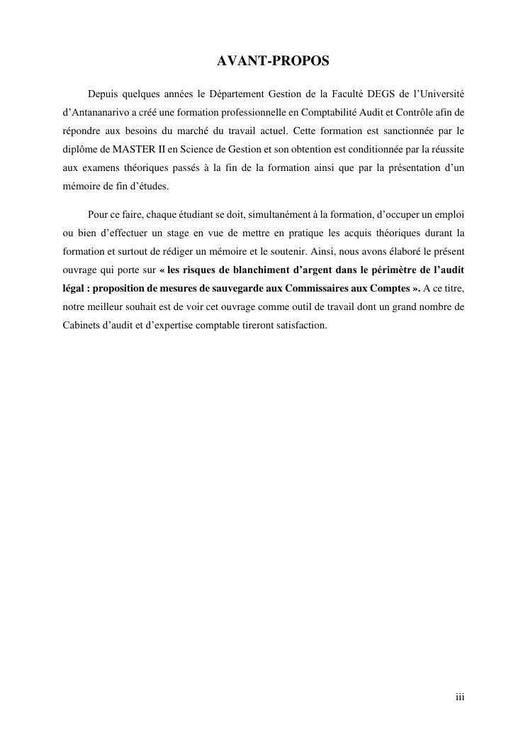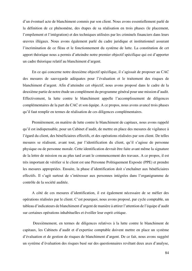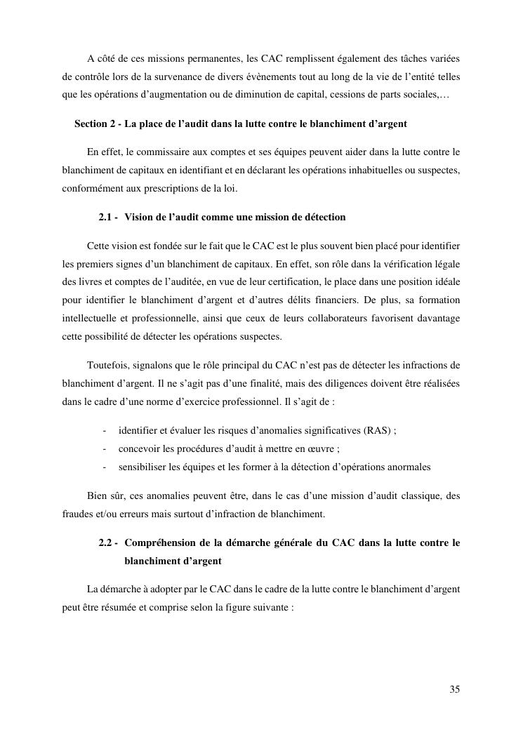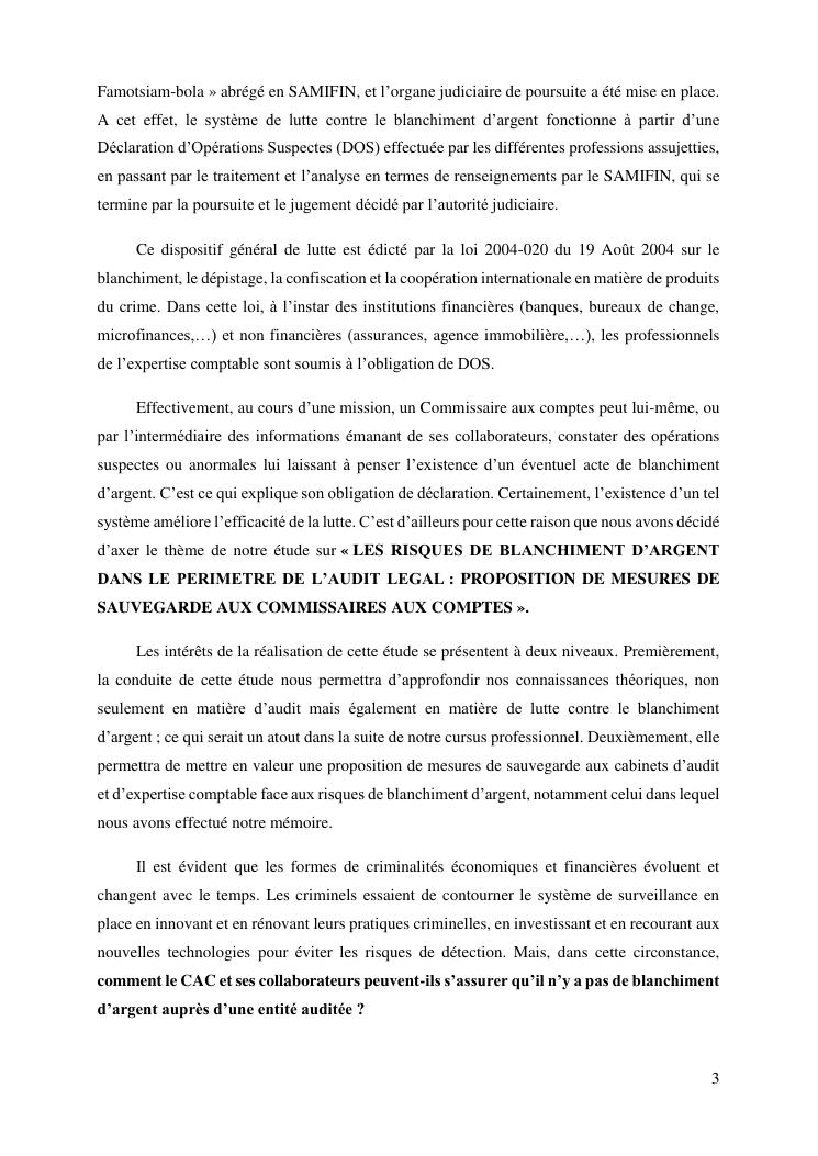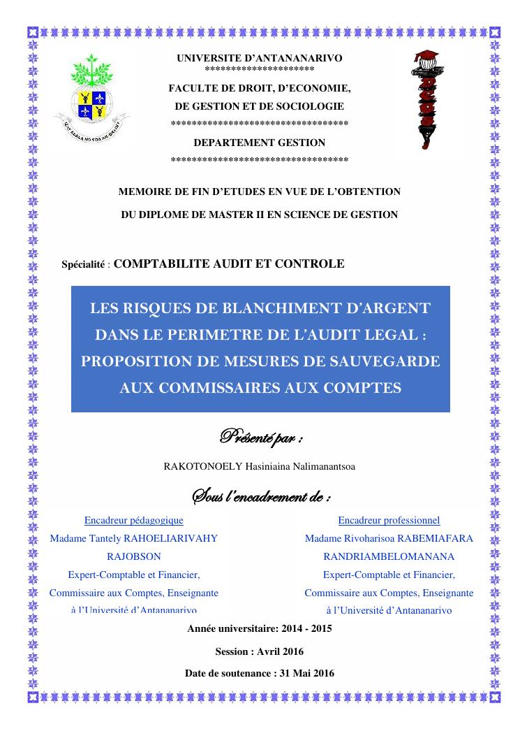les risques de blanchiment d'argent dans le perimetre de l'audit legal : proposition de mesures de sauvegarde aux commissaires aux comptes