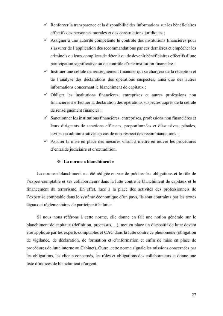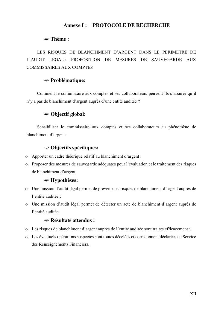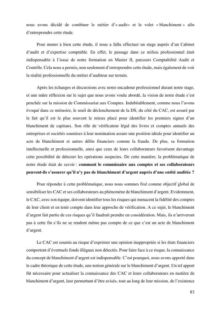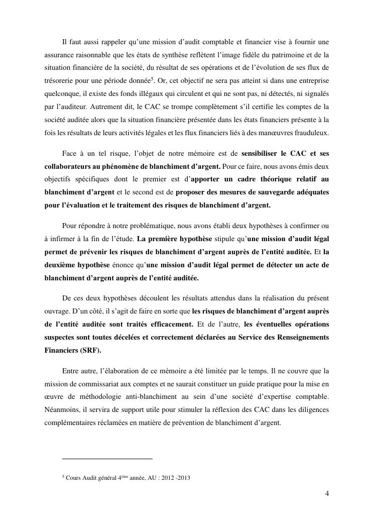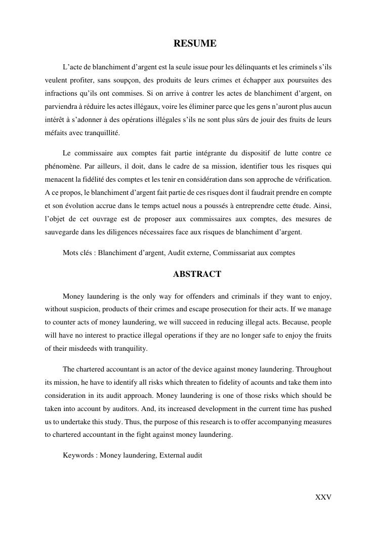 les risques de blanchiment d'argent dans le perimetre de l'audit legal : proposition de mesures de sauvegarde aux commissaires aux comptes