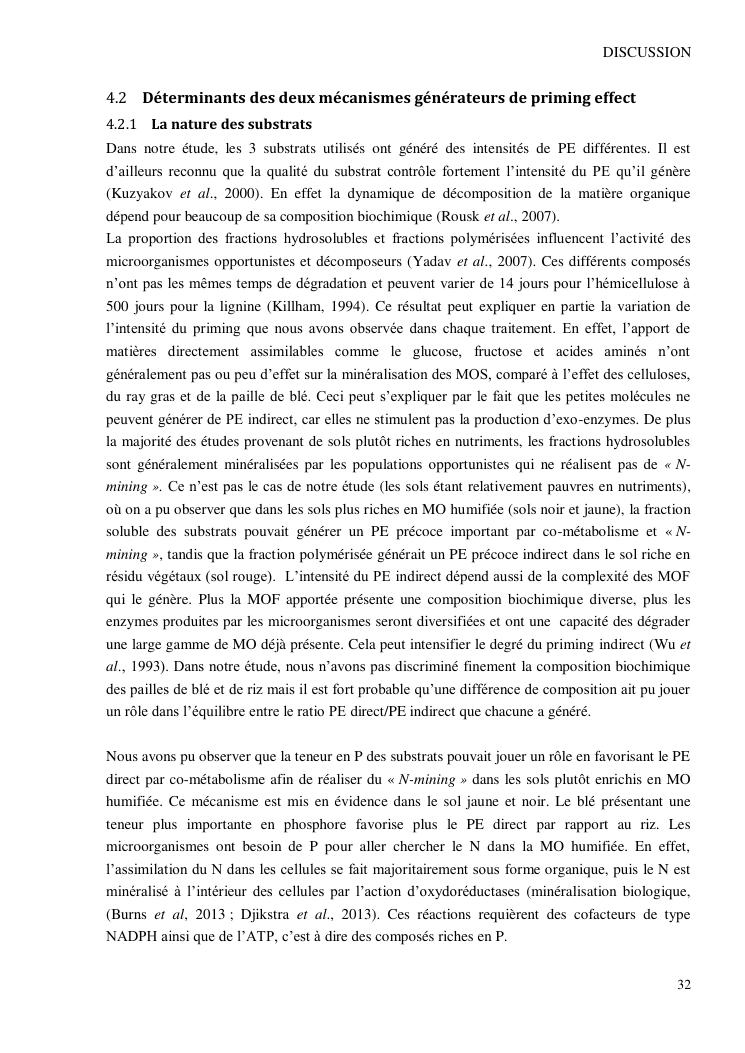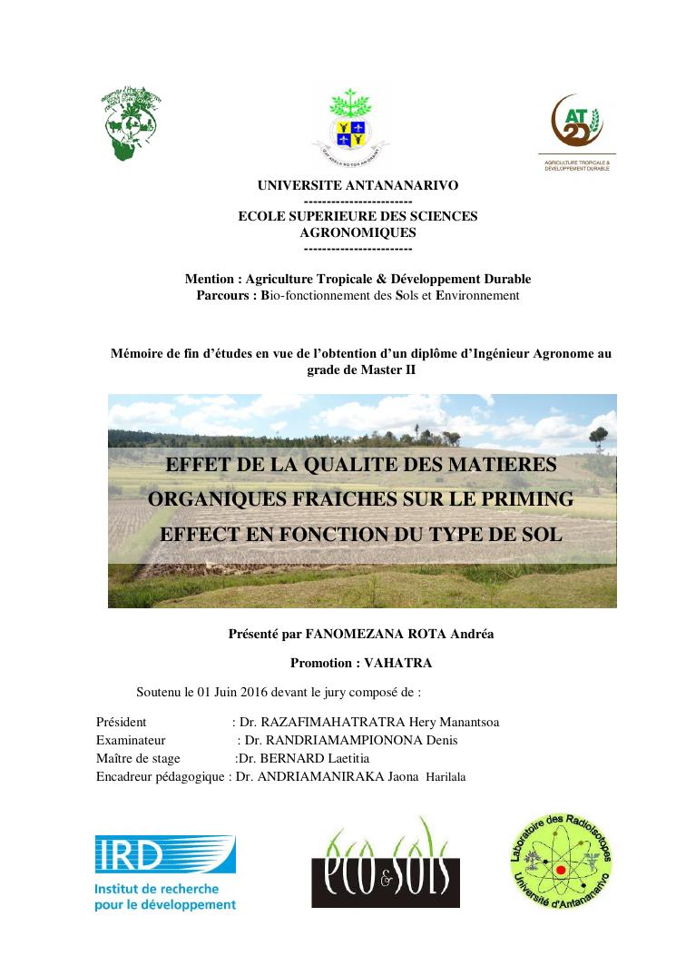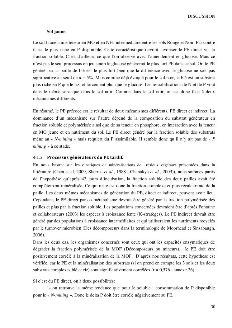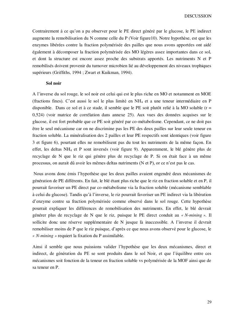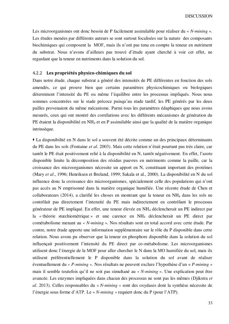effet de la qualite des matieres organiques fraiches sur le priming effect en fonction du type de sol