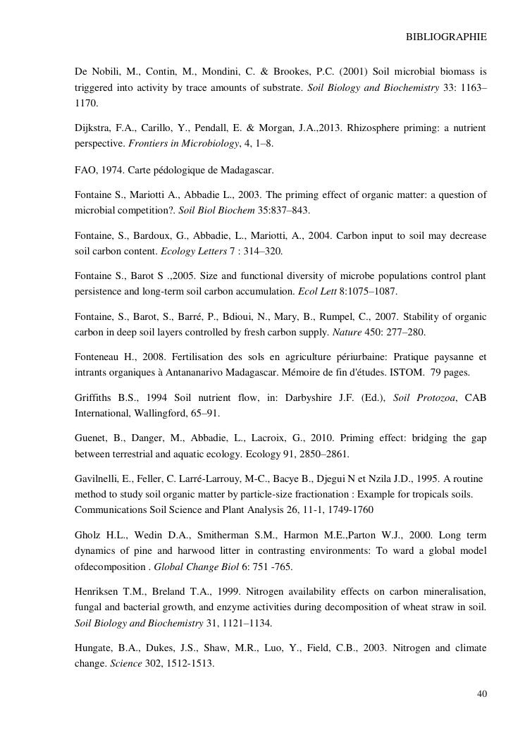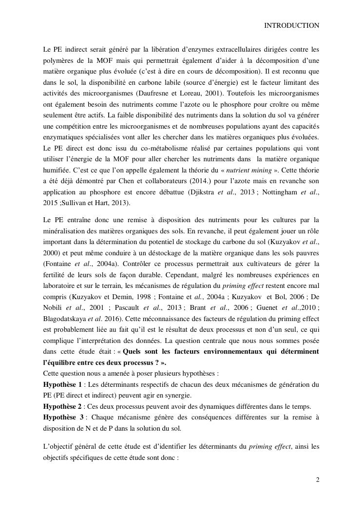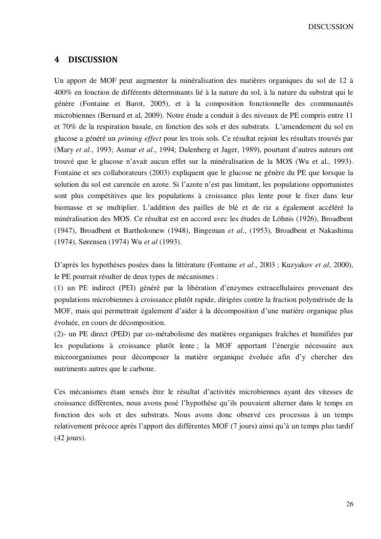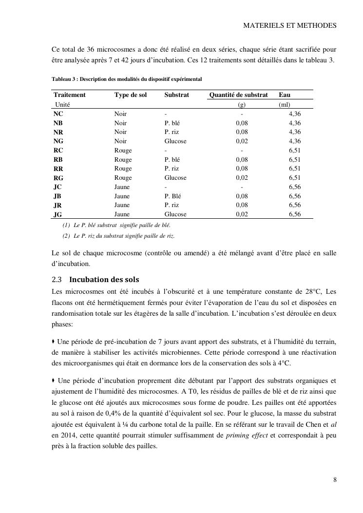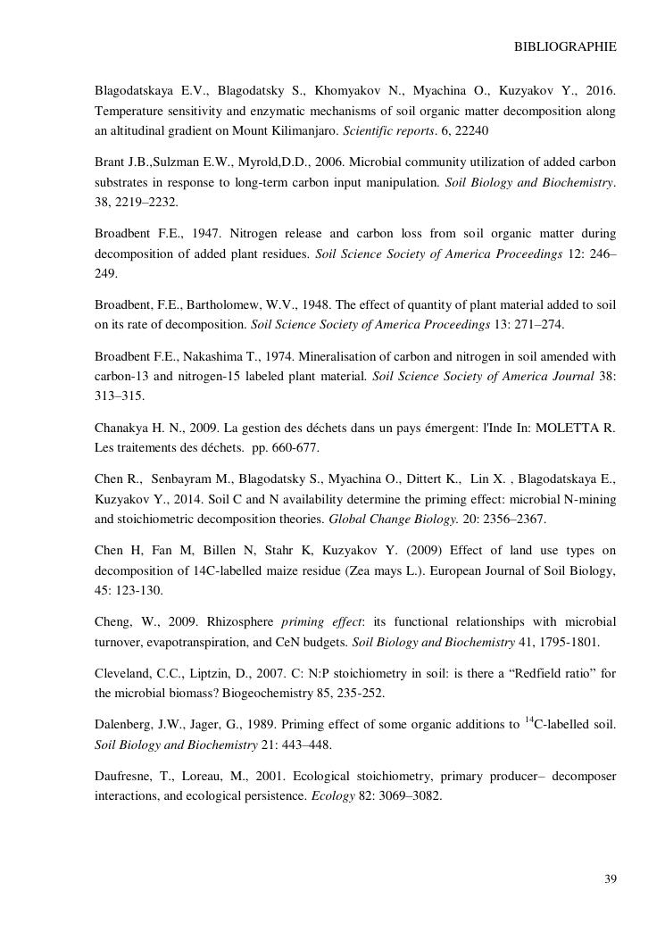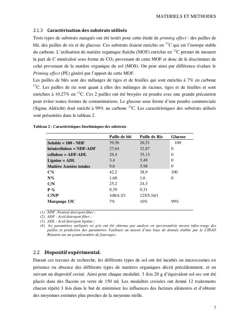 effet de la qualite des matieres organiques fraiches sur le priming effect en fonction du type de sol