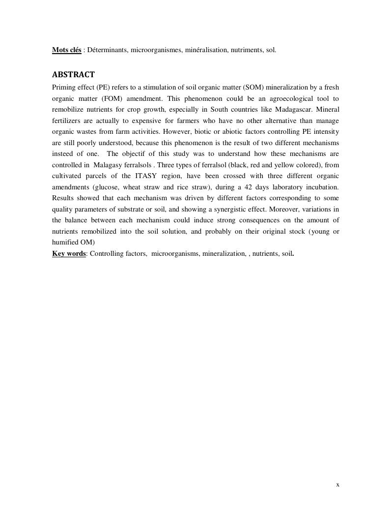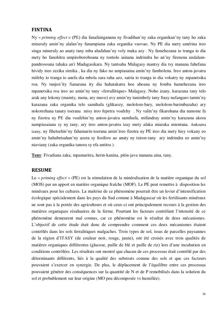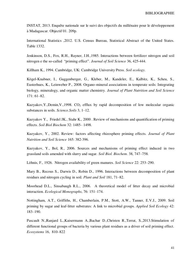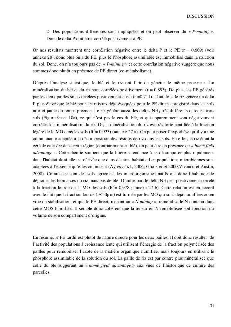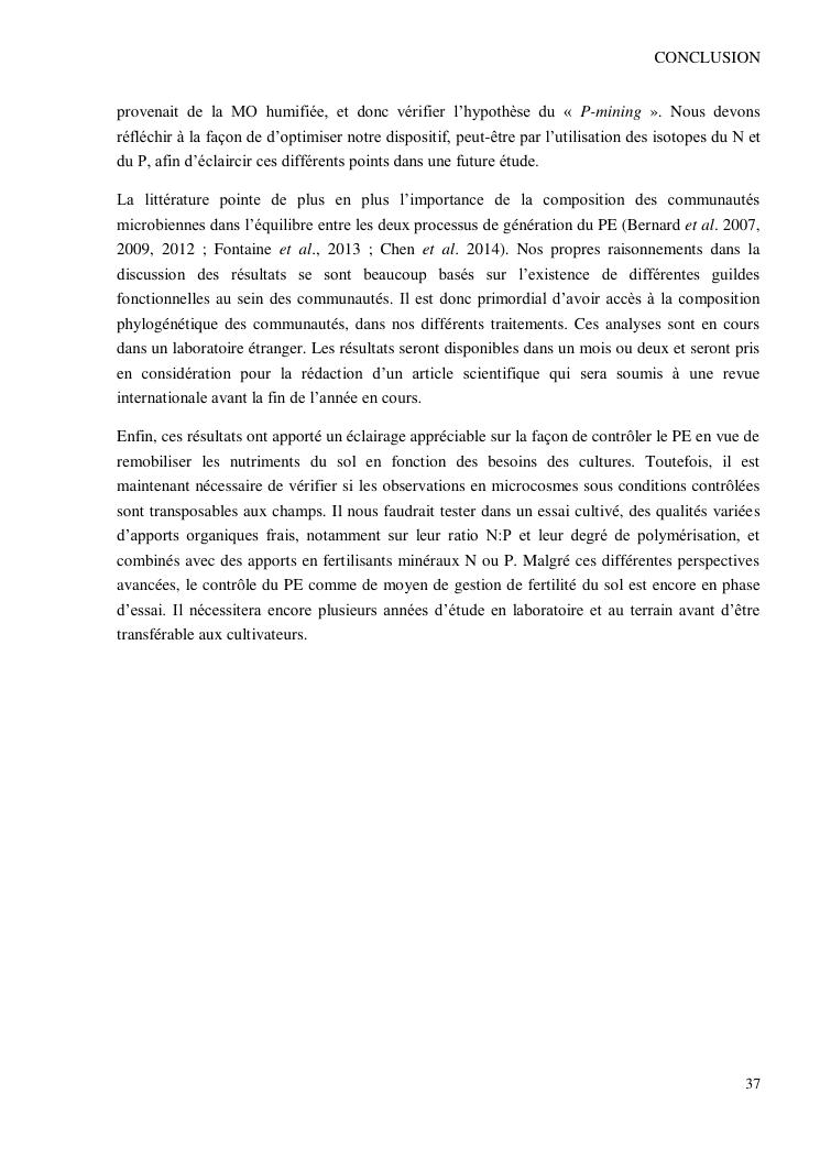 effet de la qualite des matieres organiques fraiches sur le priming effect en fonction du type de sol
