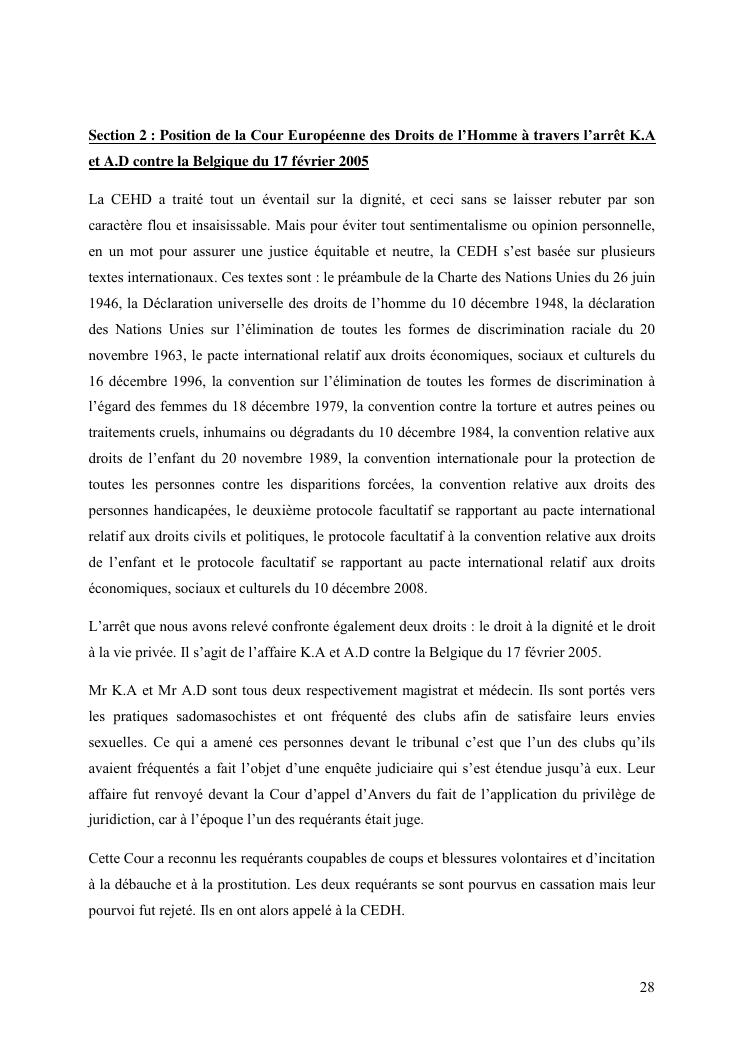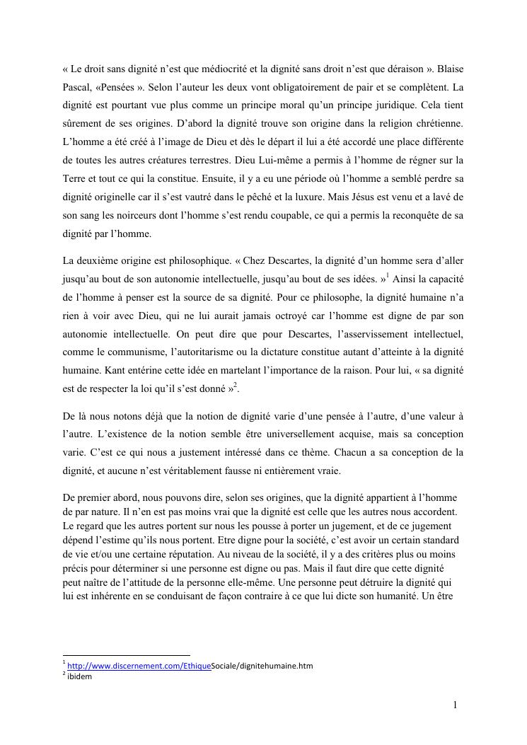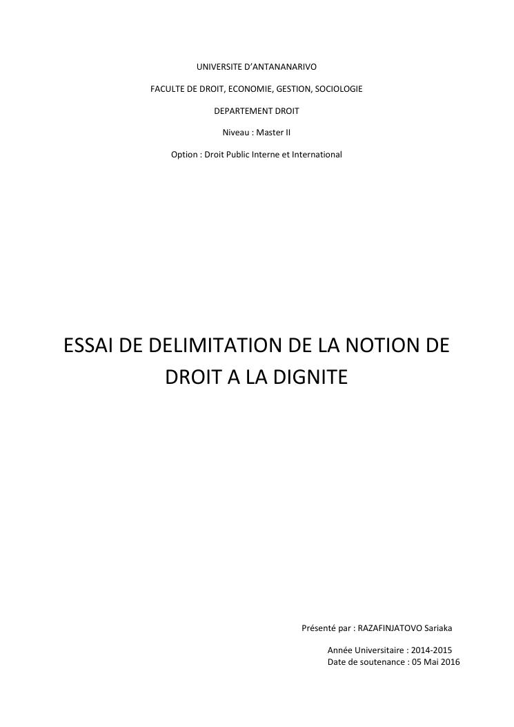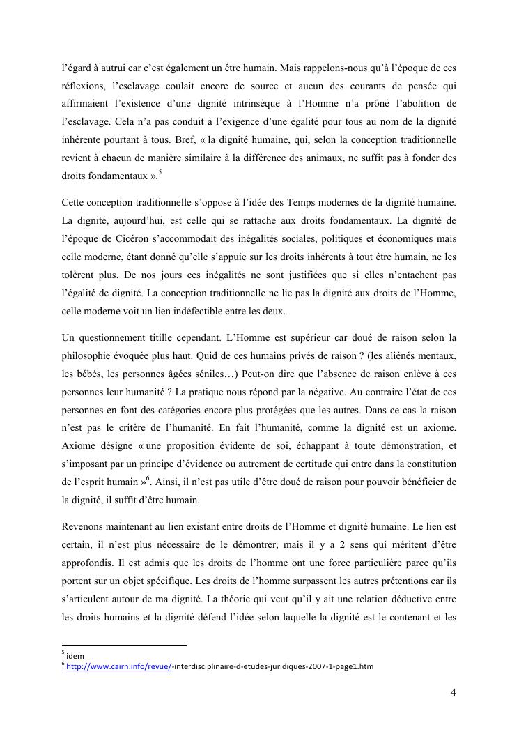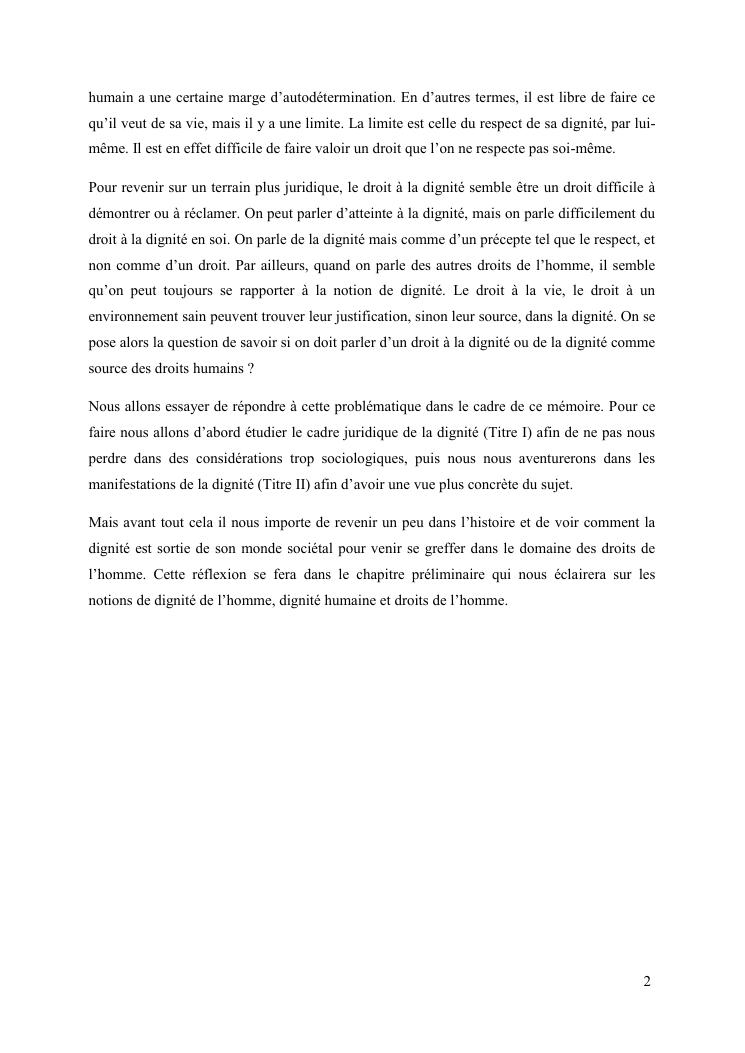 essai de delimitation de la notion de droit a la dignite
