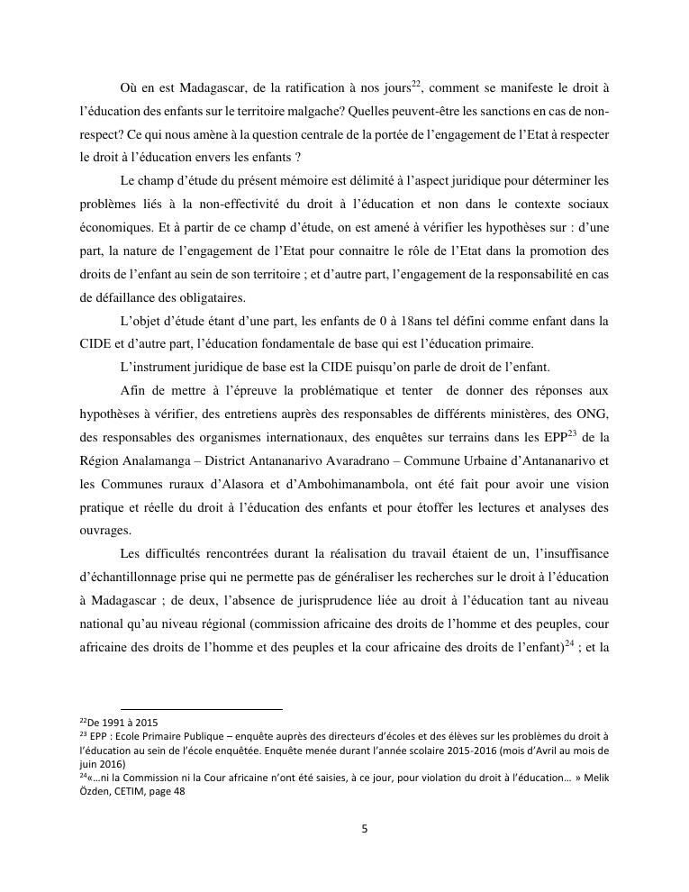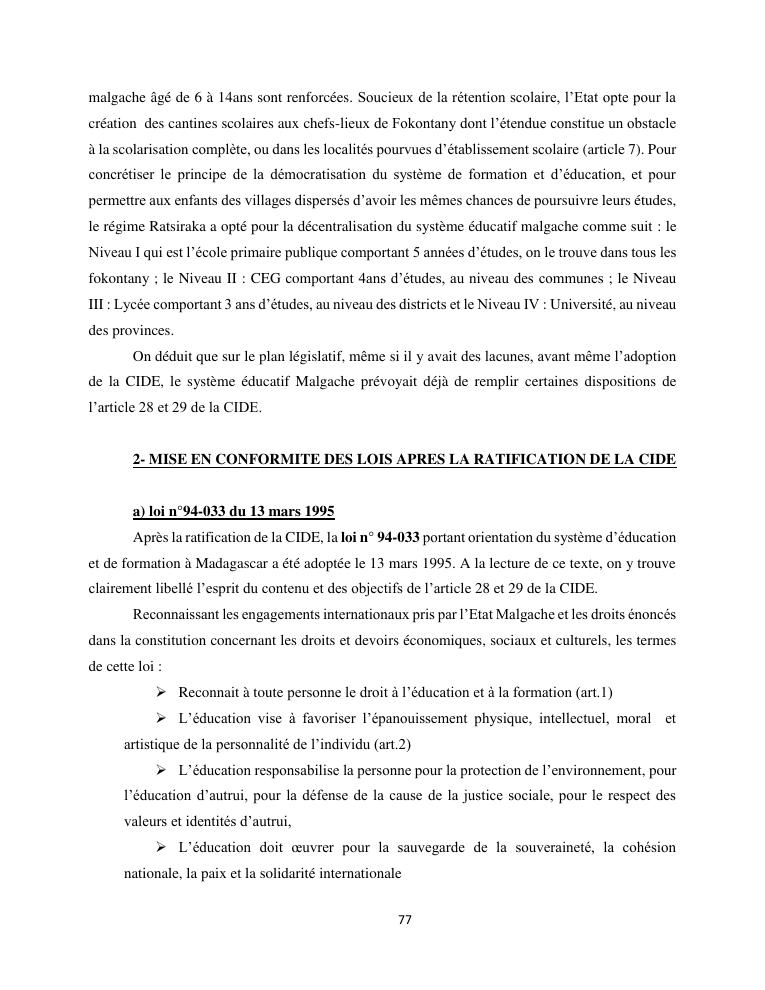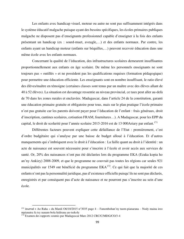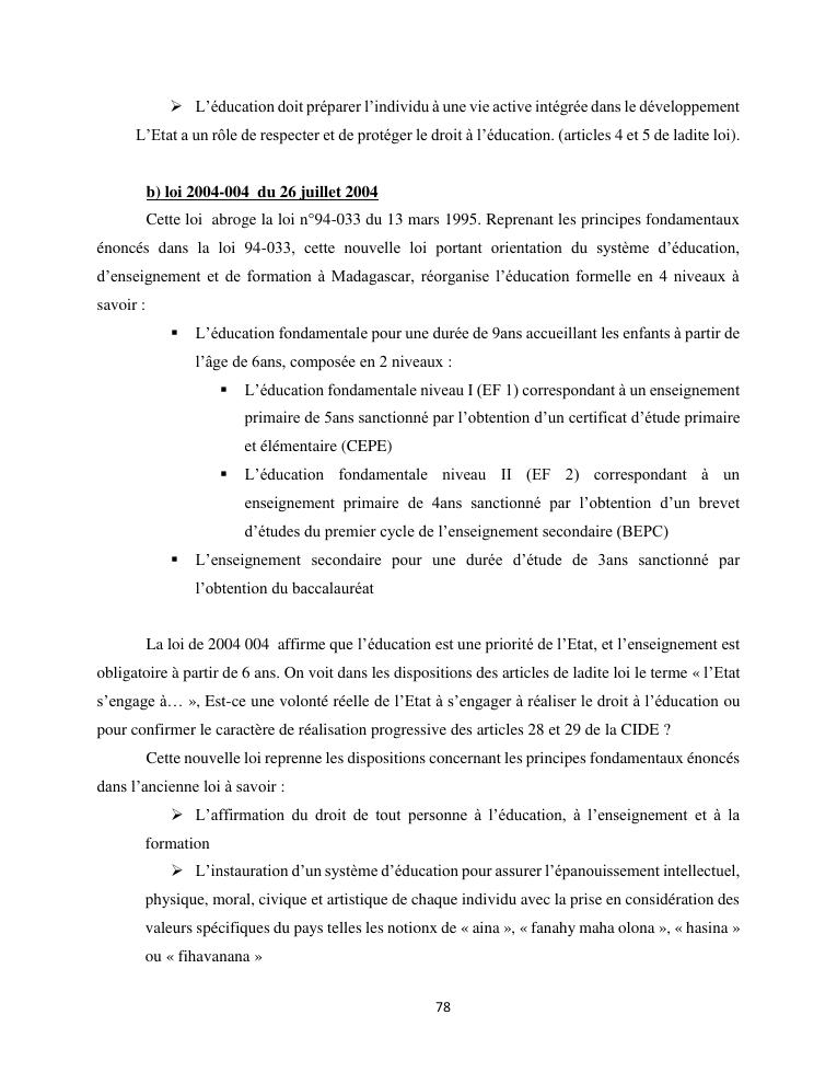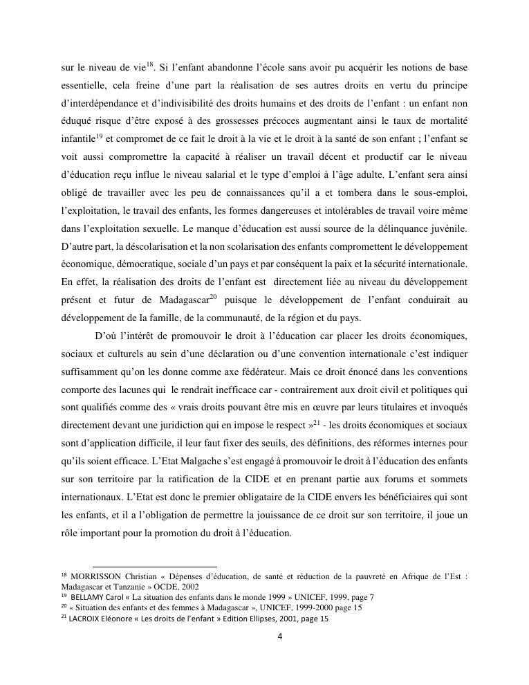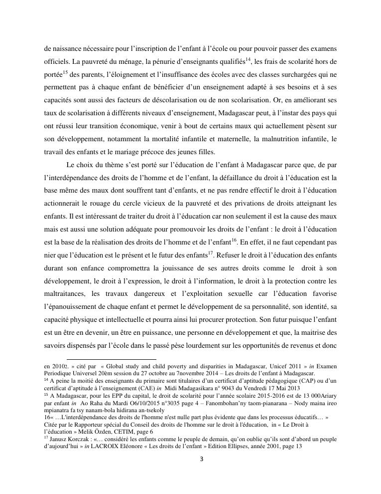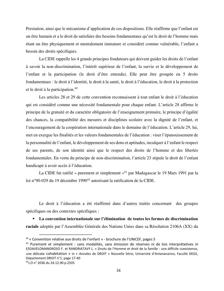 le droit a l'education de l'enfant a madagascar : de l'engagement a la concretisation
