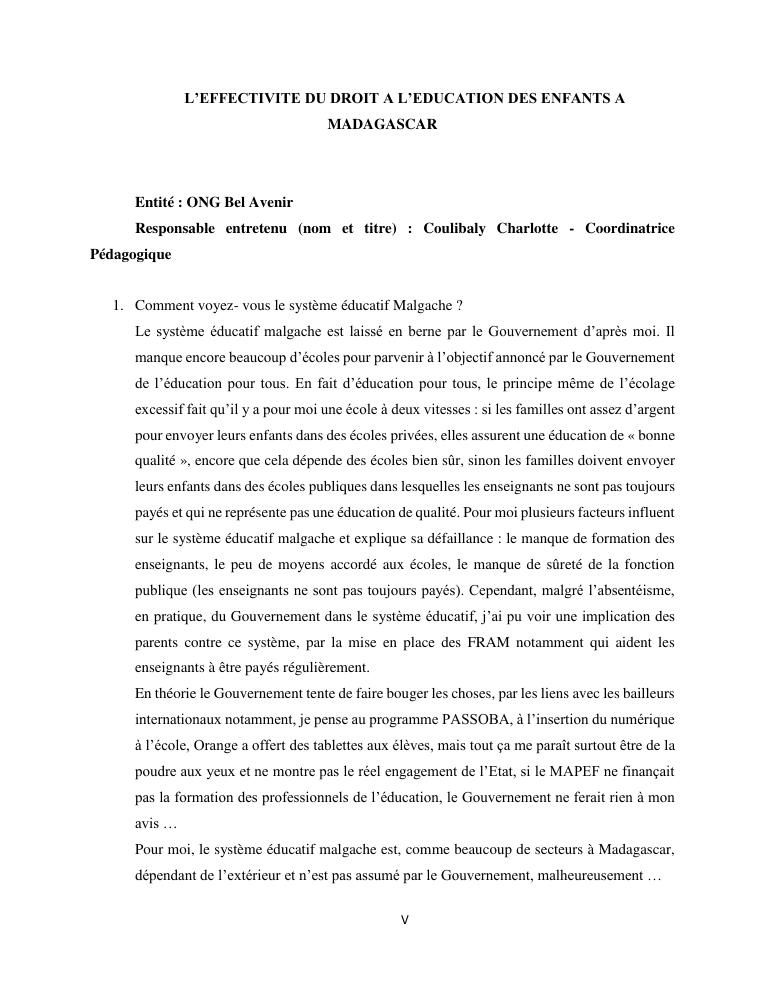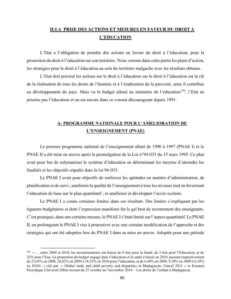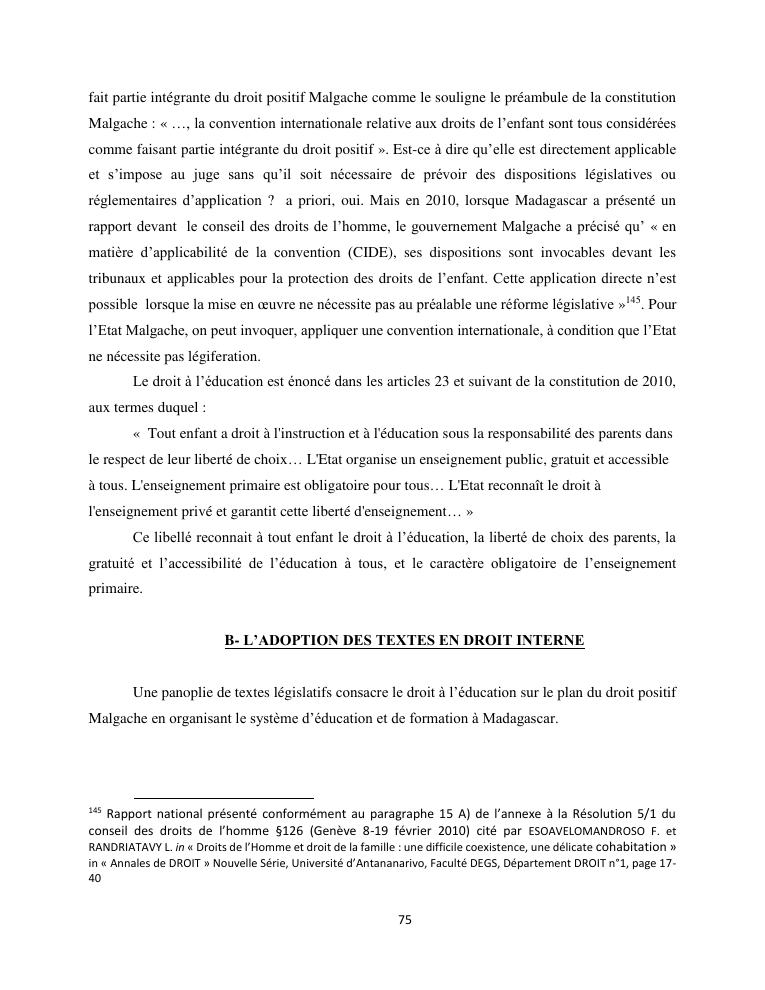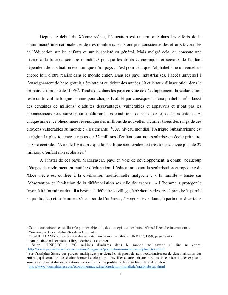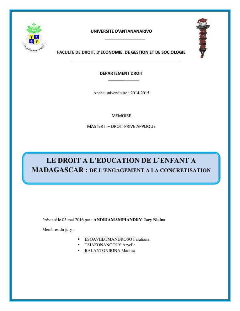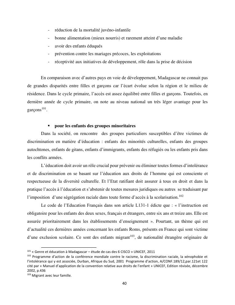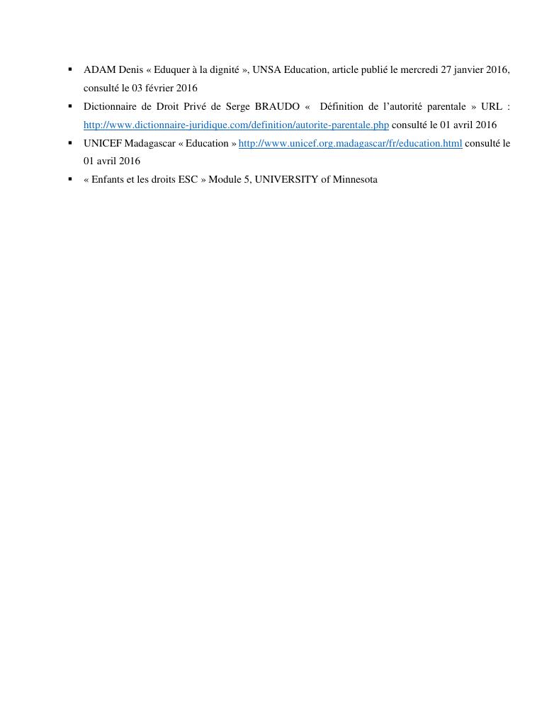 le droit a l'education de l'enfant a madagascar : de l'engagement a la concretisation