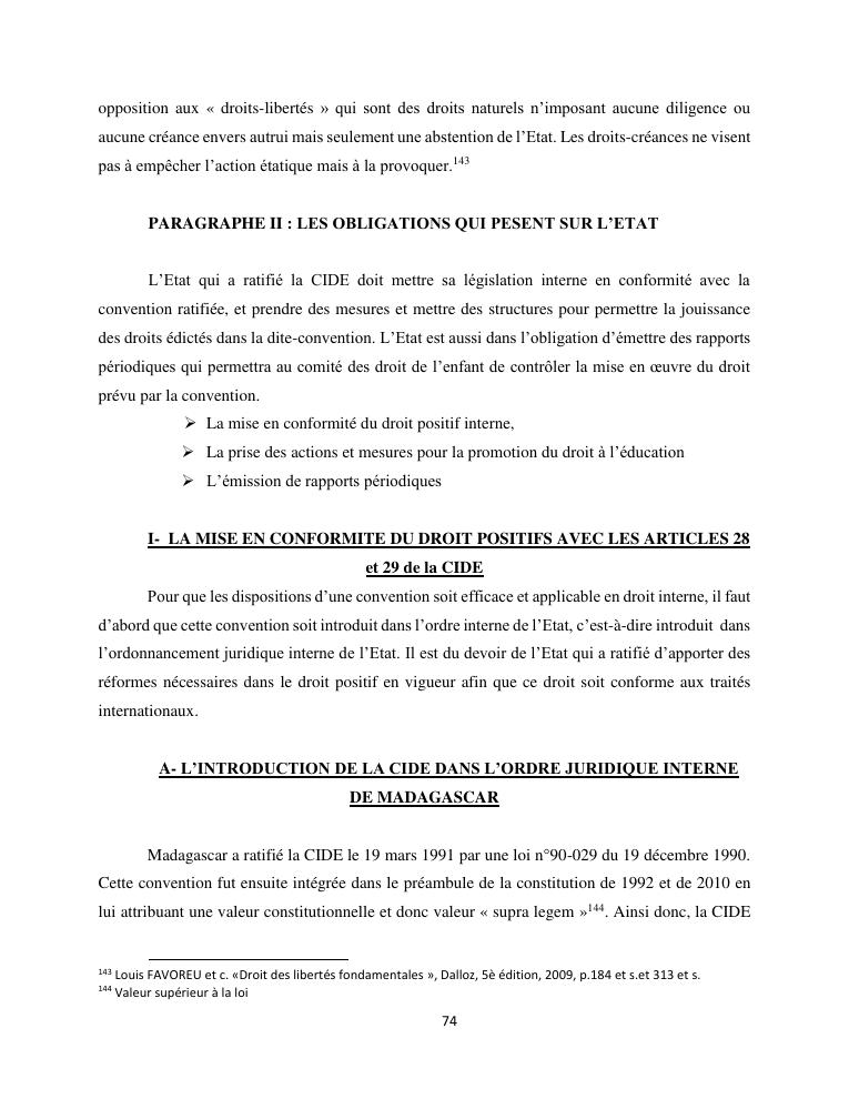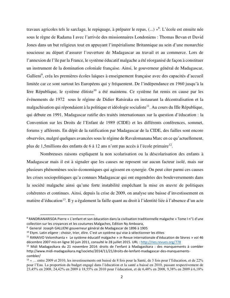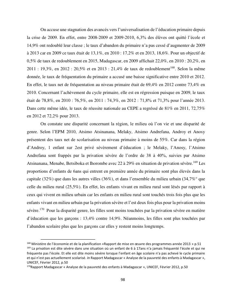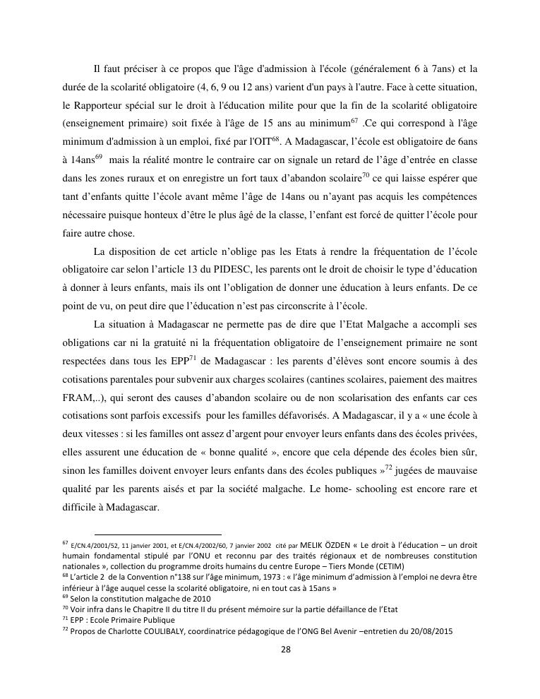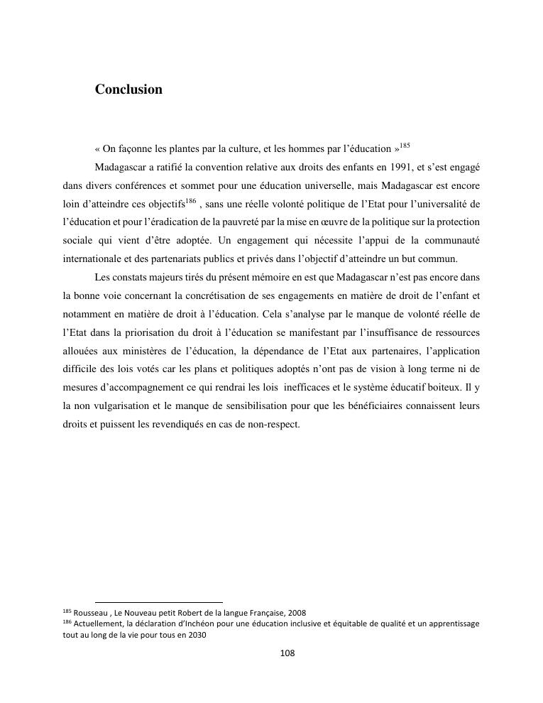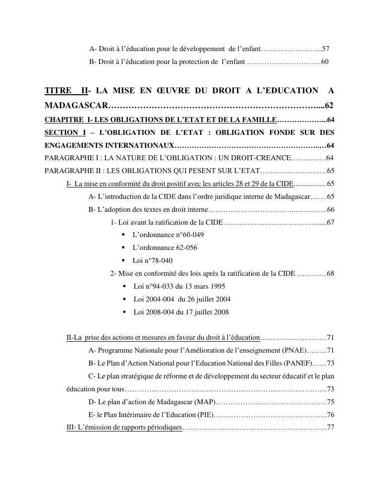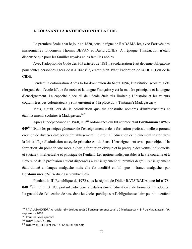 le droit a l'education de l'enfant a madagascar : de l'engagement a la concretisation