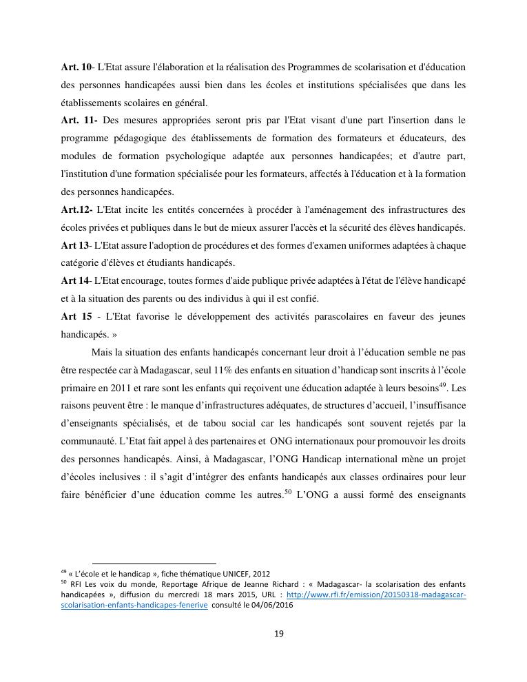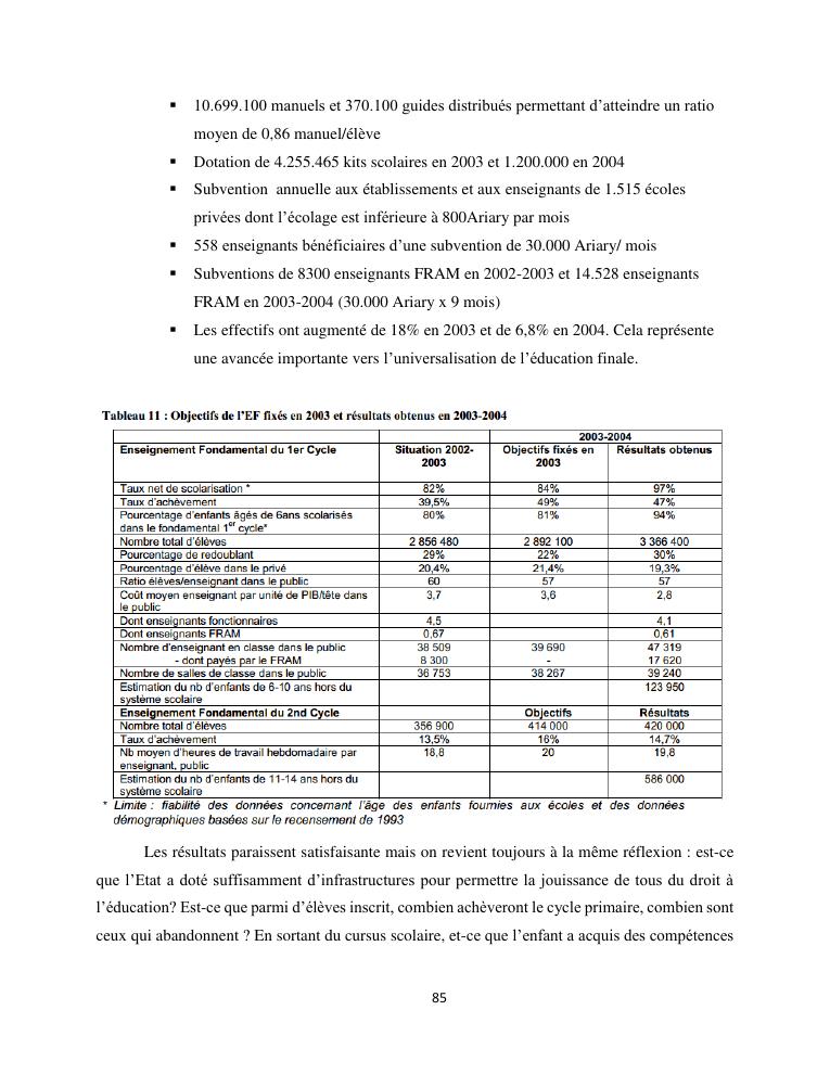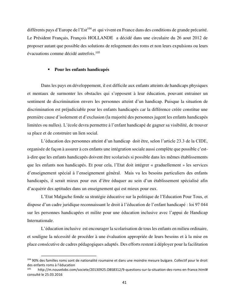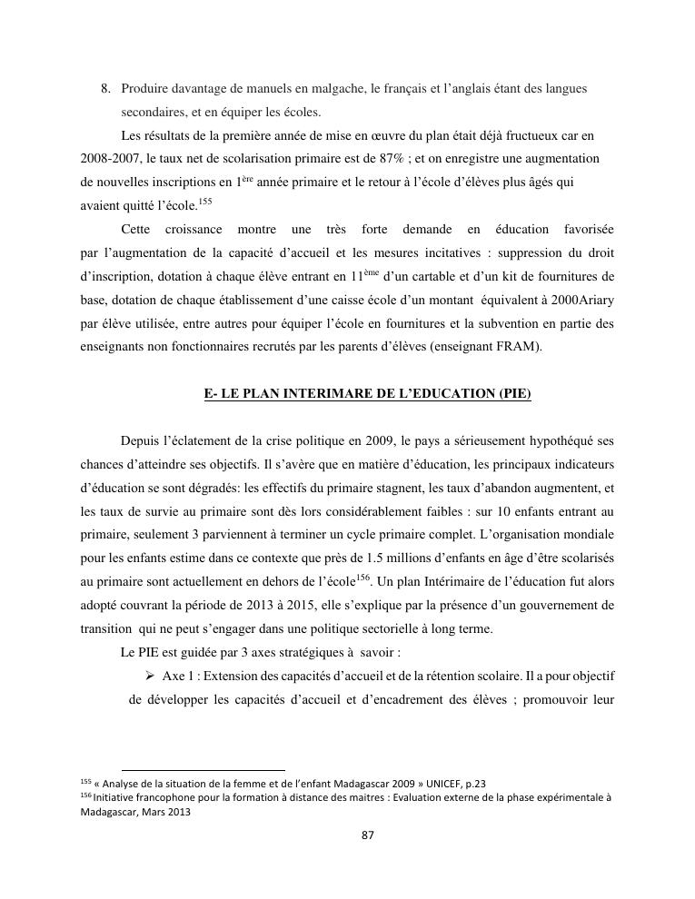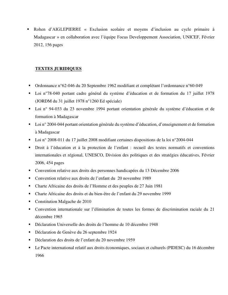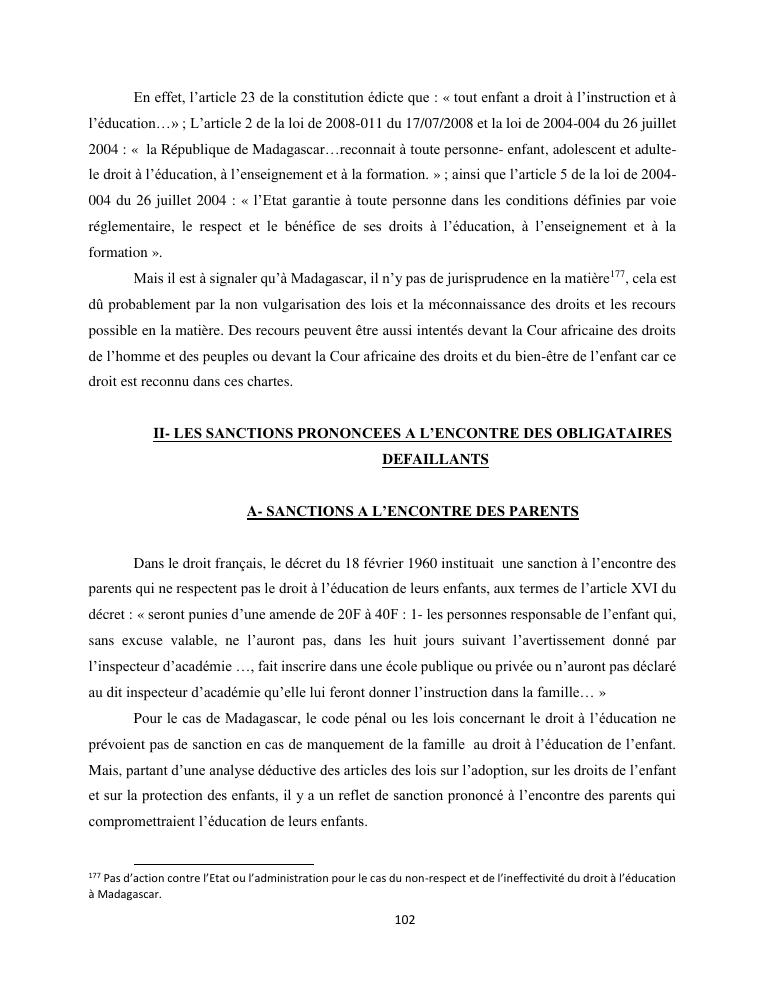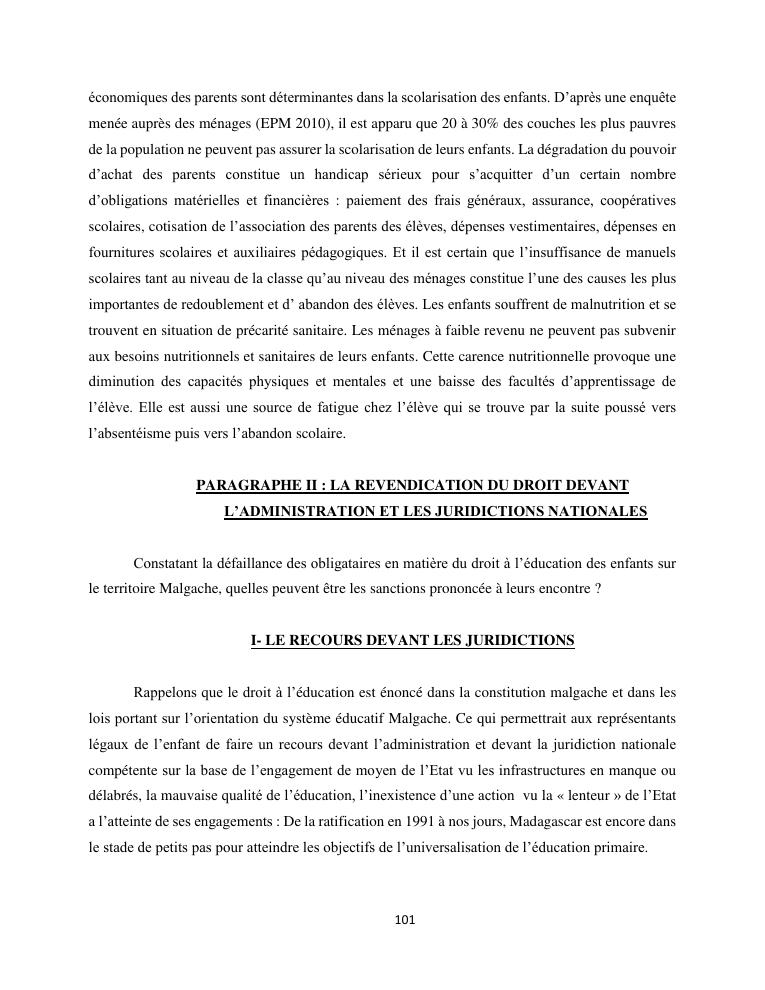 le droit a l'education de l'enfant a madagascar : de l'engagement a la concretisation