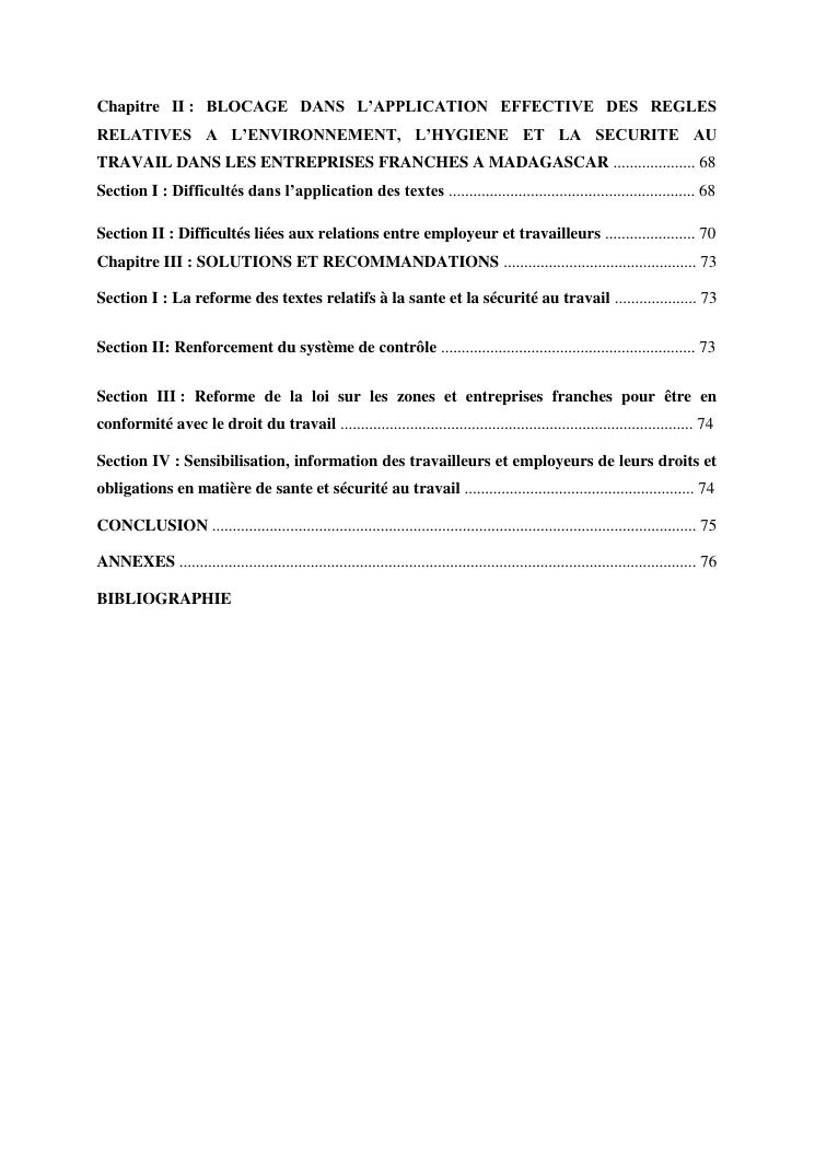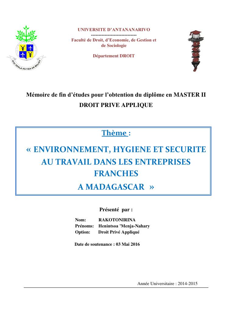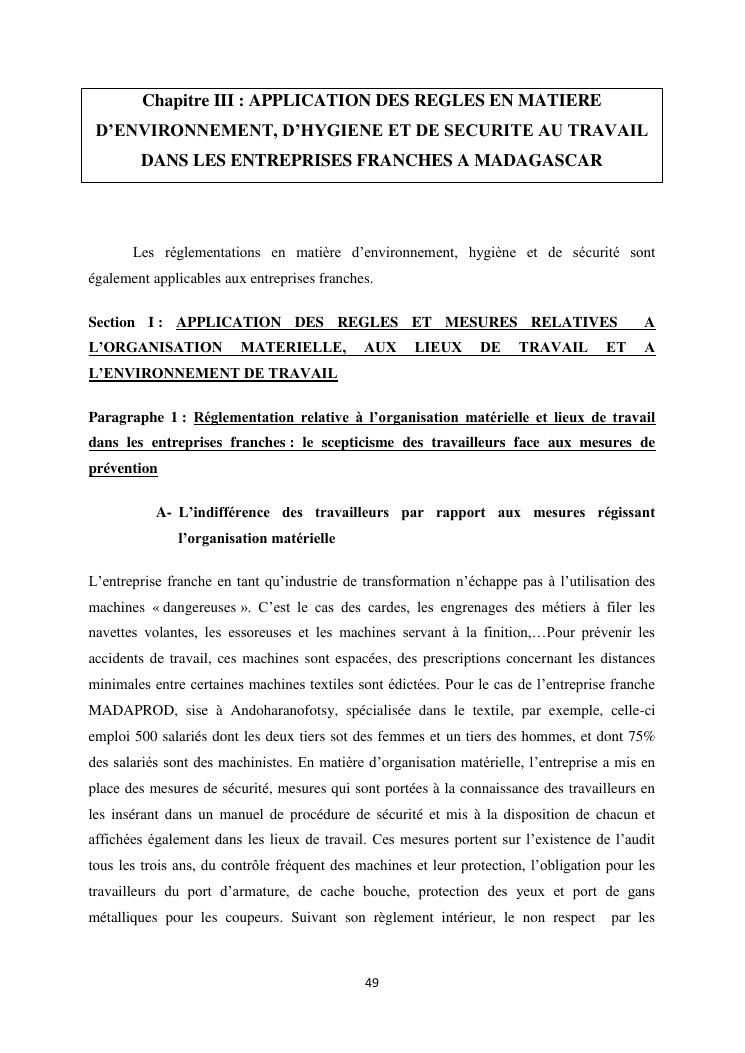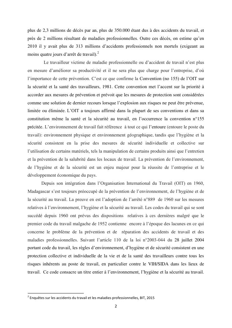 environnement, hygiene et securite au travail dans les entreprises franches a madagascar