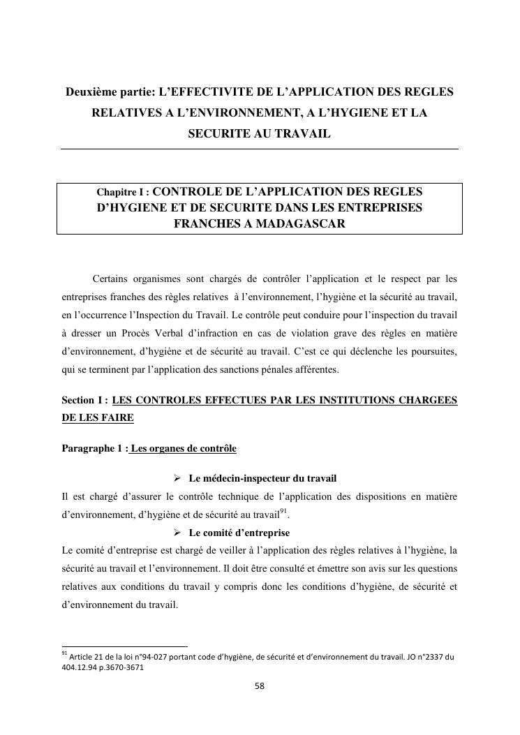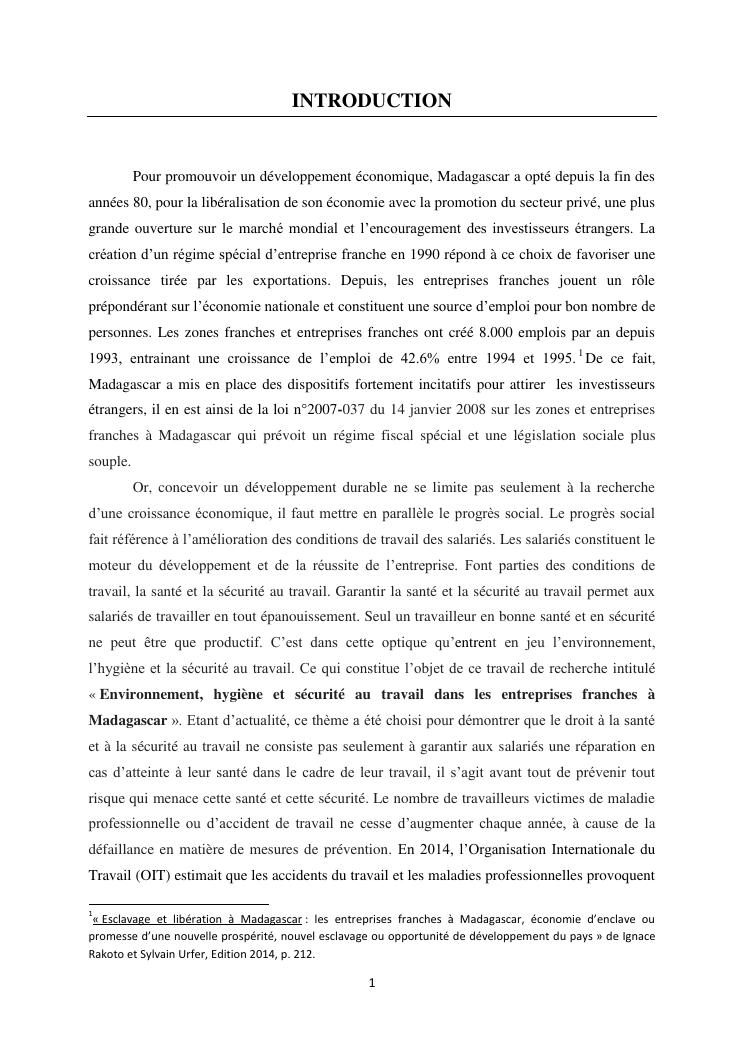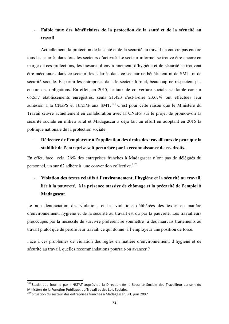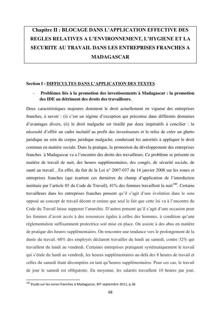 environnement, hygiene et securite au travail dans les entreprises franches a madagascar