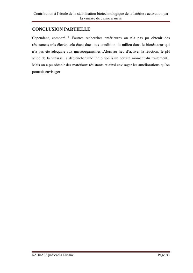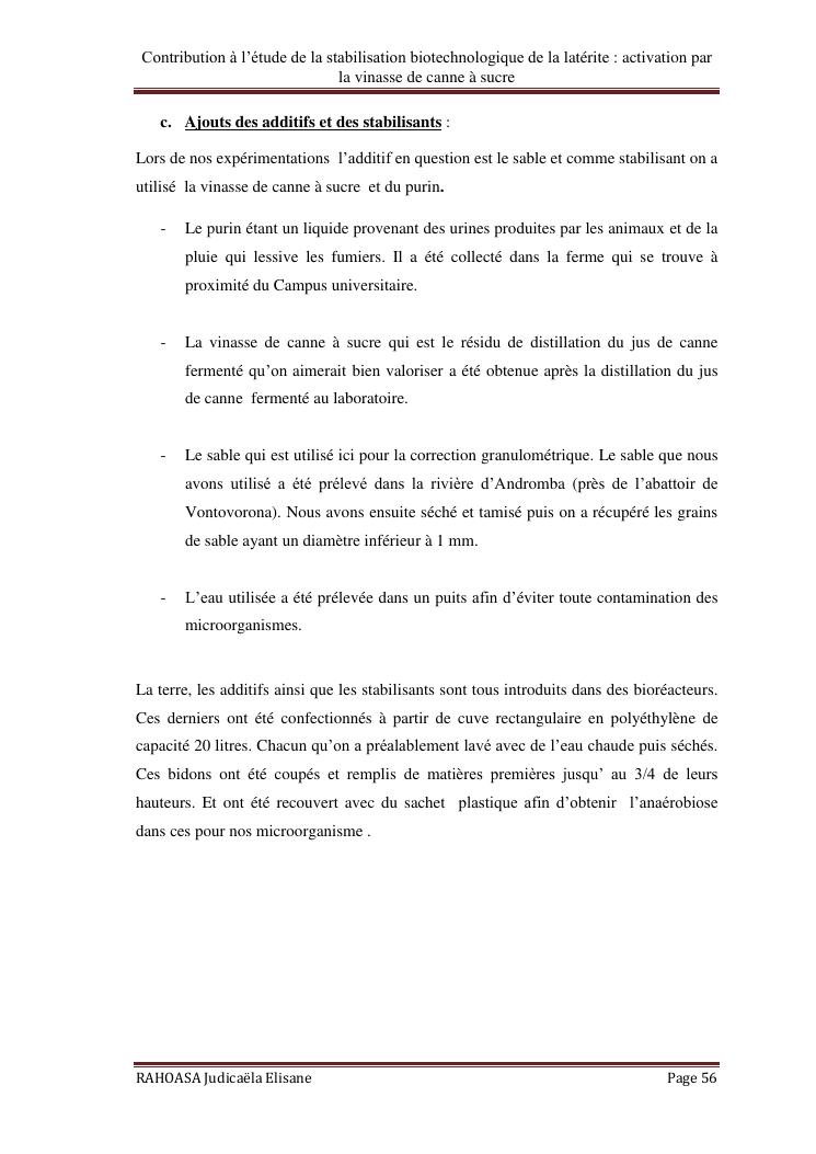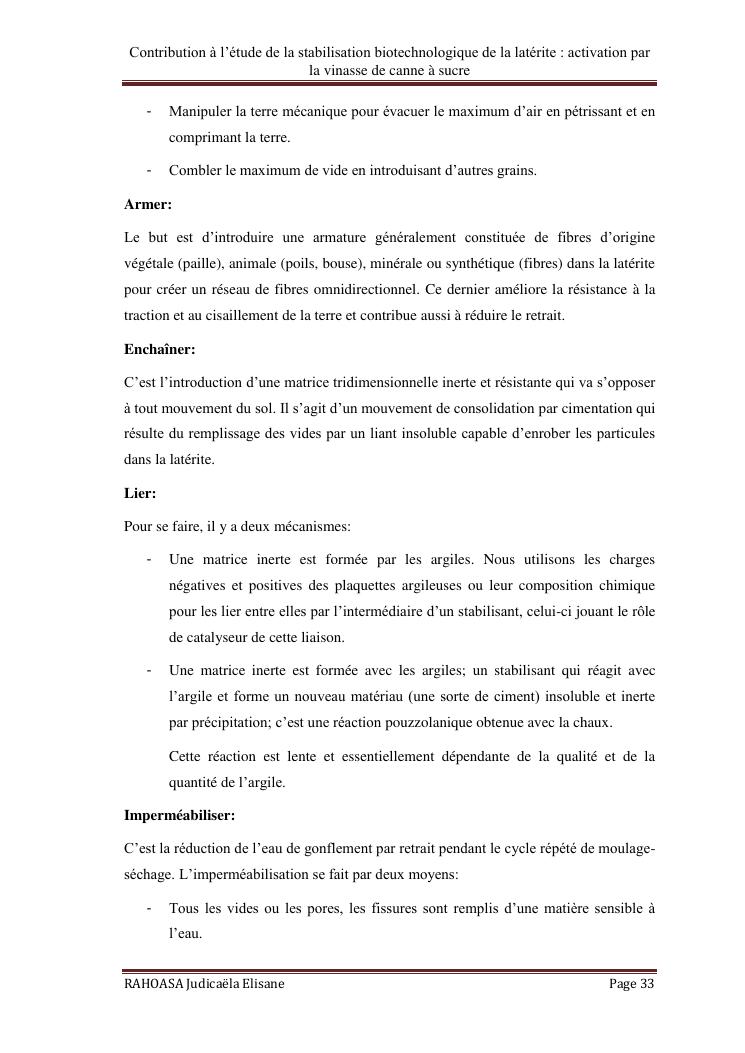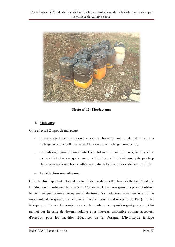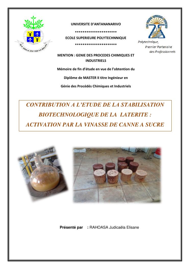 contribution a l'etude de la stabilisation biotechnologique de la laterite : activation par la vinasse de canne a sucre