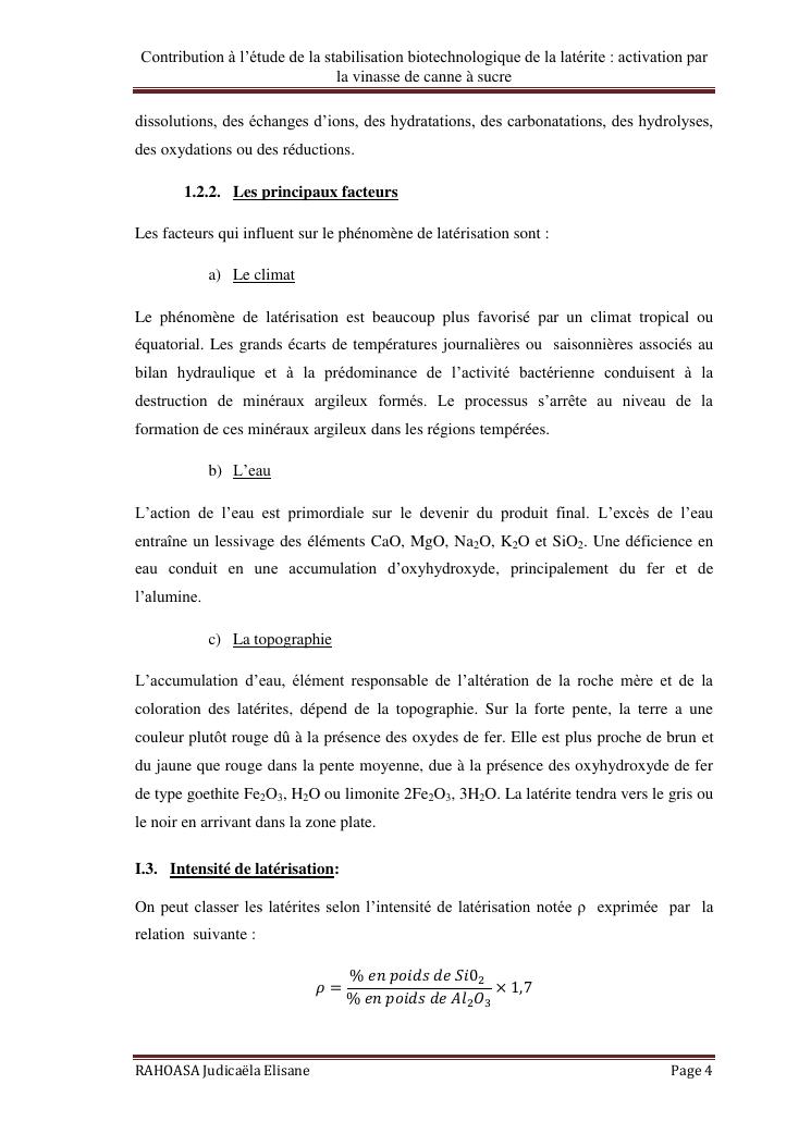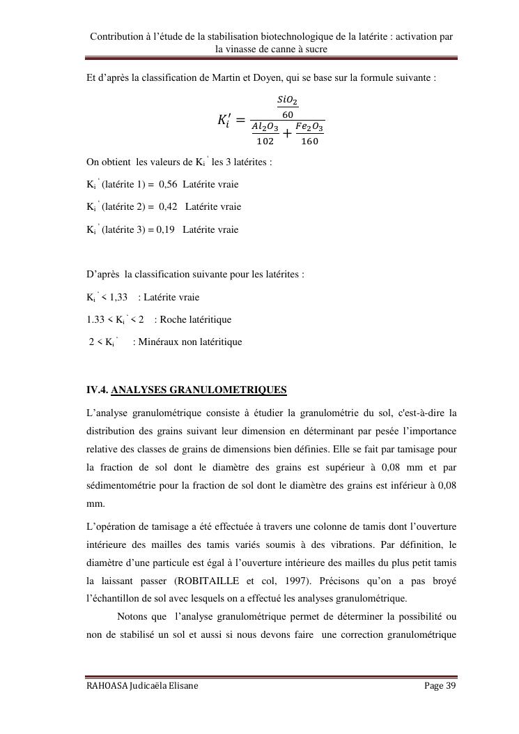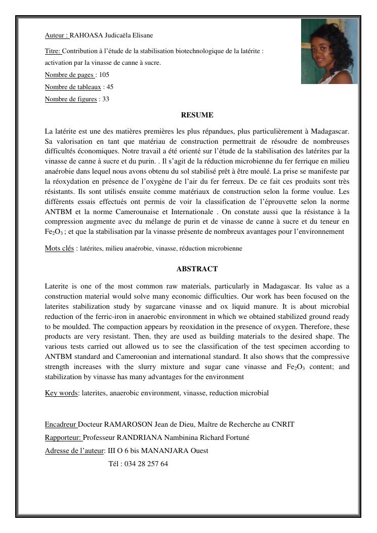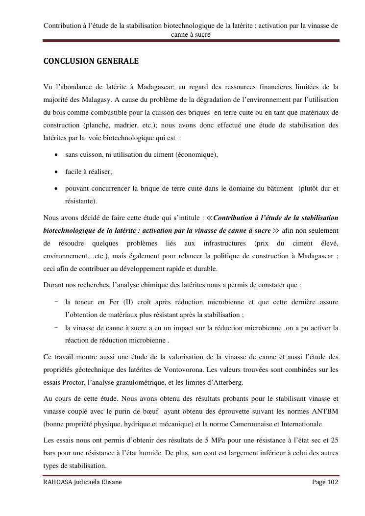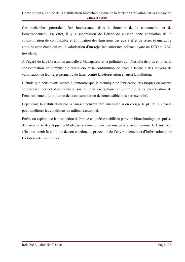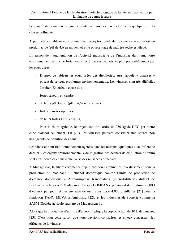 contribution a l'etude de la stabilisation biotechnologique de la laterite : activation par la vinasse de canne a sucre