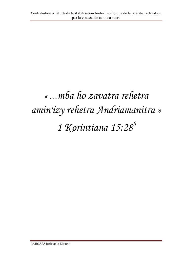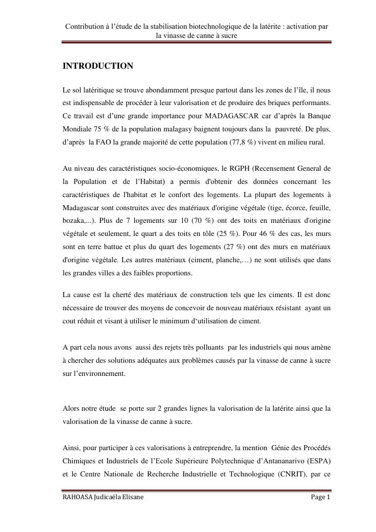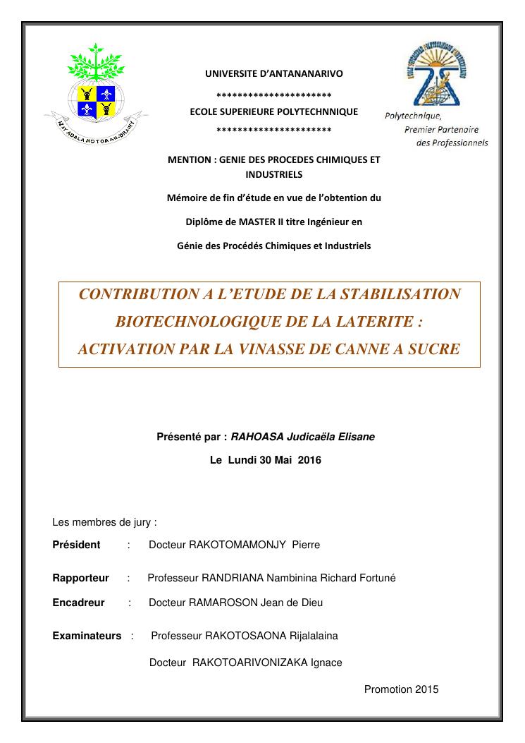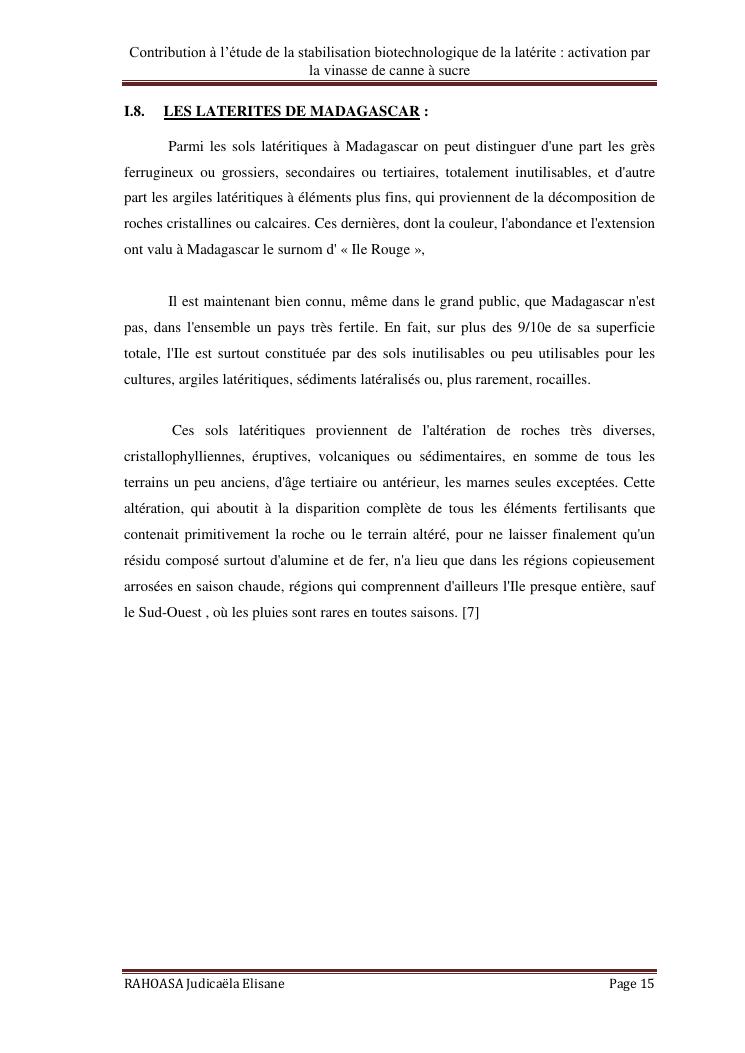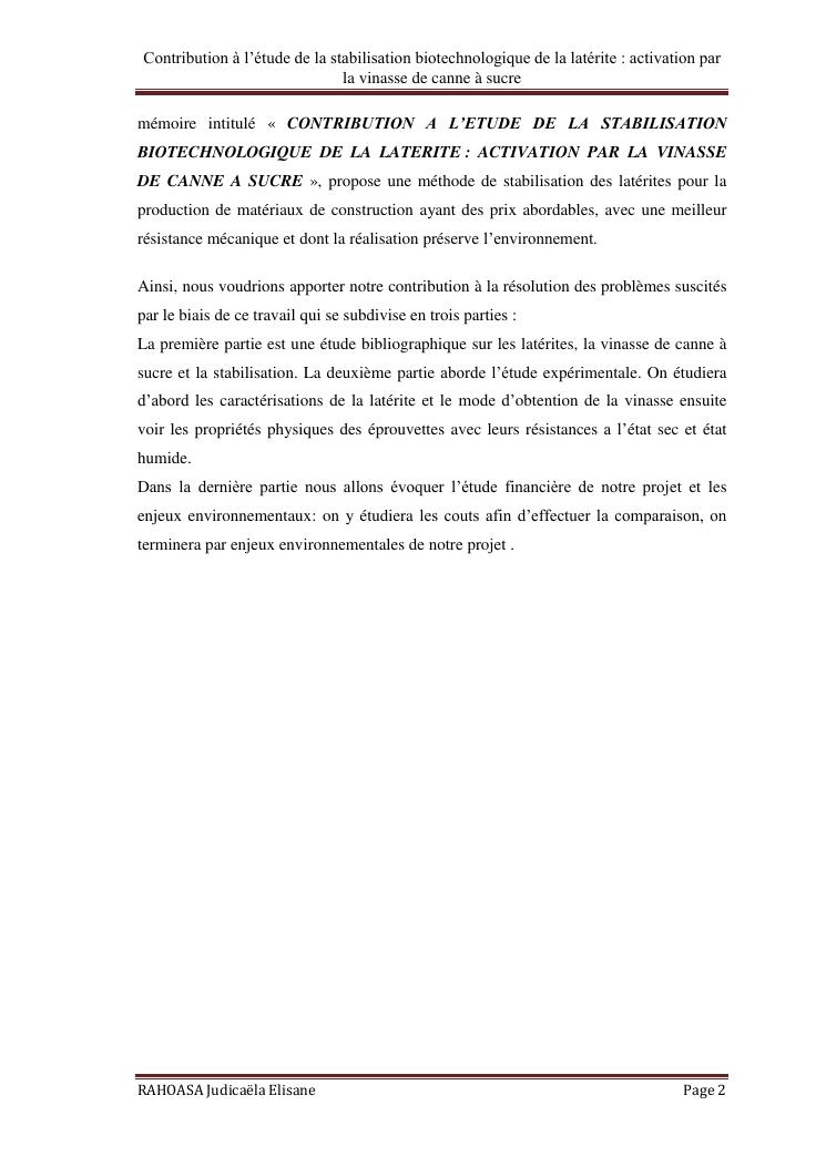 contribution a l'etude de la stabilisation biotechnologique de la laterite : activation par la vinasse de canne a sucre