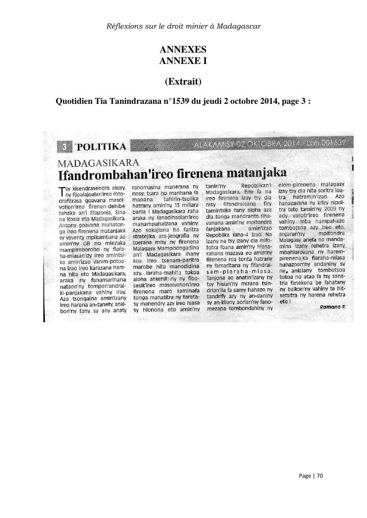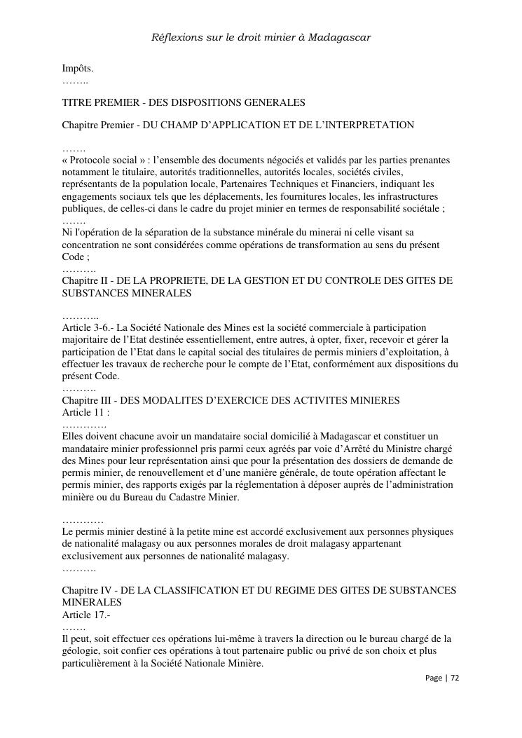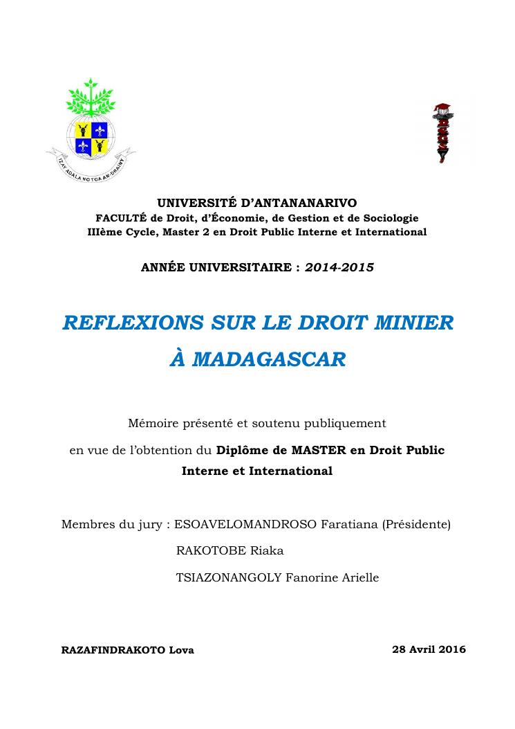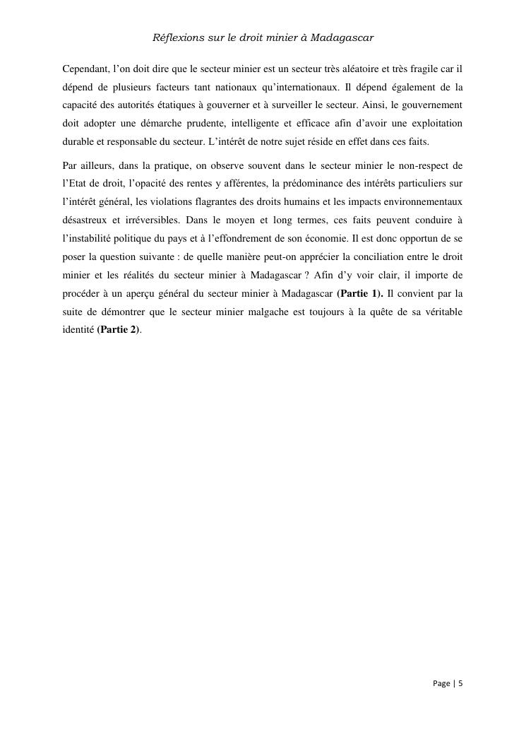 reflexions sur le droit minier à madagascar
