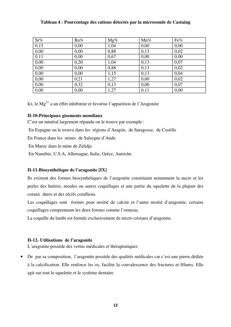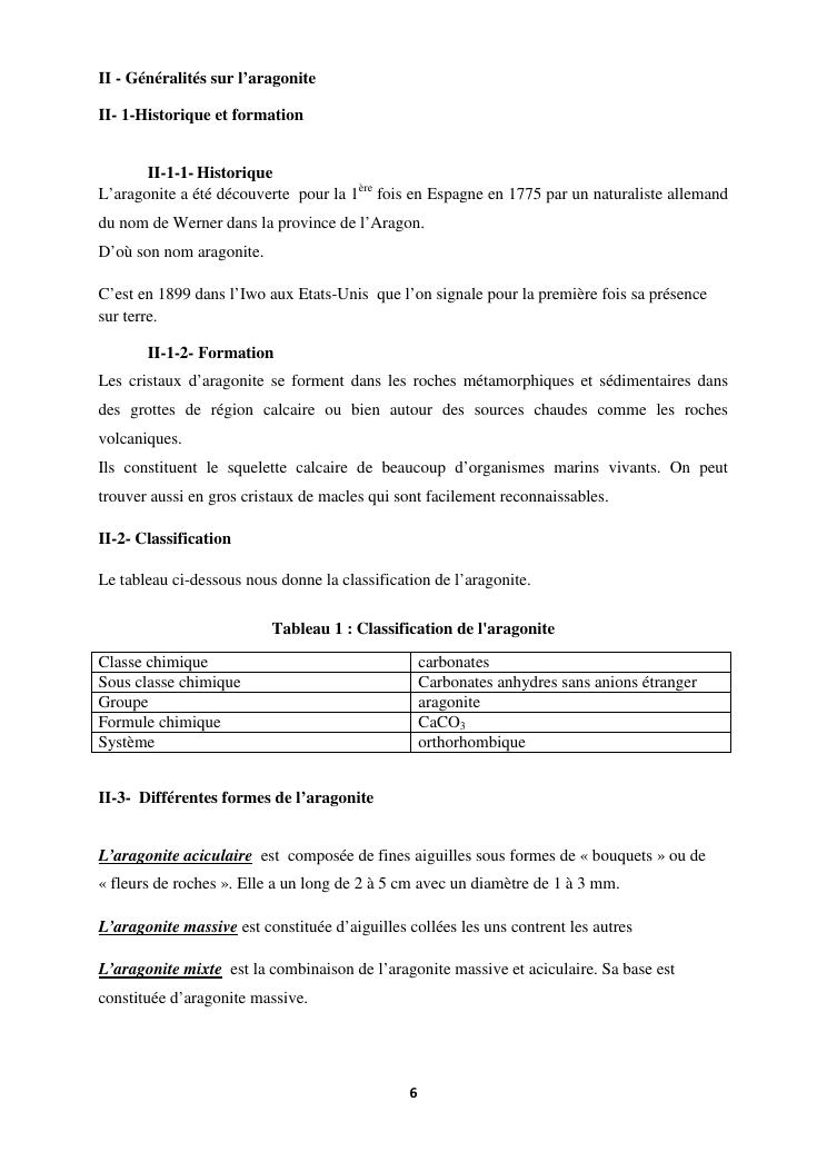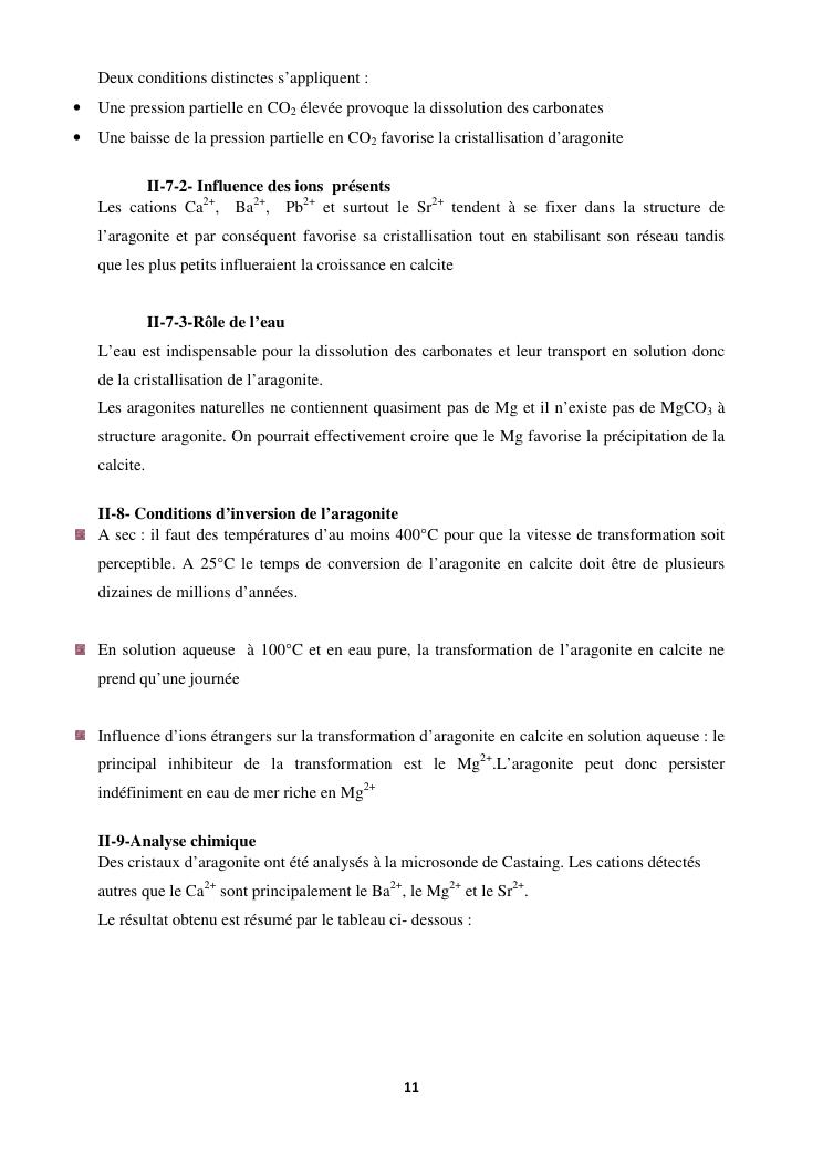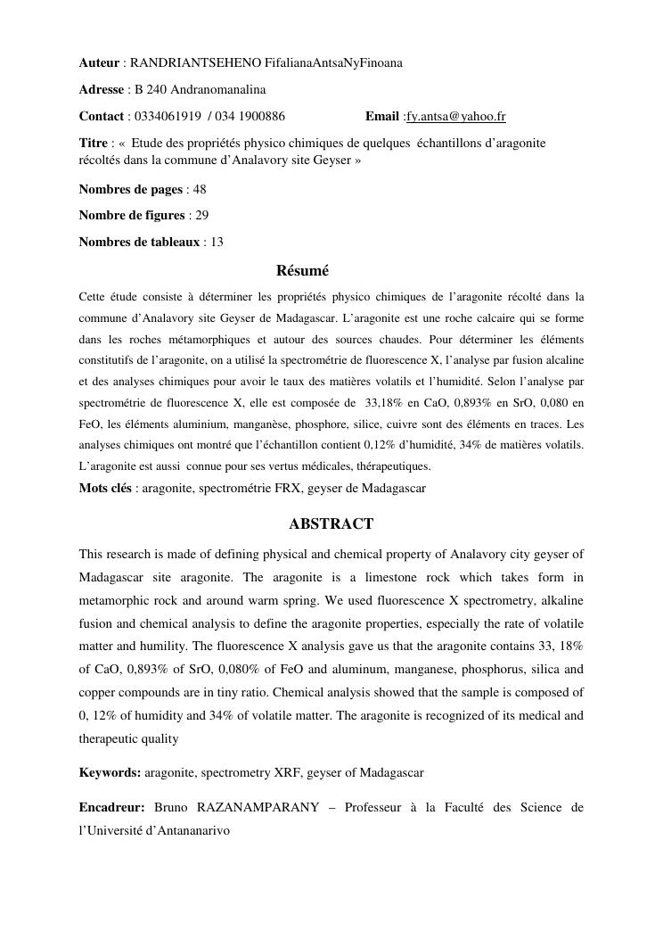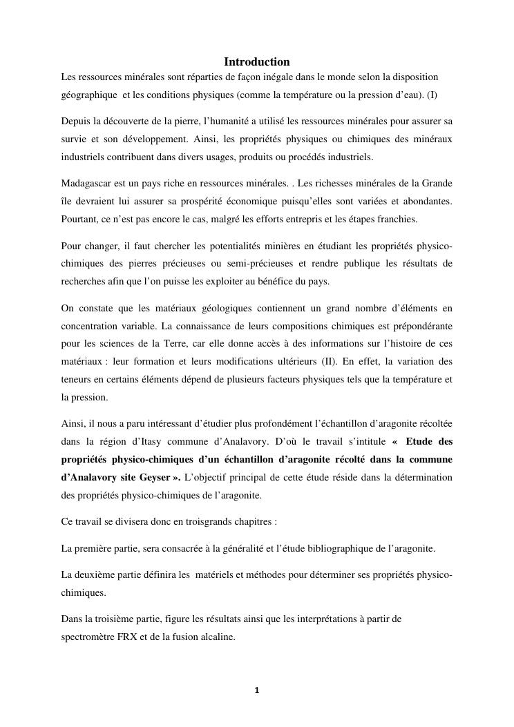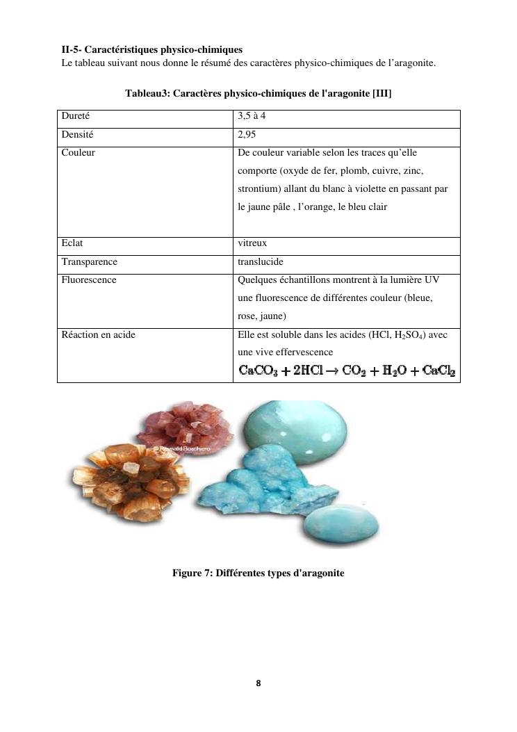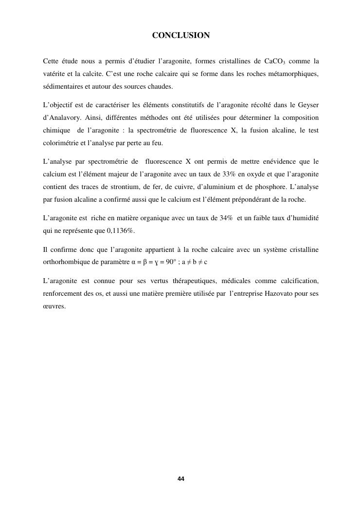 etude des proprietes physico chimiques dequelques echantillons d'aragonite recoltes dans la commune d'analavory site geyser