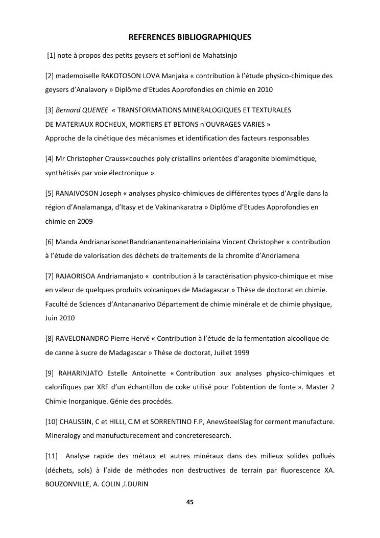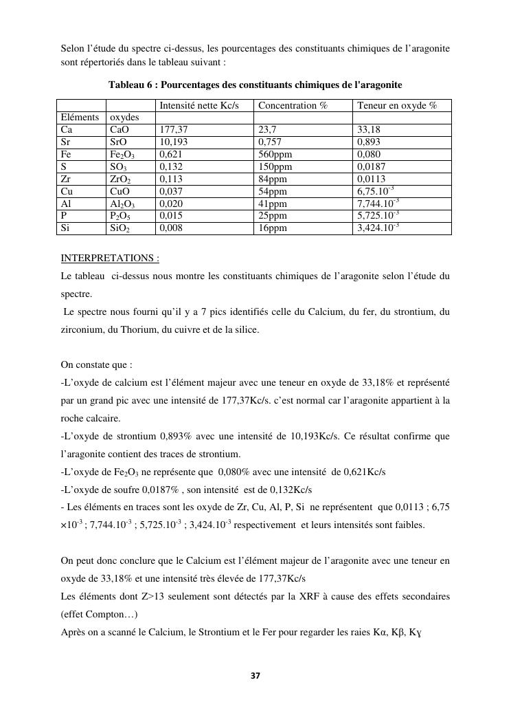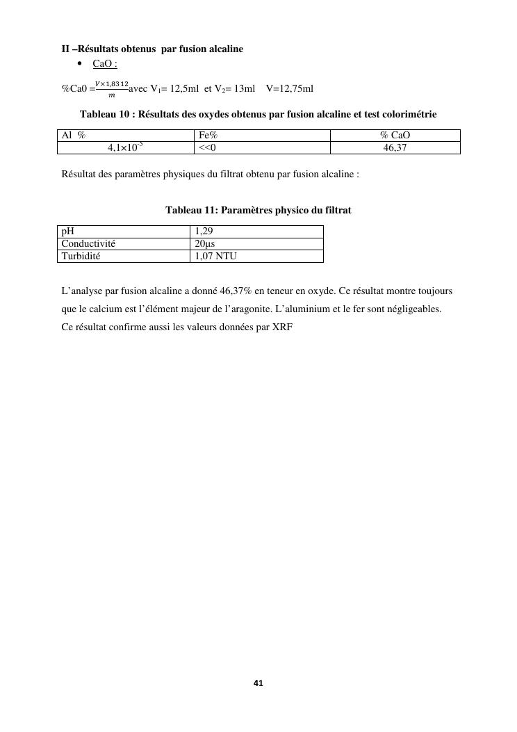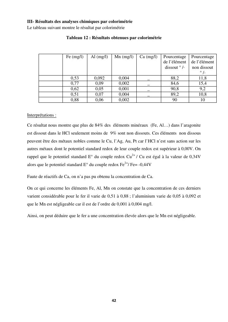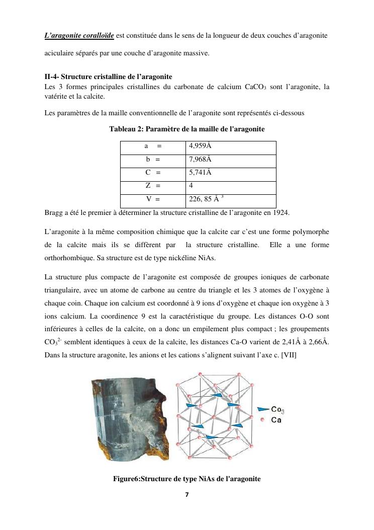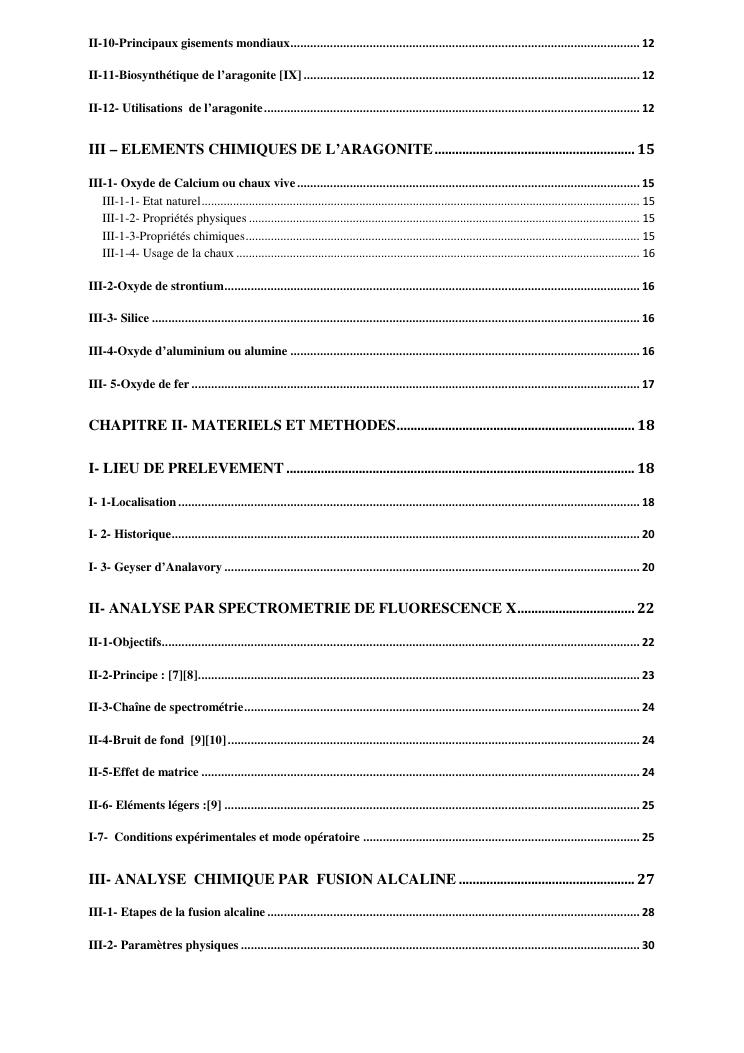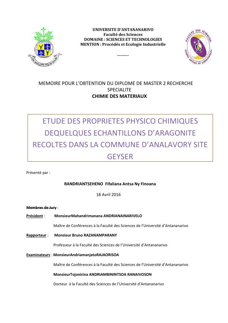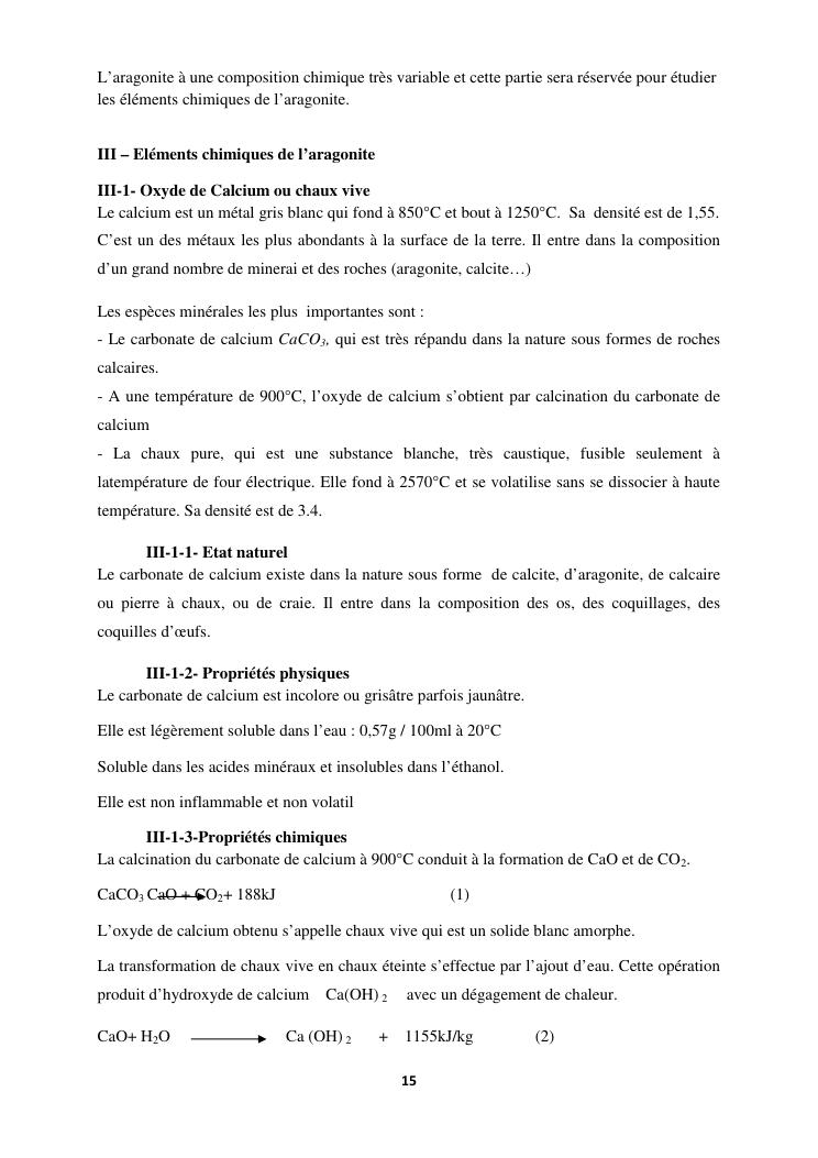 etude des proprietes physico chimiques dequelques echantillons d'aragonite recoltes dans la commune d'analavory site geyser