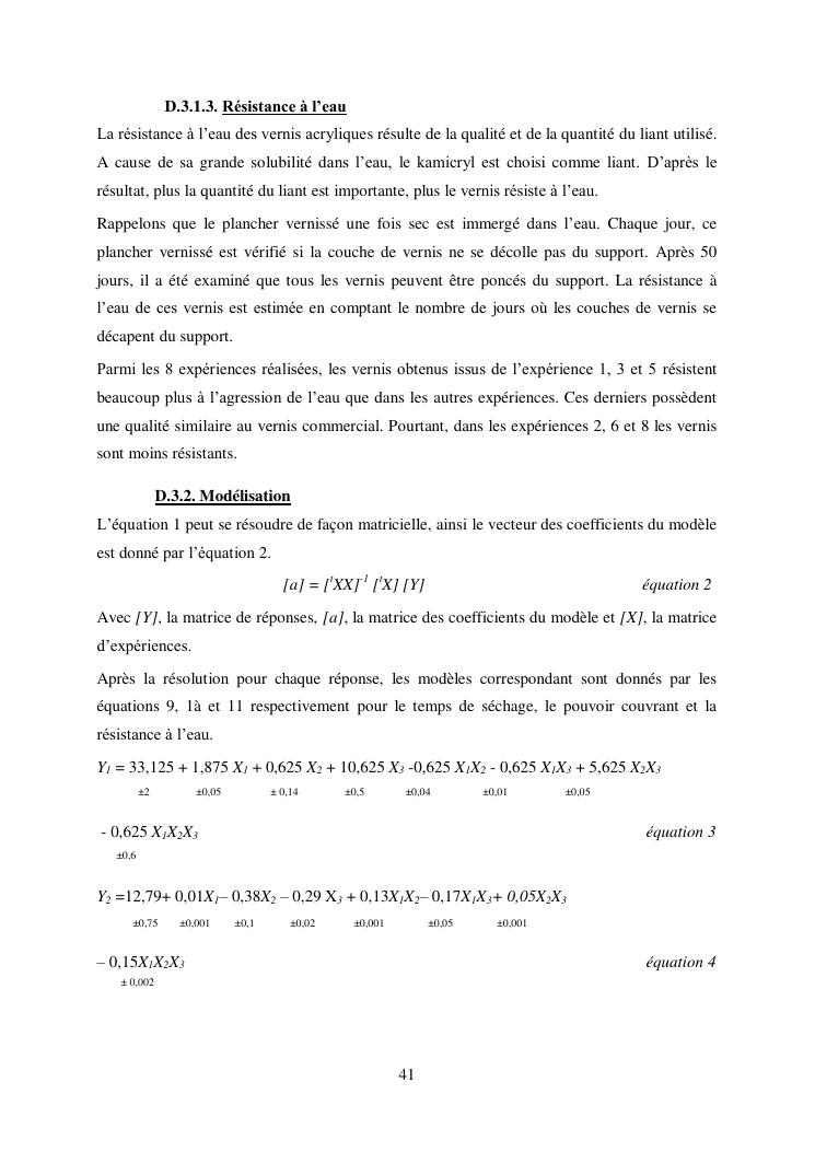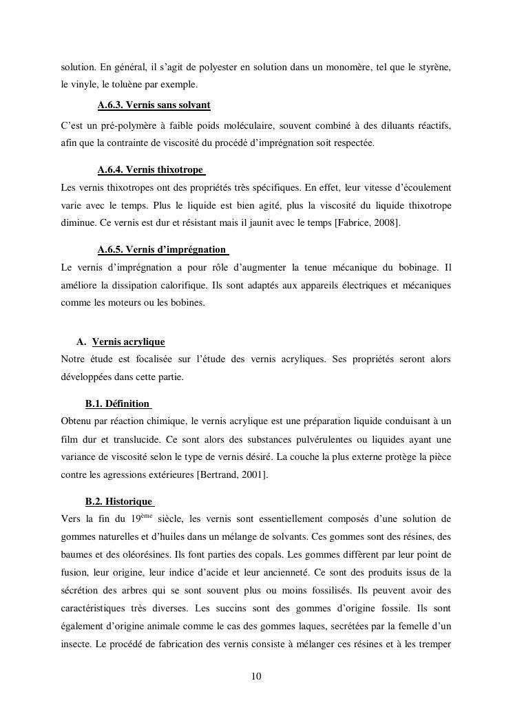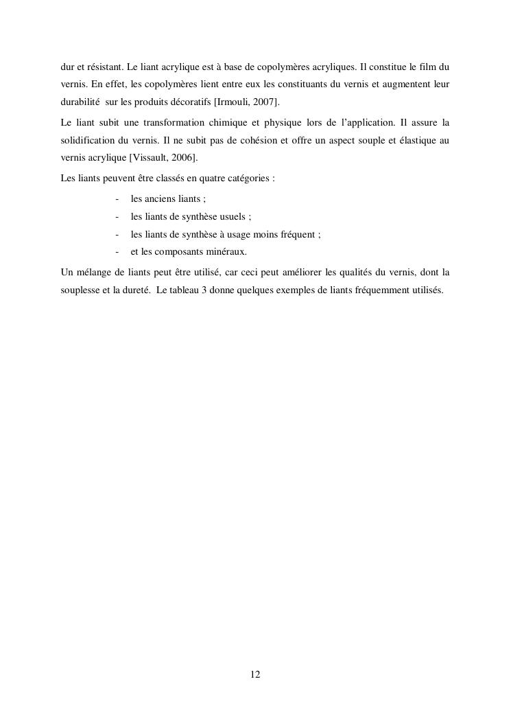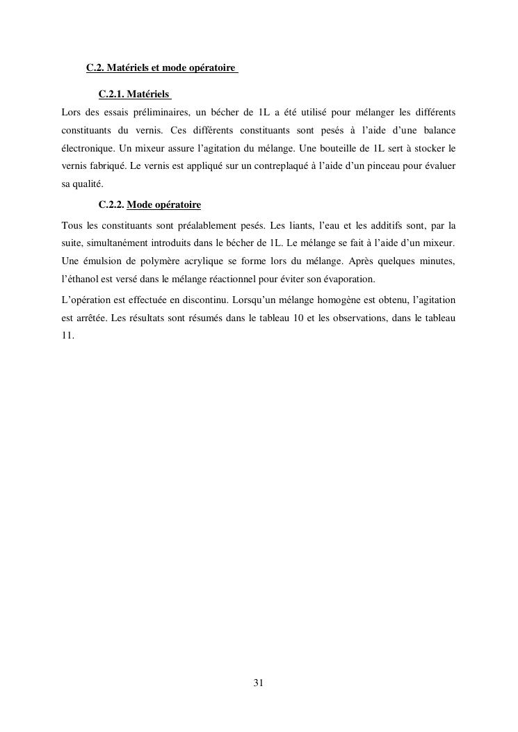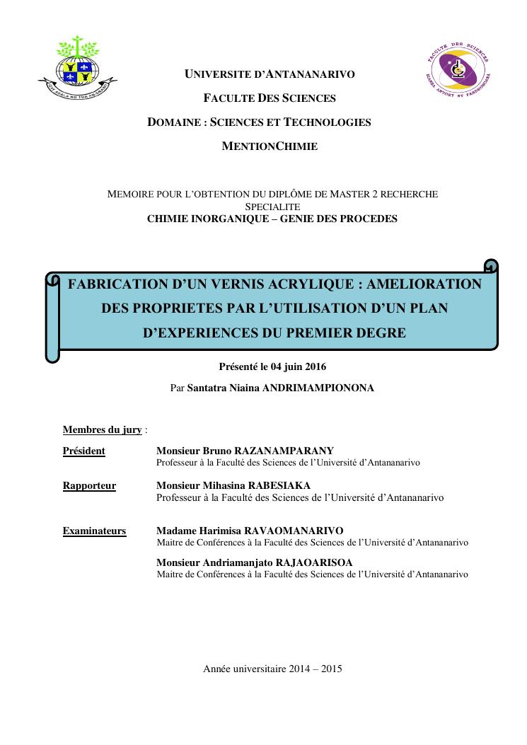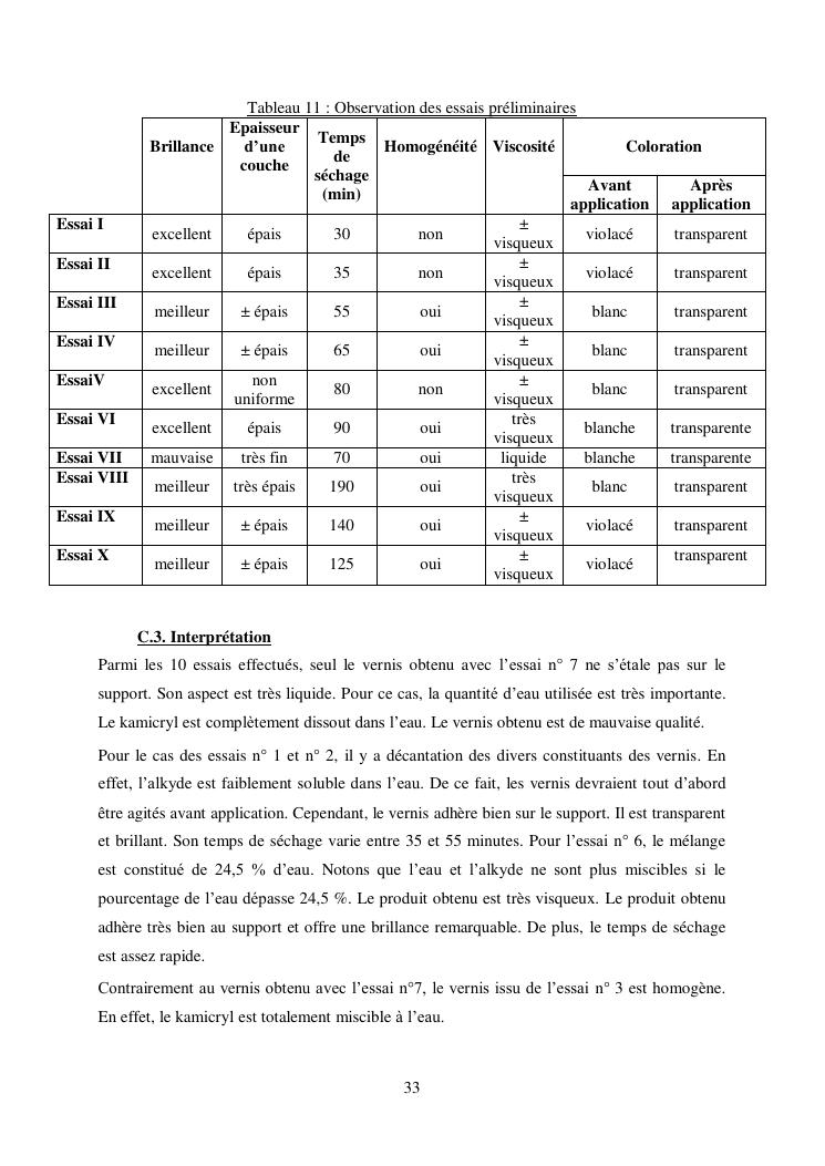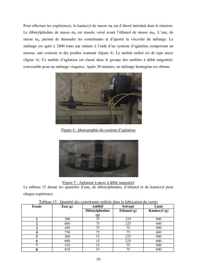 fabrication d'un vernis acrylique : amelioration des proprietes par l'utilisation d'un plan d'experiences du premier degre
