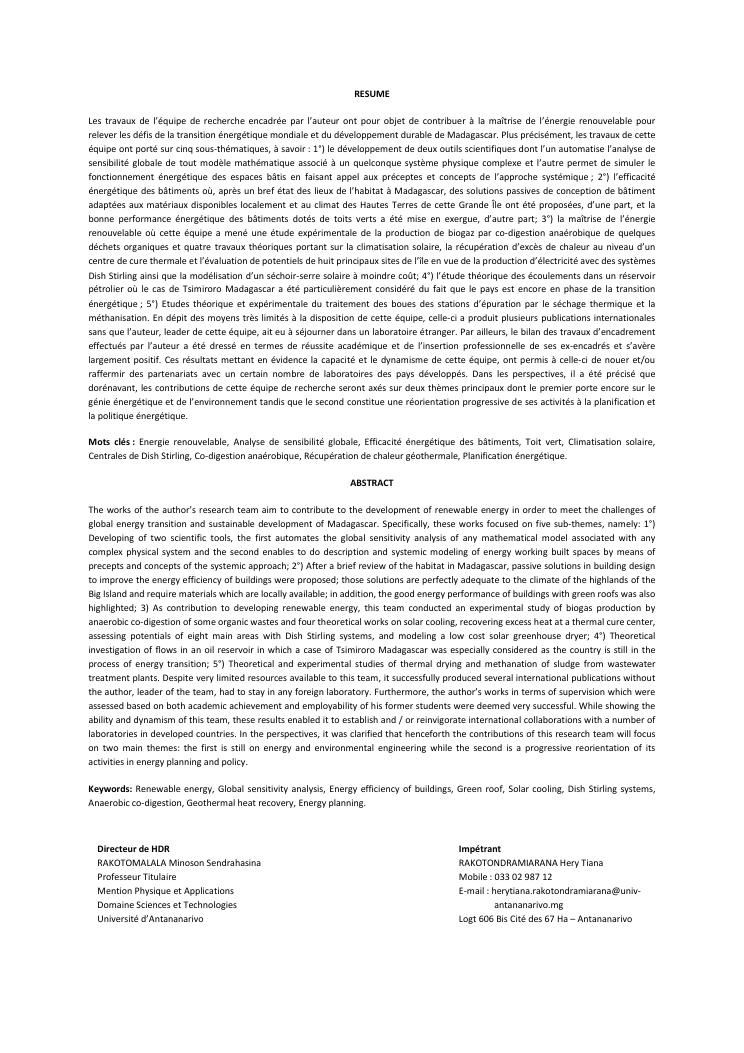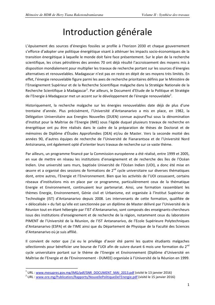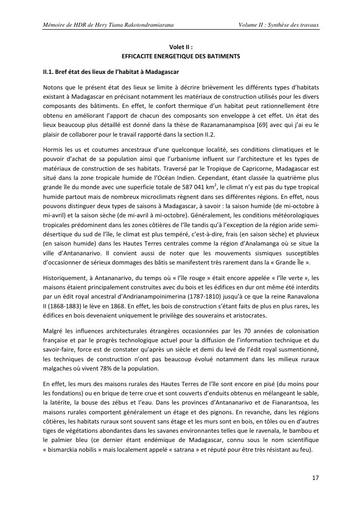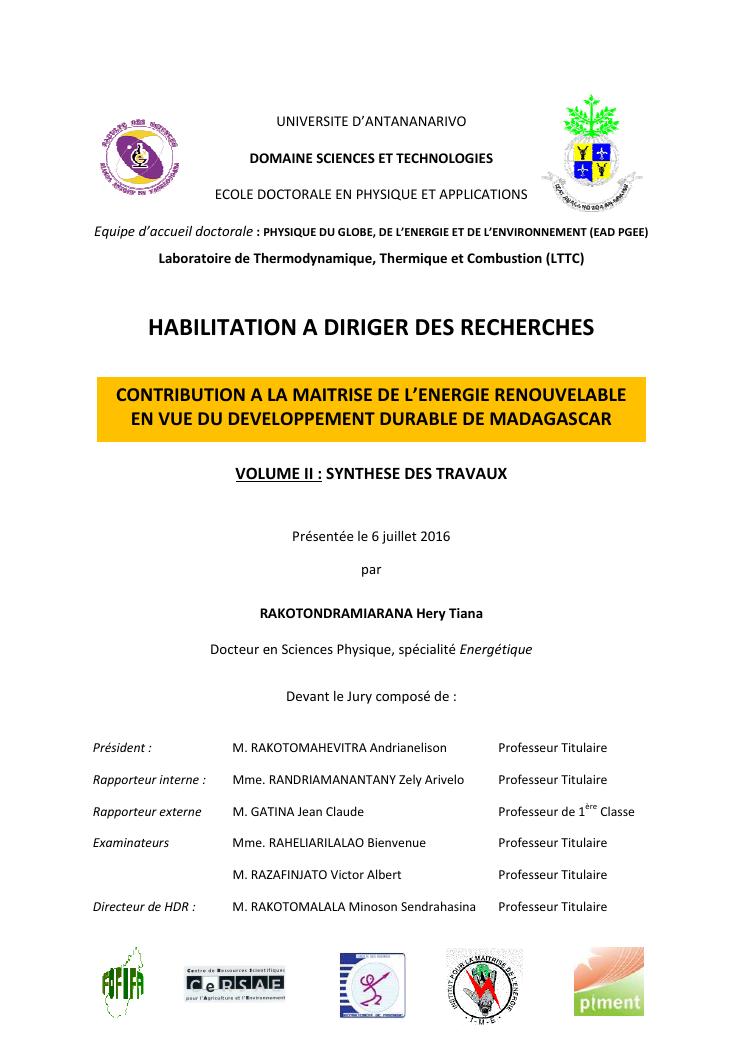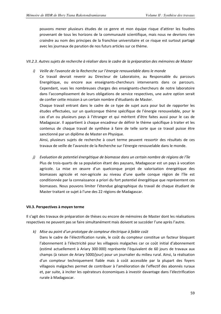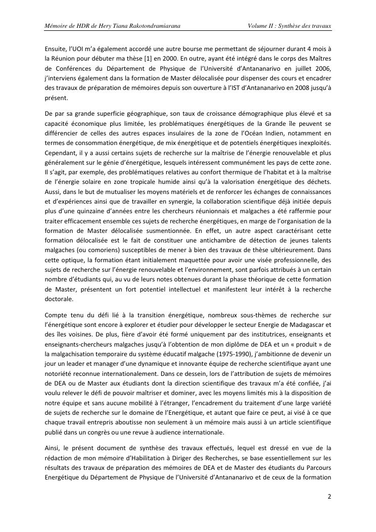 contribution a la maitrise de l'energie renouvelable en vue du developpement durable de madagascar. volume ii : synthese des travaux
