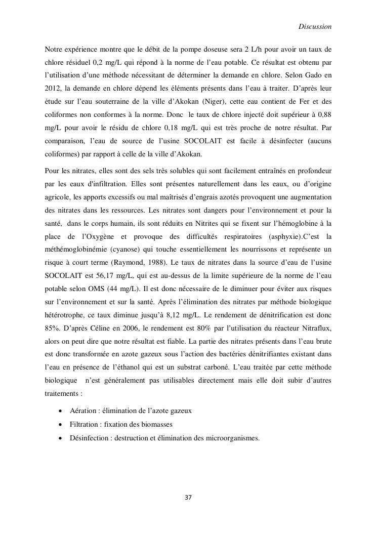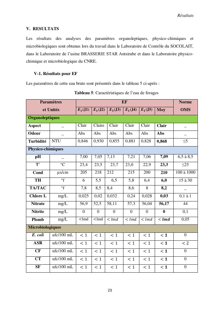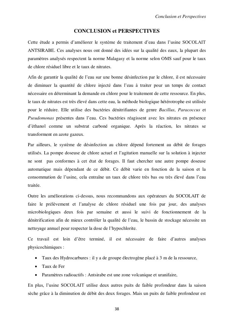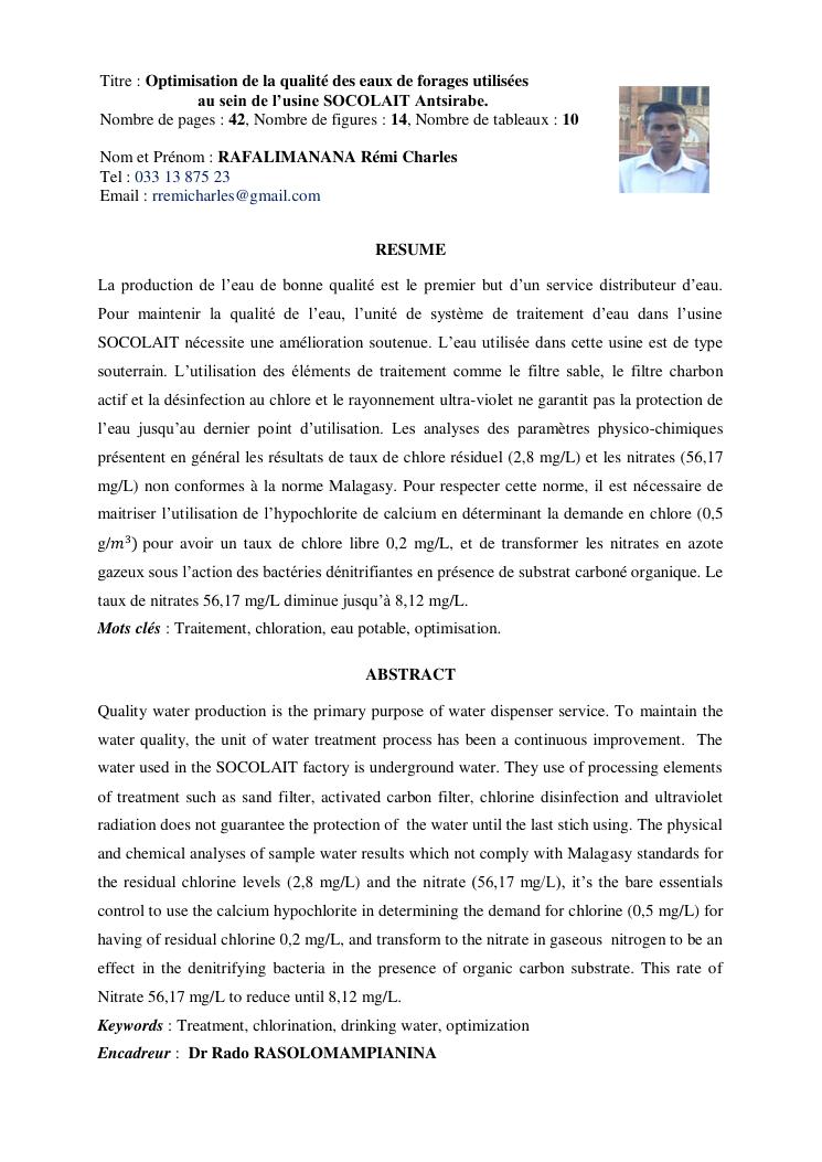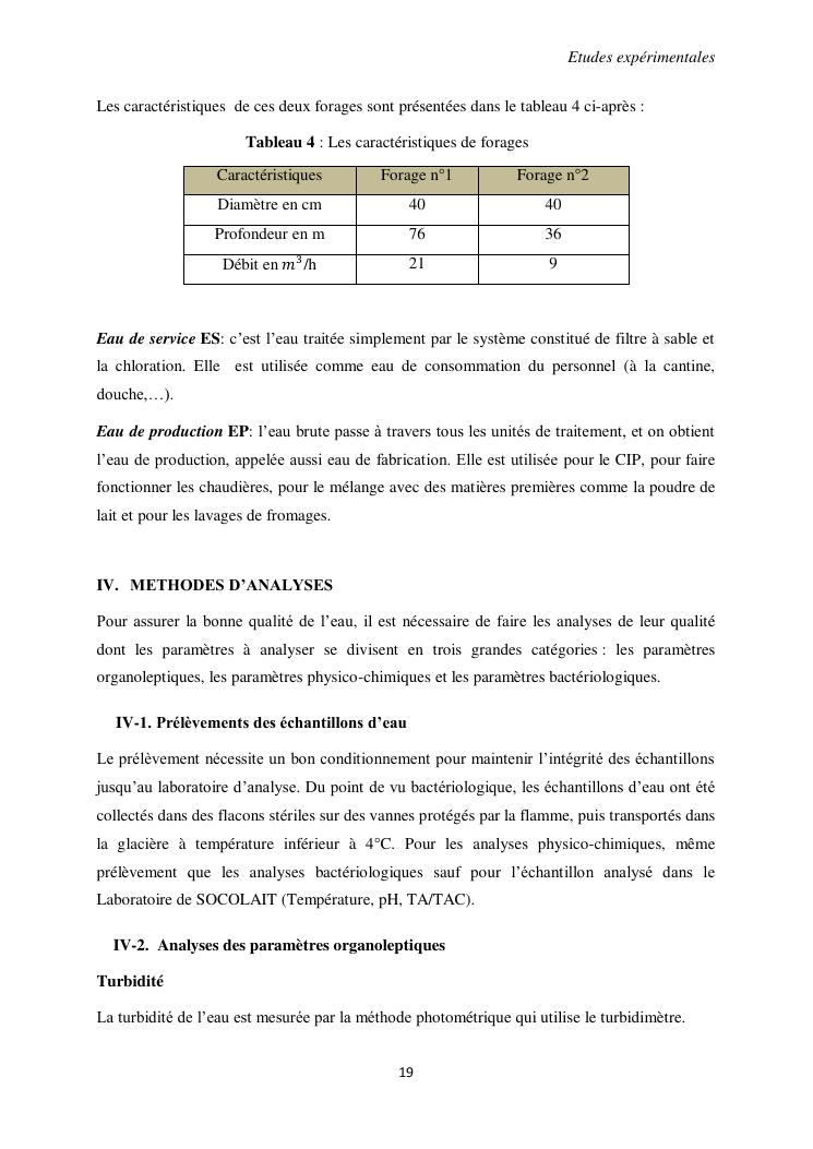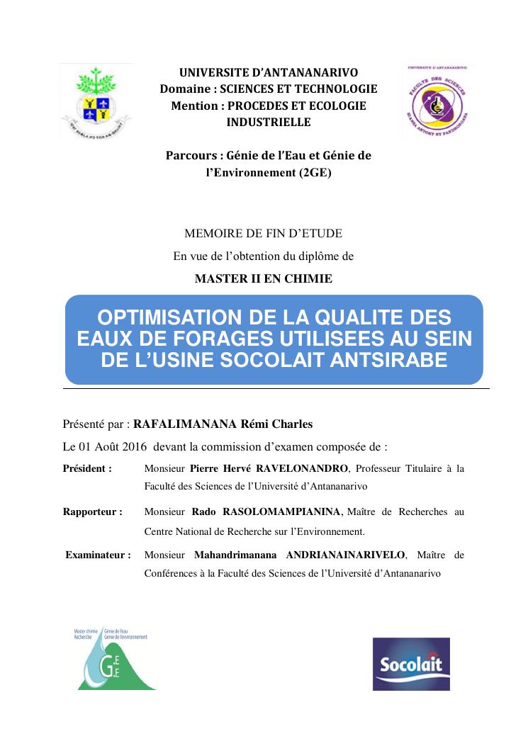 optimisation de la qualite des eaux de forages utilisees au sein de l'usine socolait antsirabe