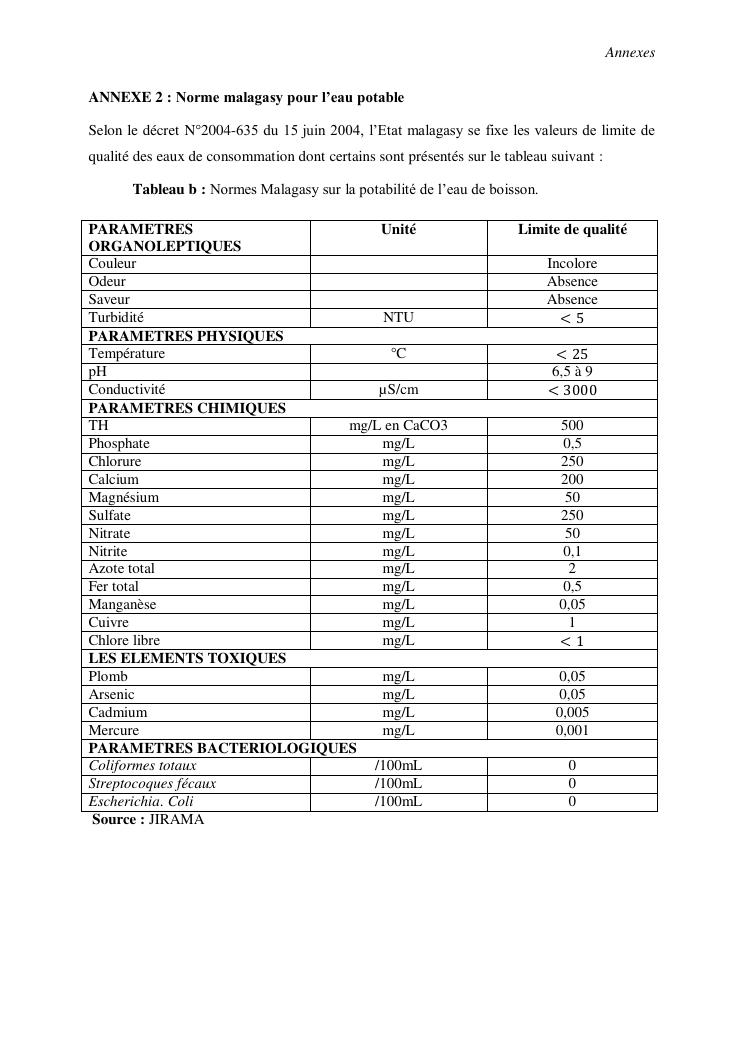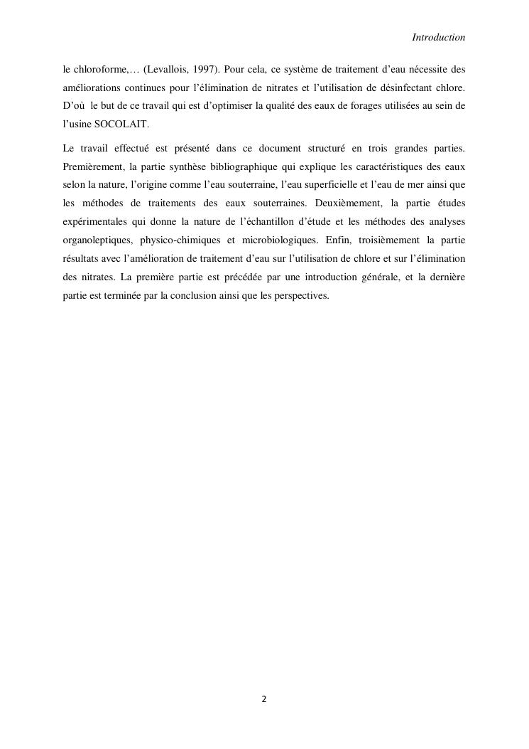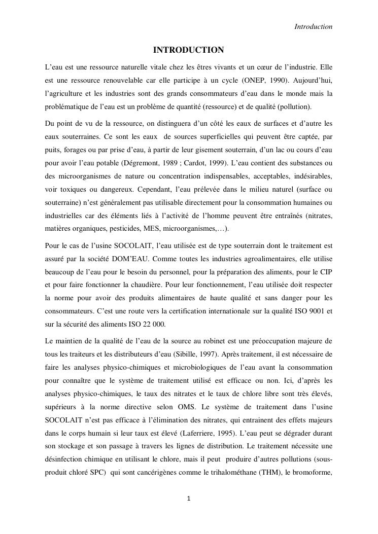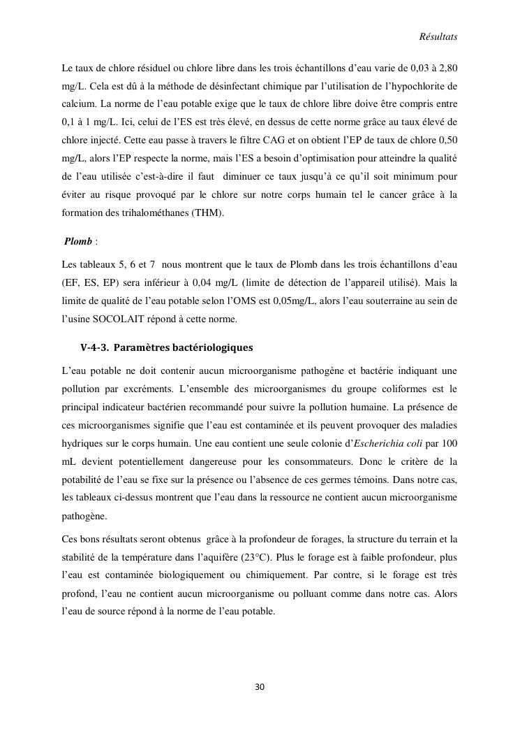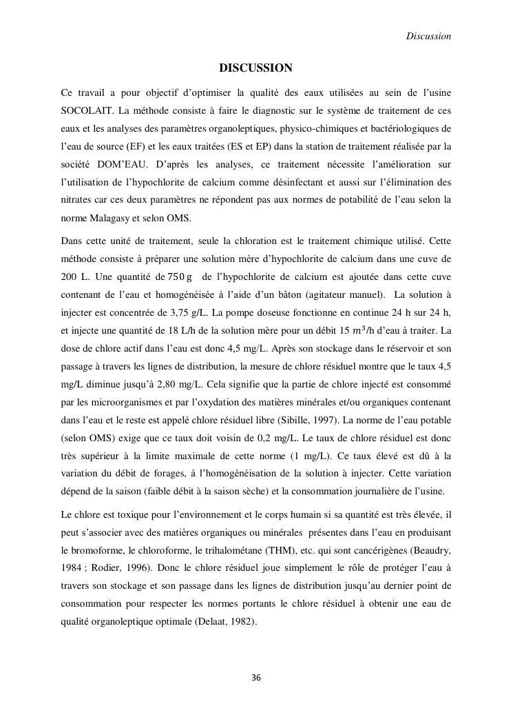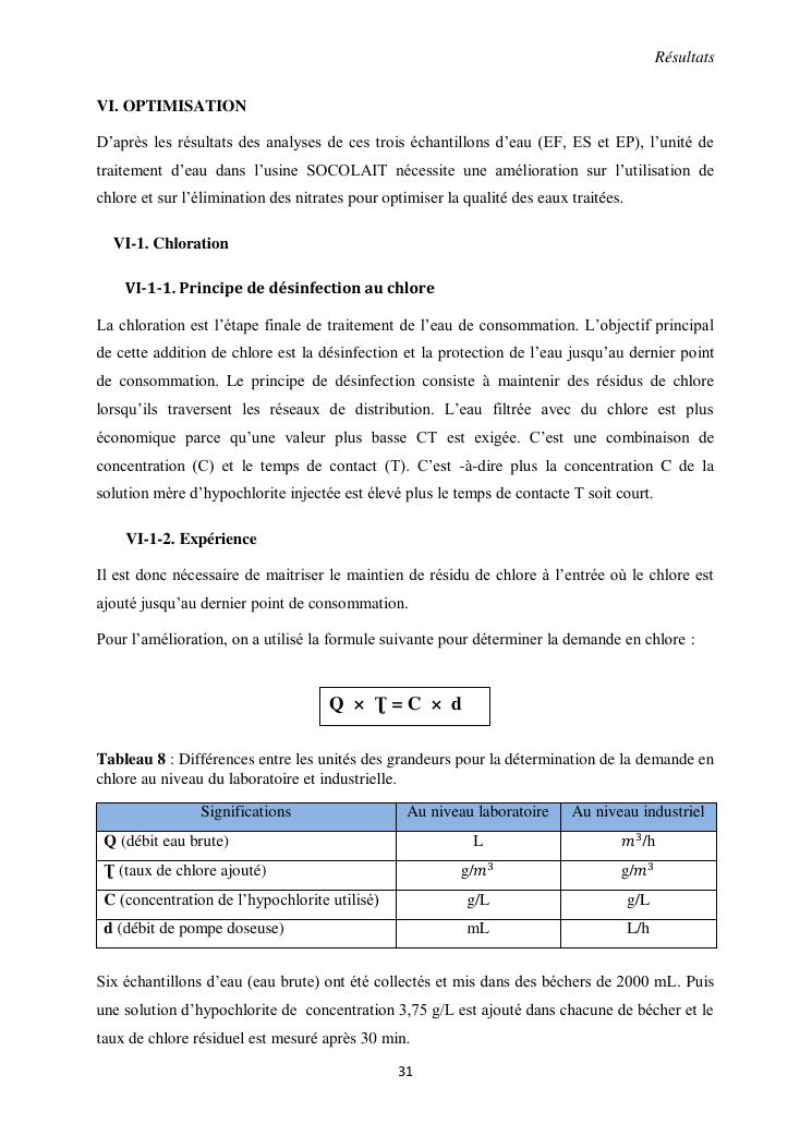 optimisation de la qualite des eaux de forages utilisees au sein de l'usine socolait antsirabe