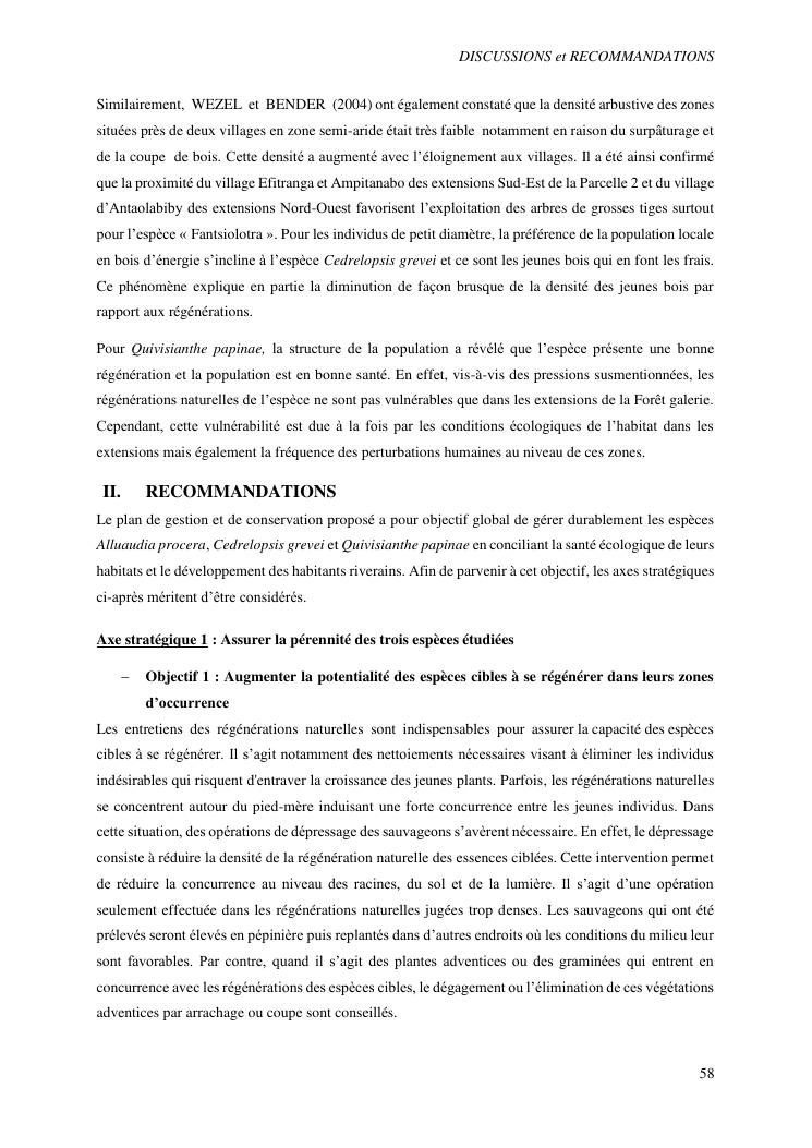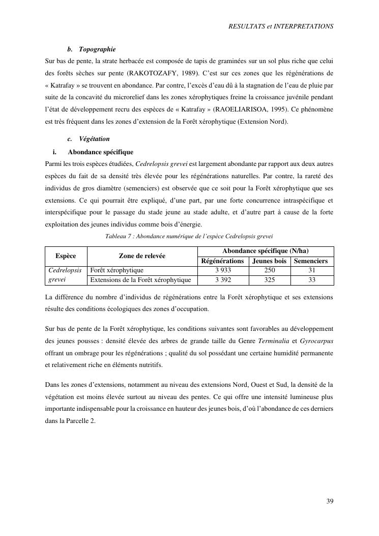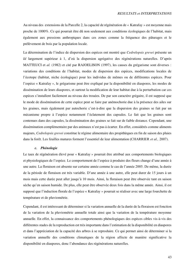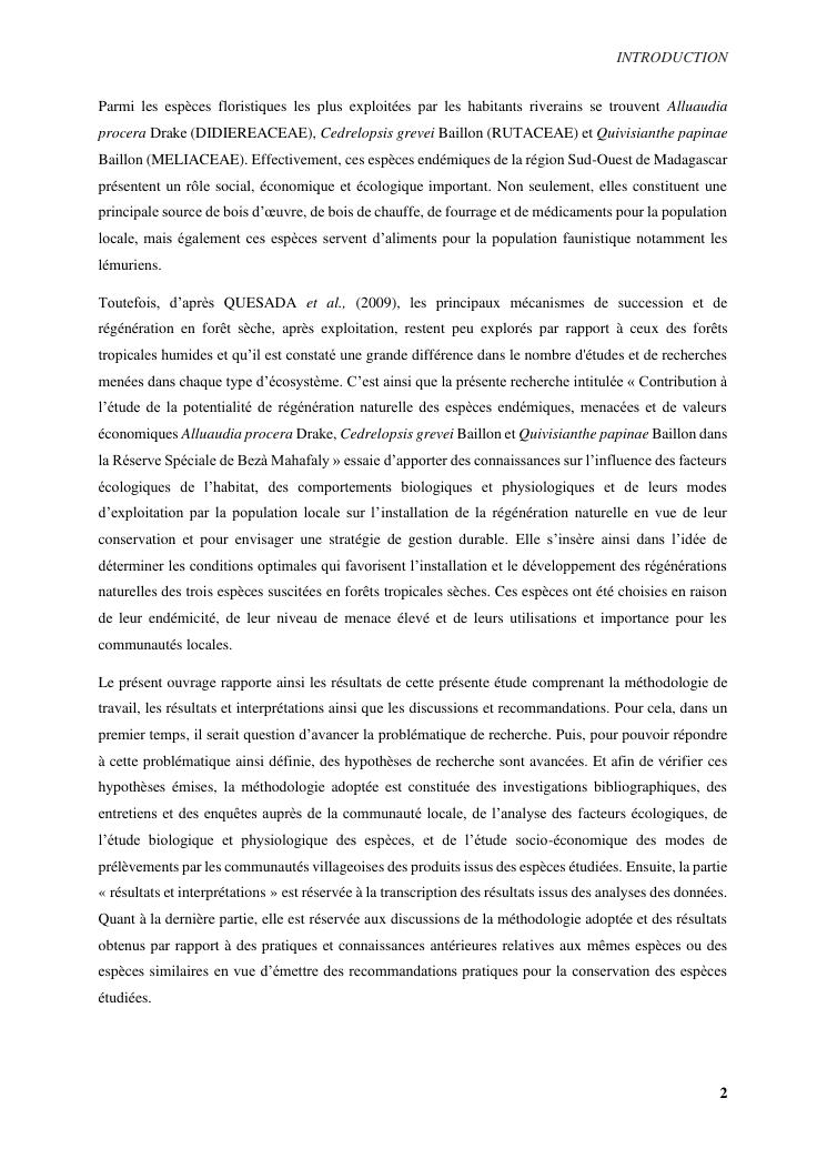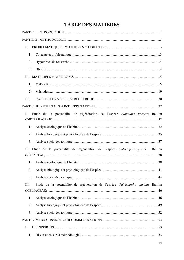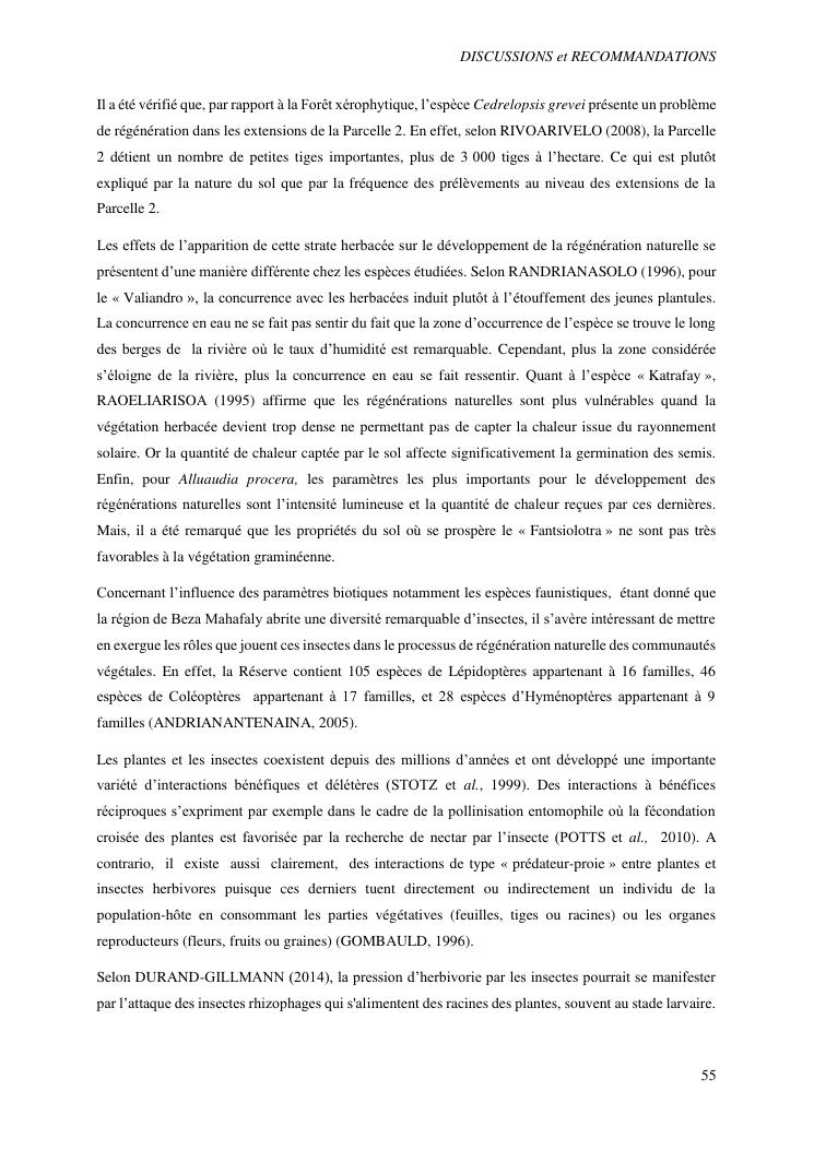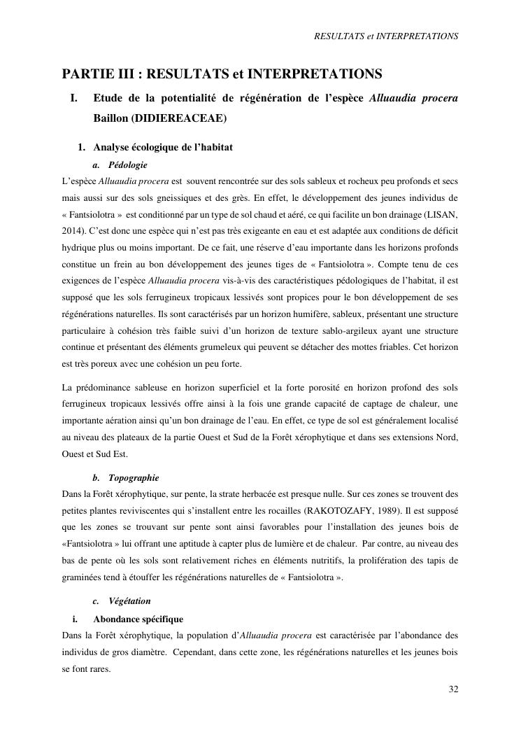 contribution à l'étude de la potentialité de régénération naturelle des espèces endémiques, menacées et de valeurs économiques : alluaudia procera drake, cedrelopsis grevei baillon et quivisianthe papinae baillon dans la réserve spéciale de bezà mahafaly