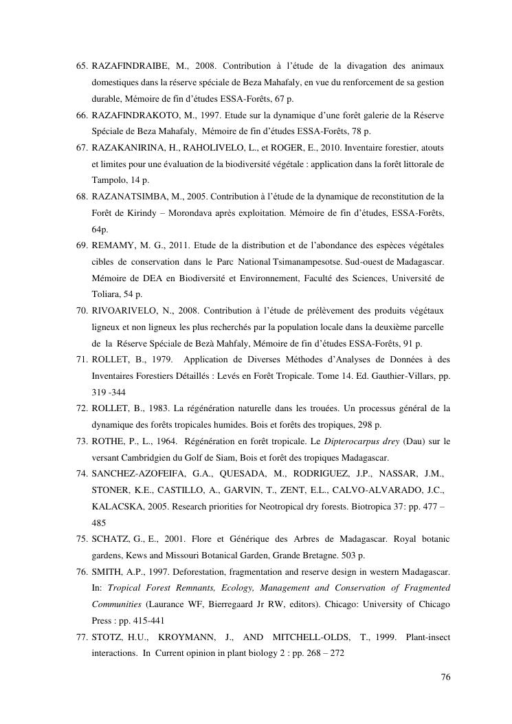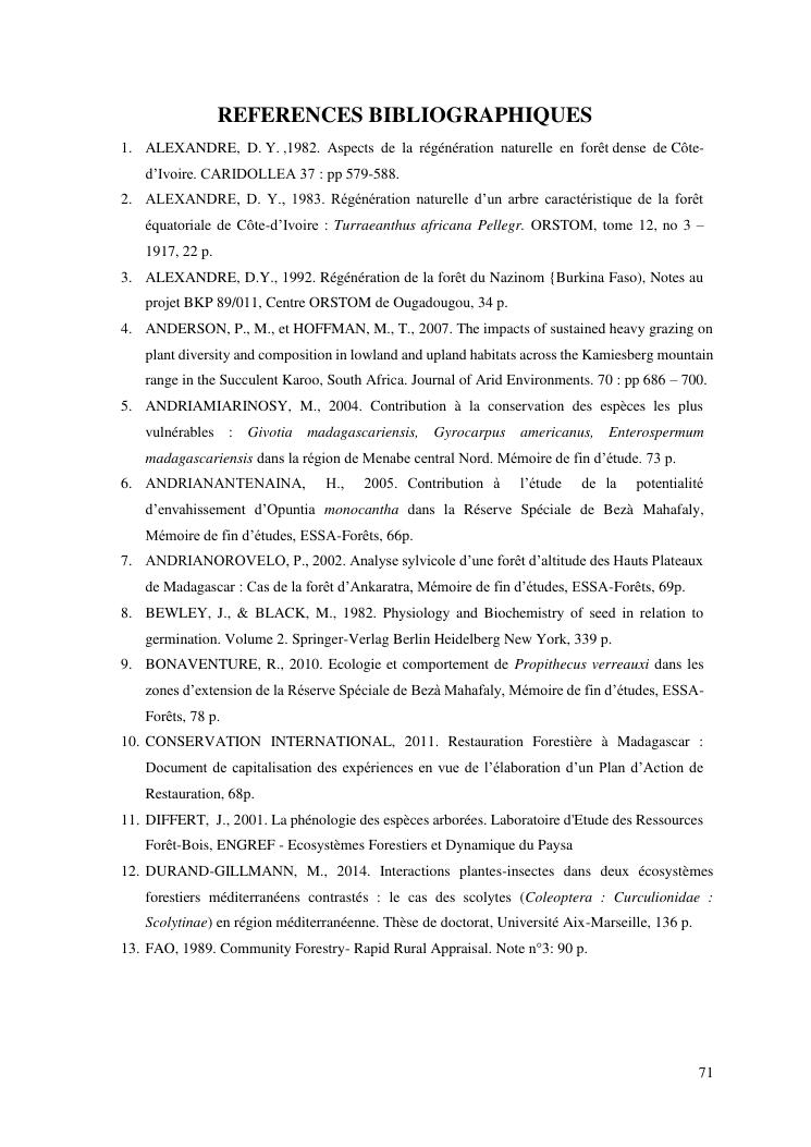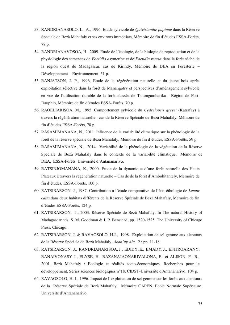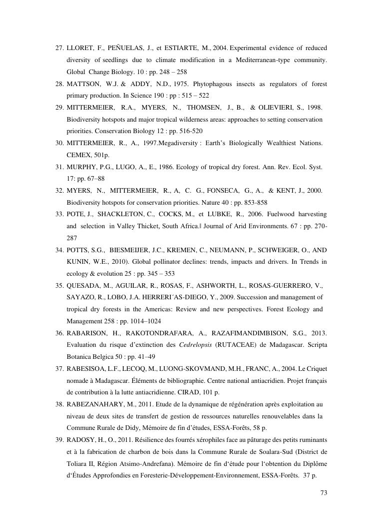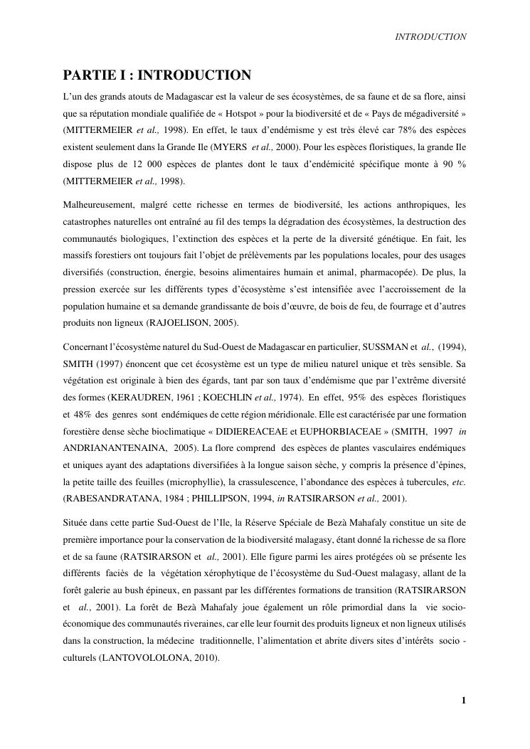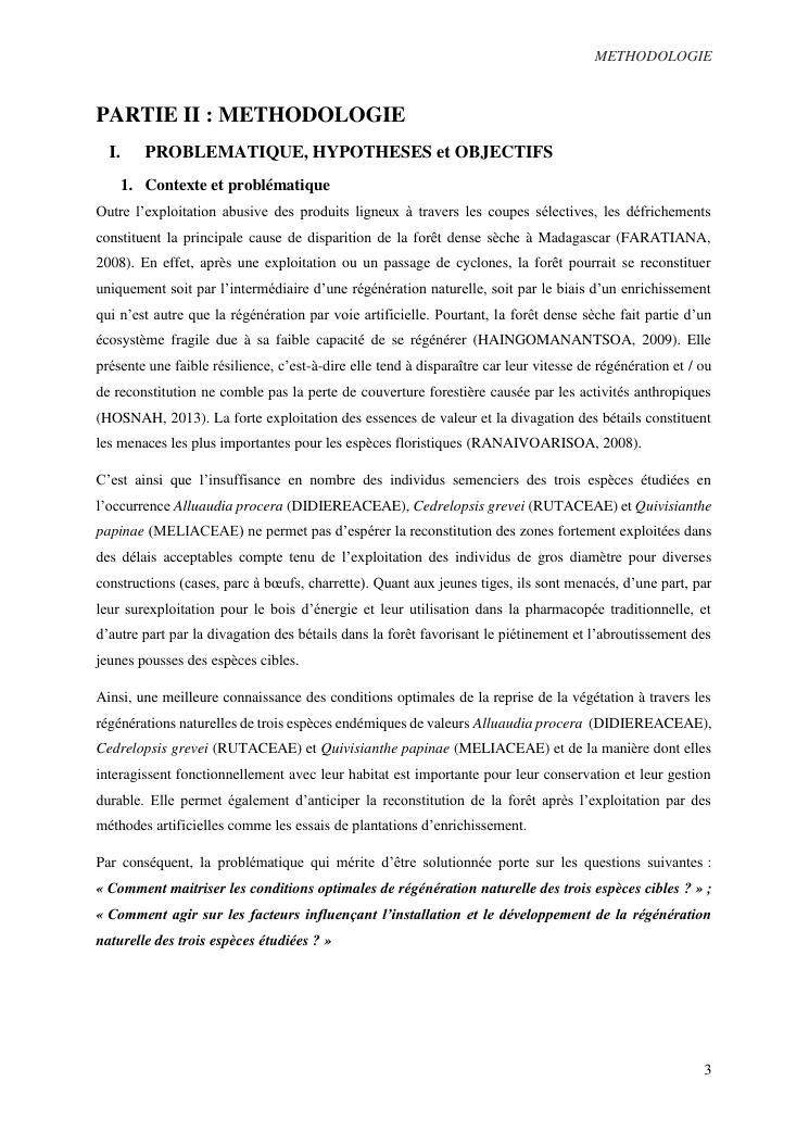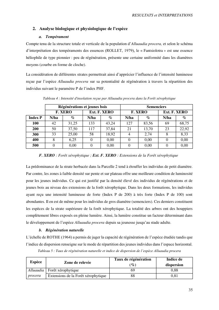 contribution à l'étude de la potentialité de régénération naturelle des espèces endémiques, menacées et de valeurs économiques : alluaudia procera drake, cedrelopsis grevei baillon et quivisianthe papinae baillon dans la réserve spéciale de bezà mahafaly