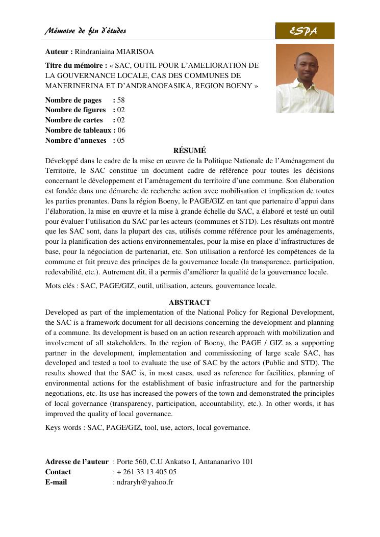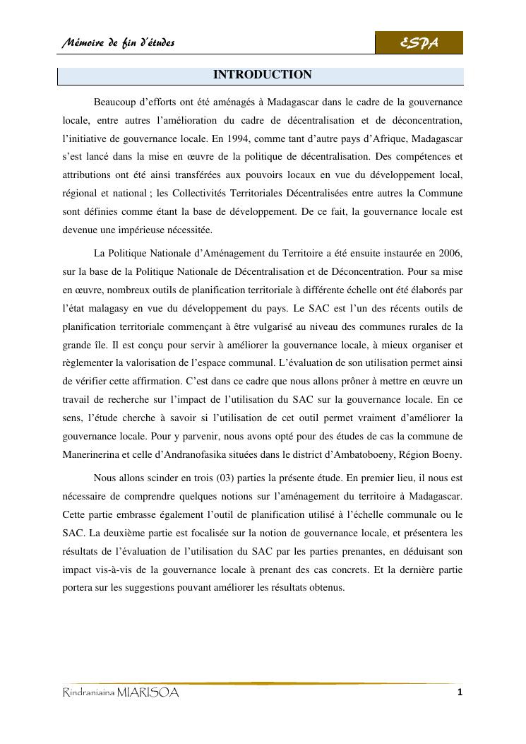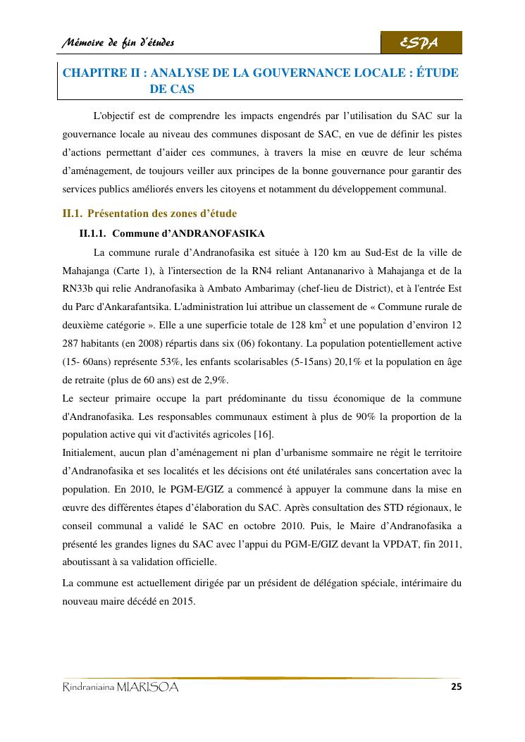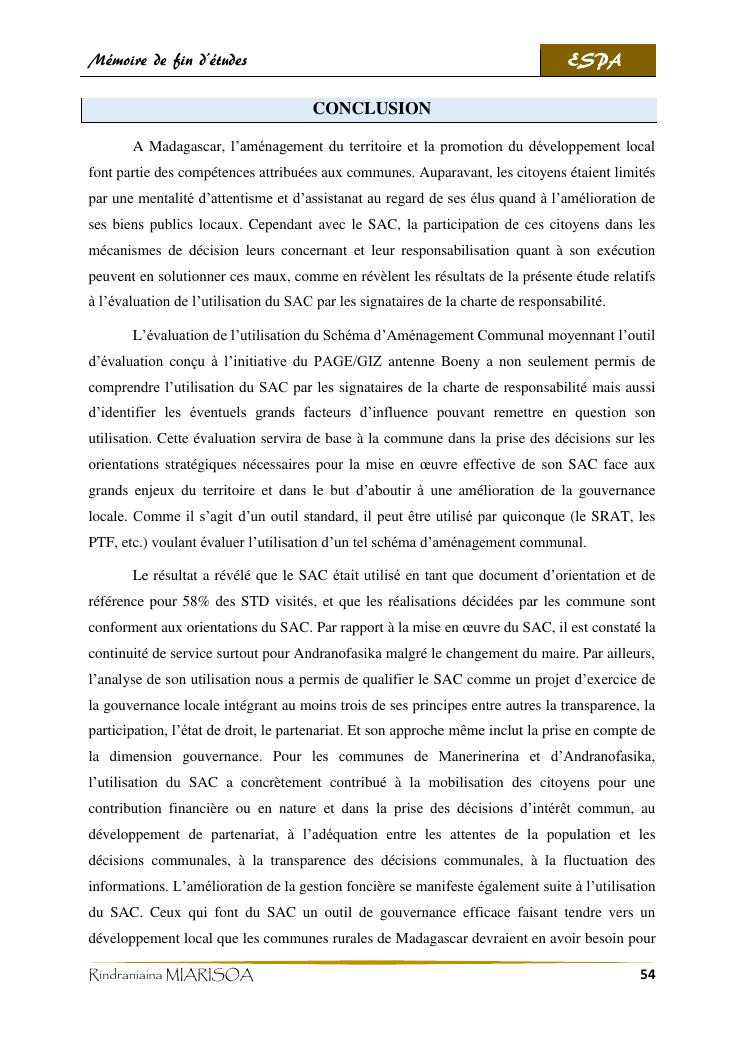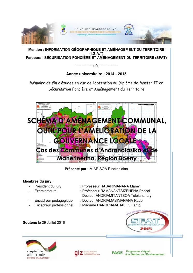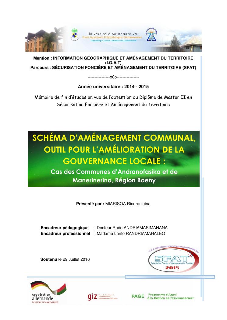 schéma d'aménagement communal, outil pour l'amélioration de la gouvernance locale : cas des communes d'andranofasika et de manerinerina, région boeny